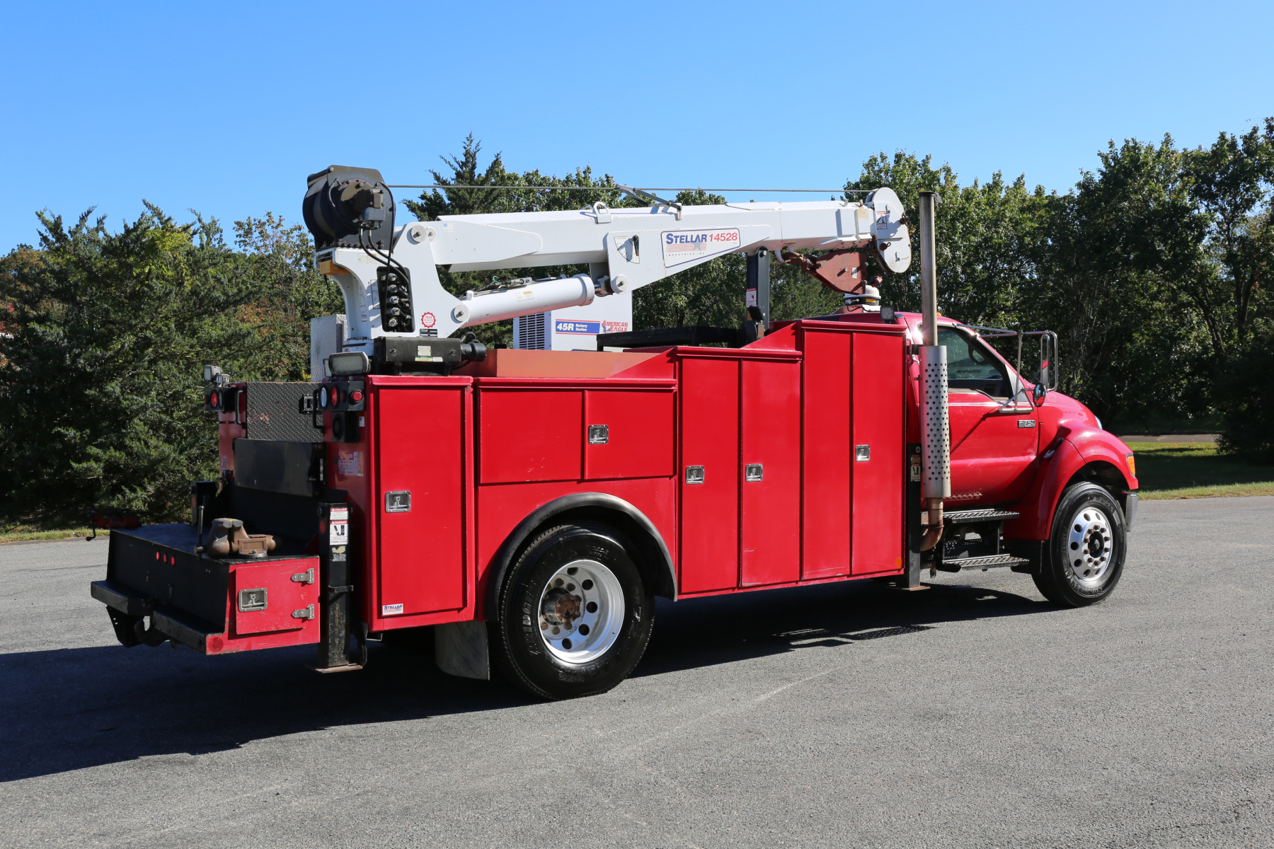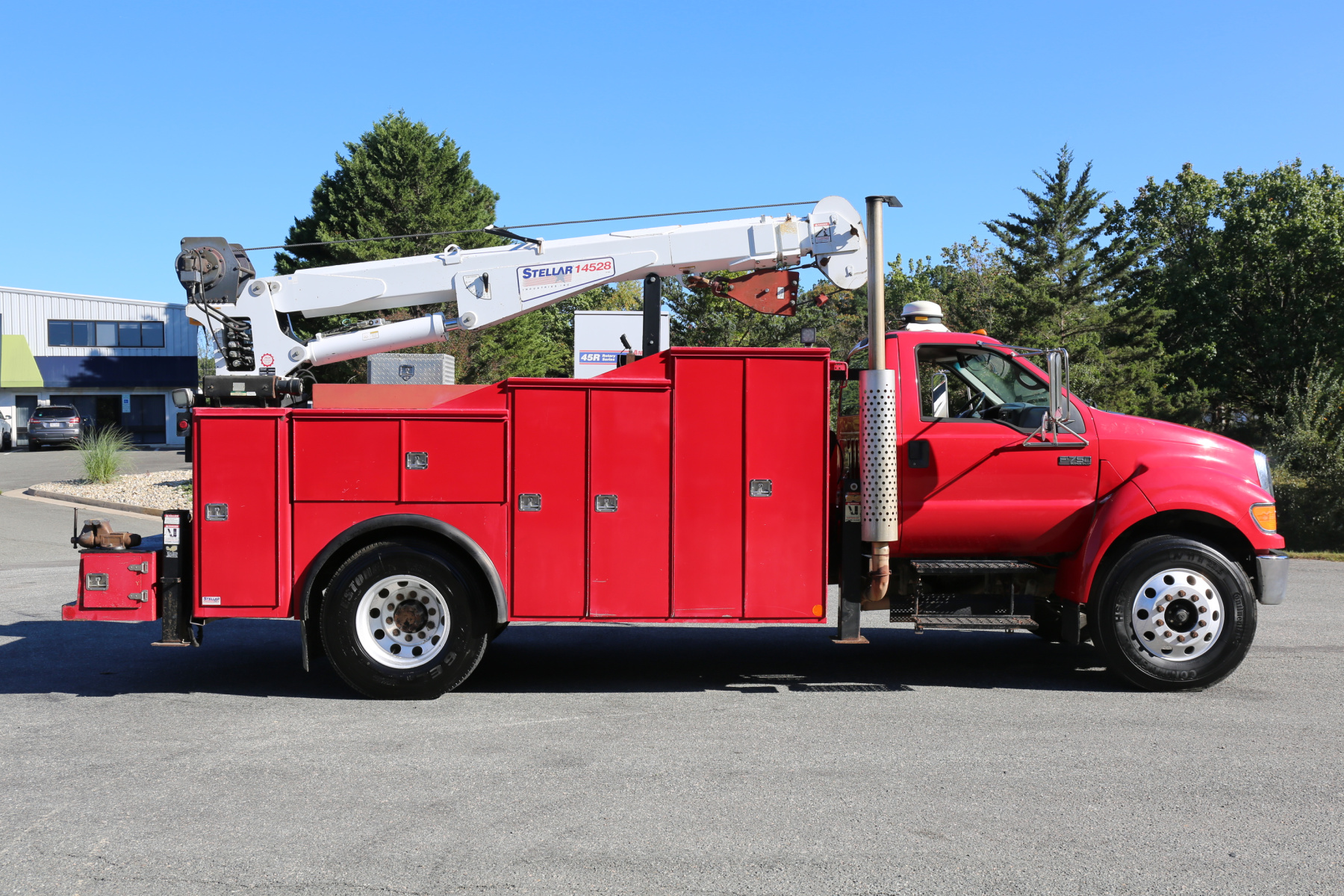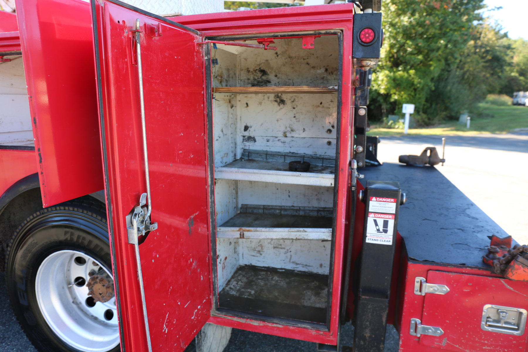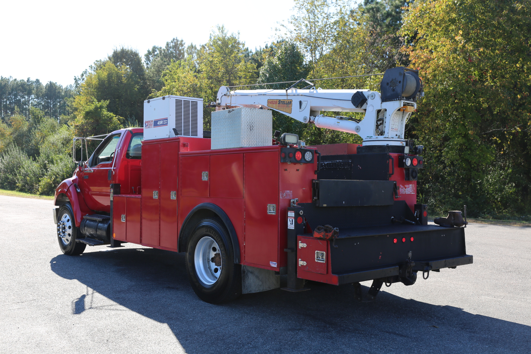 Showing 206,006 miles at the time of this writing. Equipped with a hard to find 14528 Stellar 14,000# capacity crane, mounted on a 14′ Stellar service body. 45R hydraulic compressor showing 124 total hours.