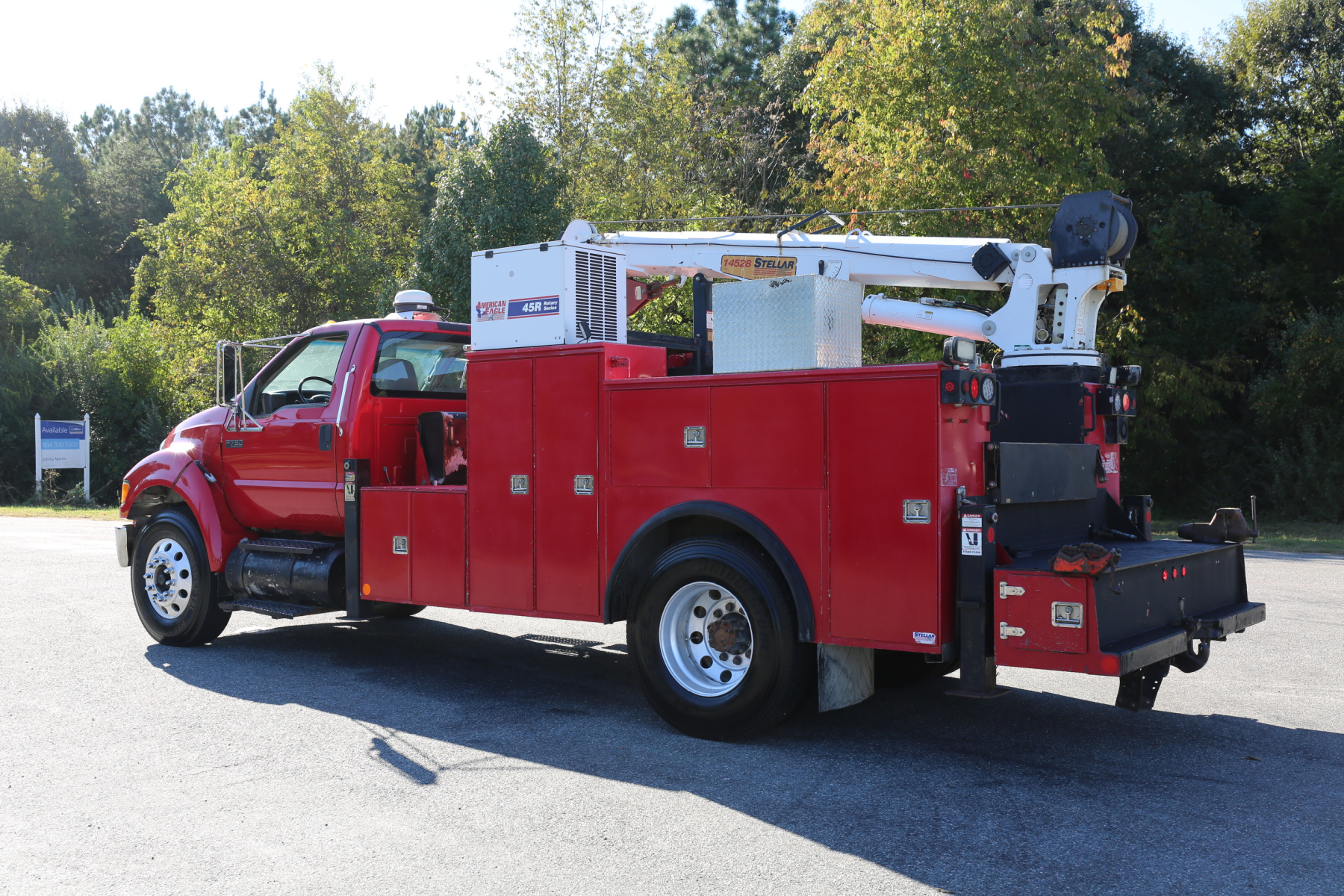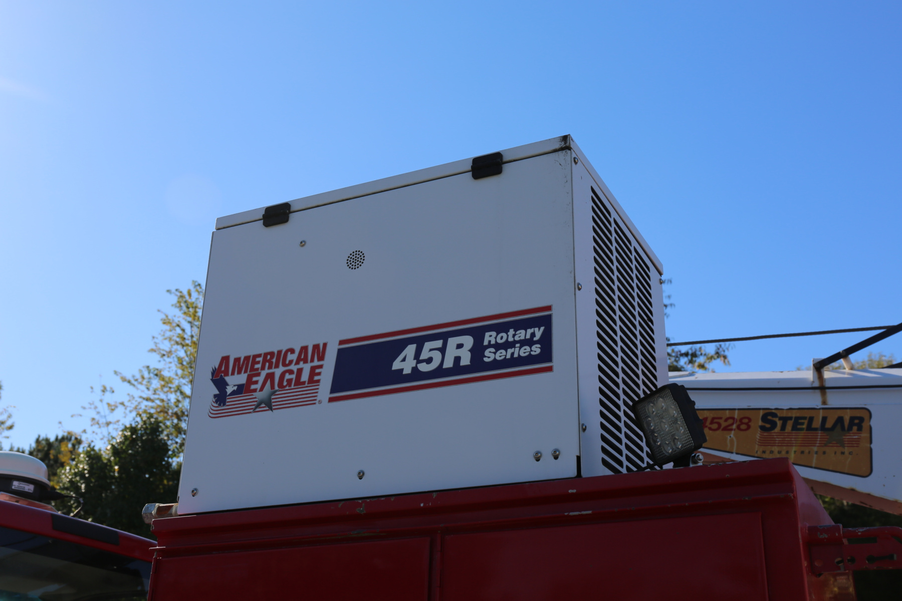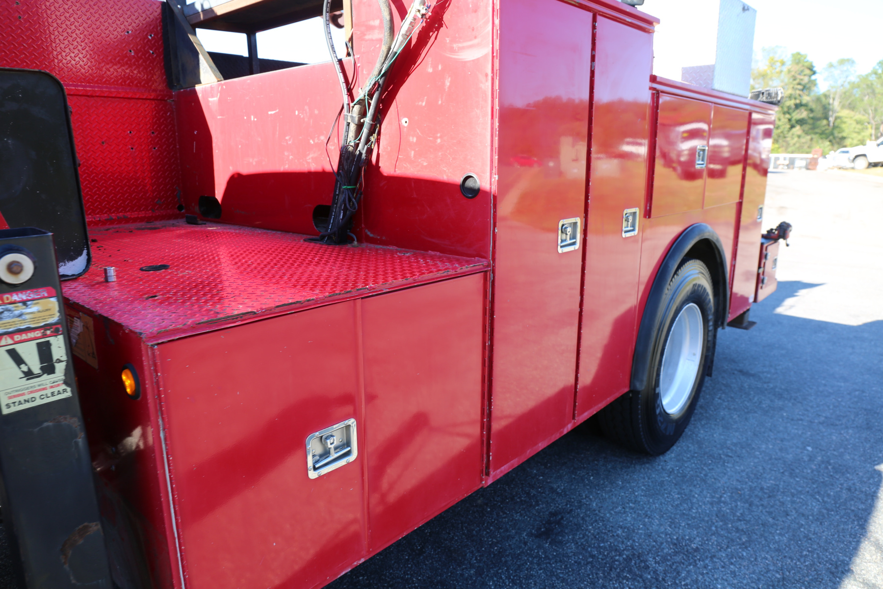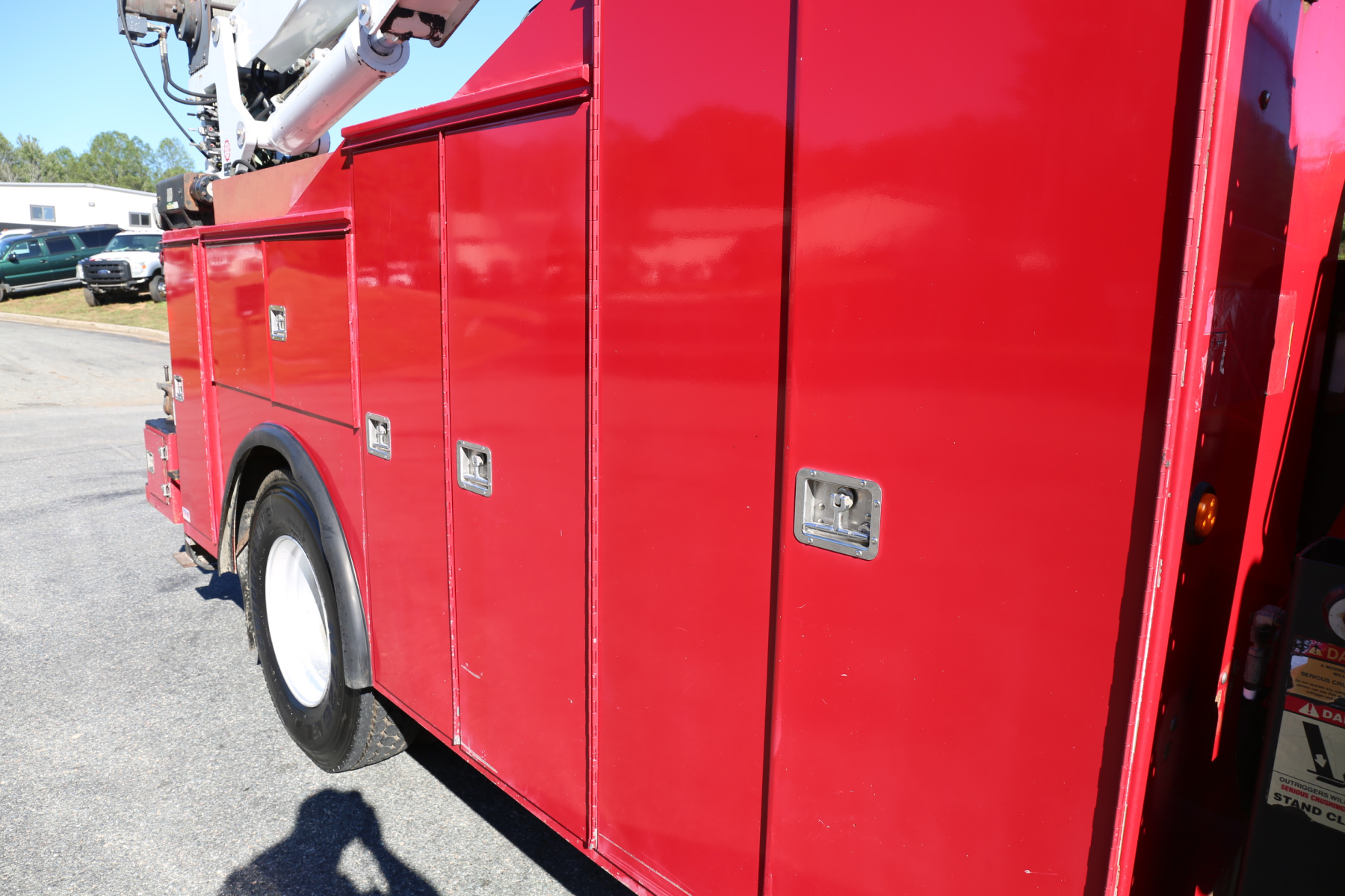 Showing 206,006 miles at the time of this writing. Equipped with a hard to find 14528 Stellar 14,000# capacity crane, mounted on a 14′ Stellar service body. 45R hydraulic compressor showing 124 total hours.