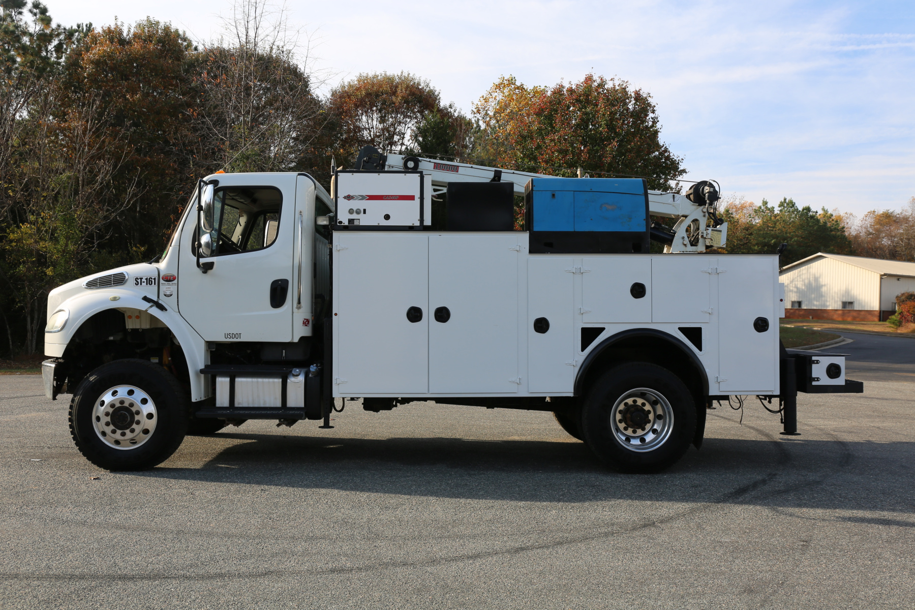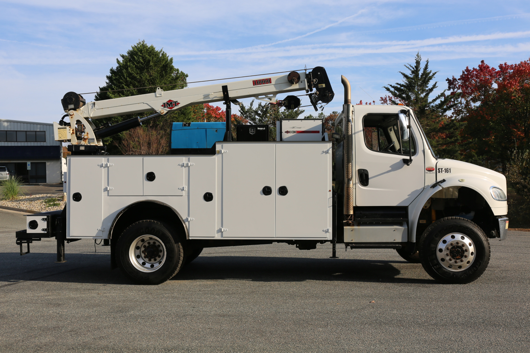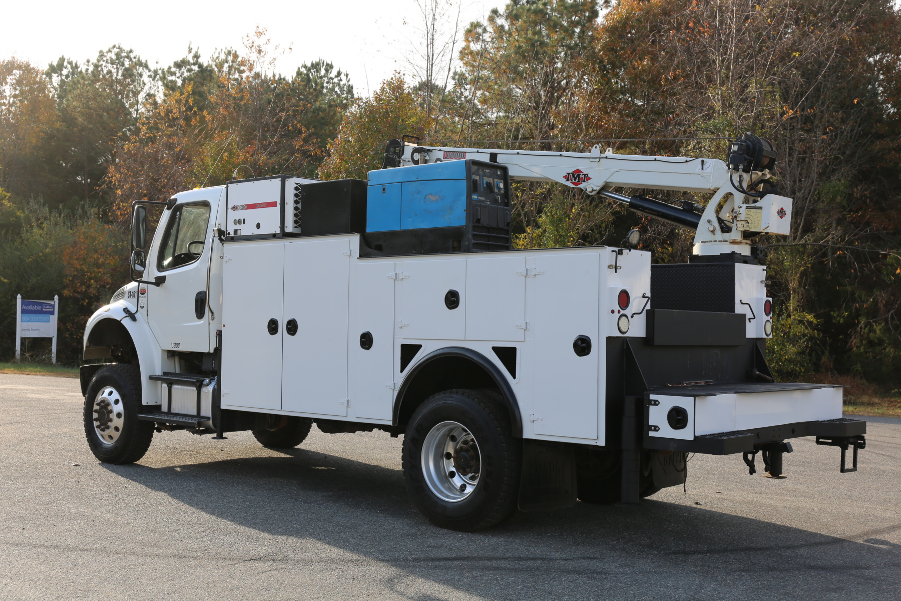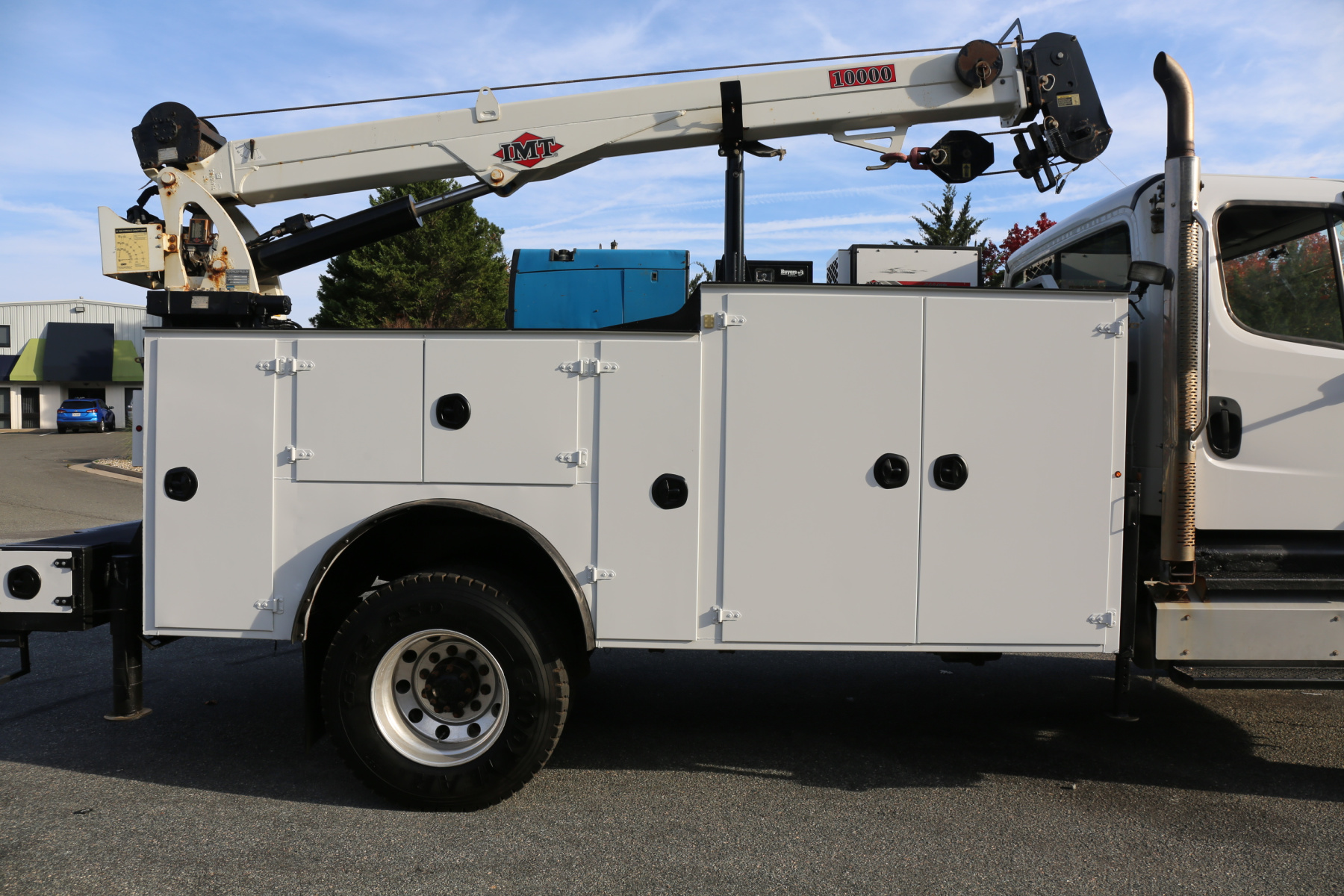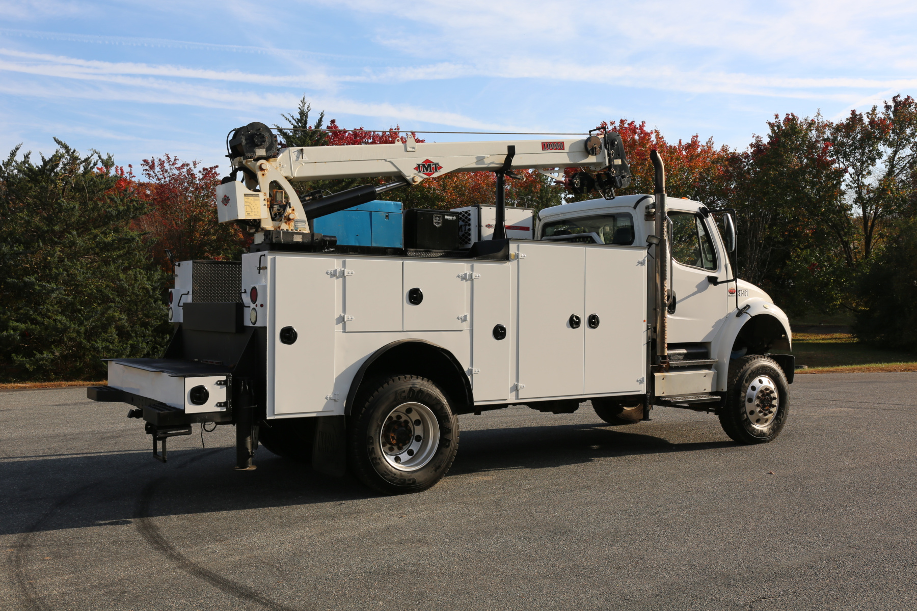 Thanks for taking the time to check out this 2013 Freightliner M2 Service with, with a 14′ IMT Mechanics Body, IMT 10,000-30 series crane, and equipped with four wheel drive. Powered by a Cummins ISC rated at 270hp, mated to a six speed manual transmission. Showing 184,731 miles and 8,066 hours at the time of this writing.