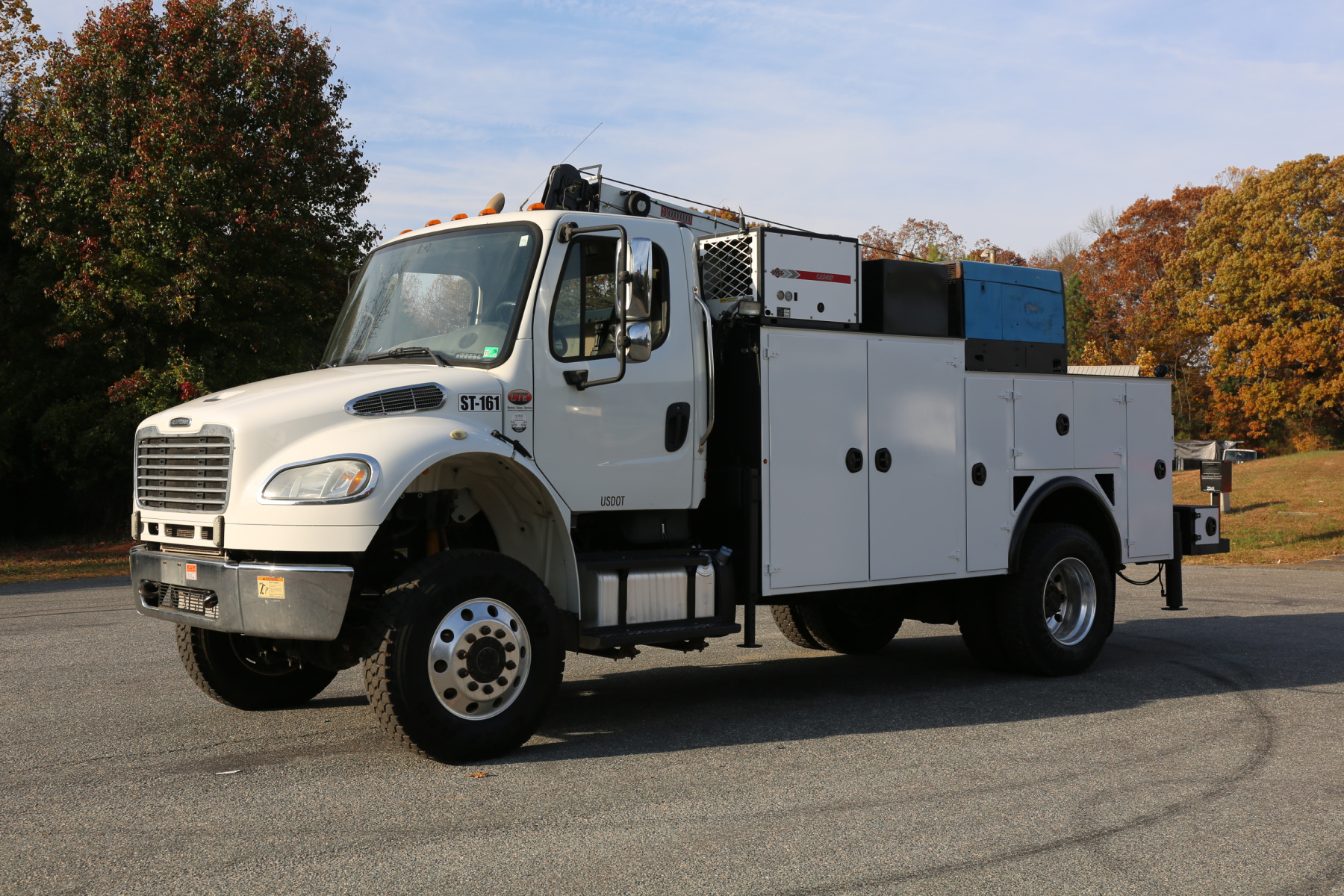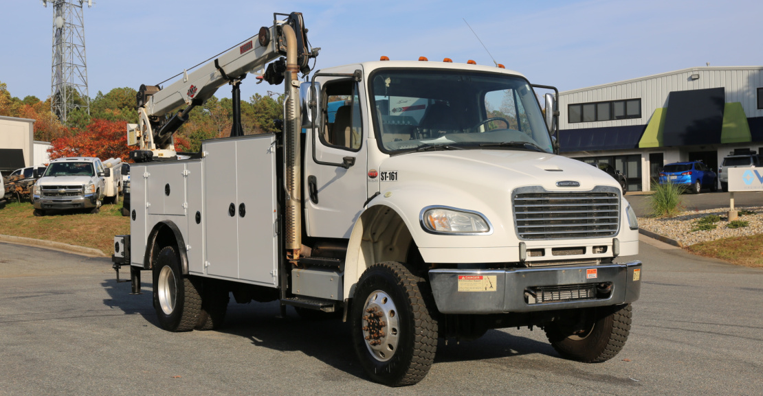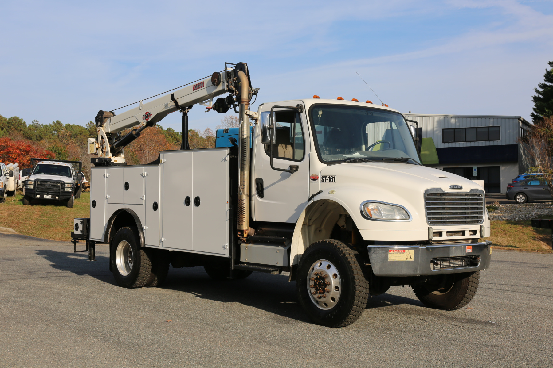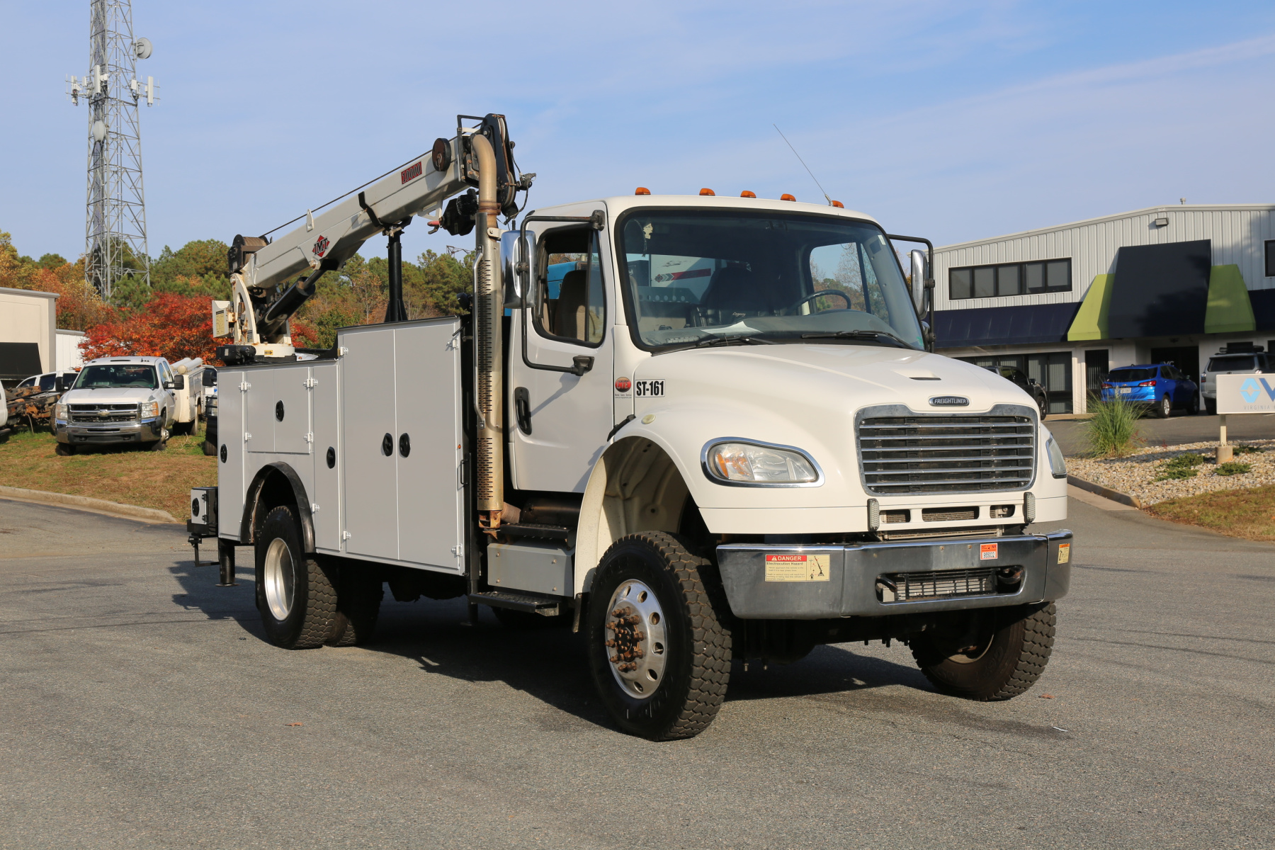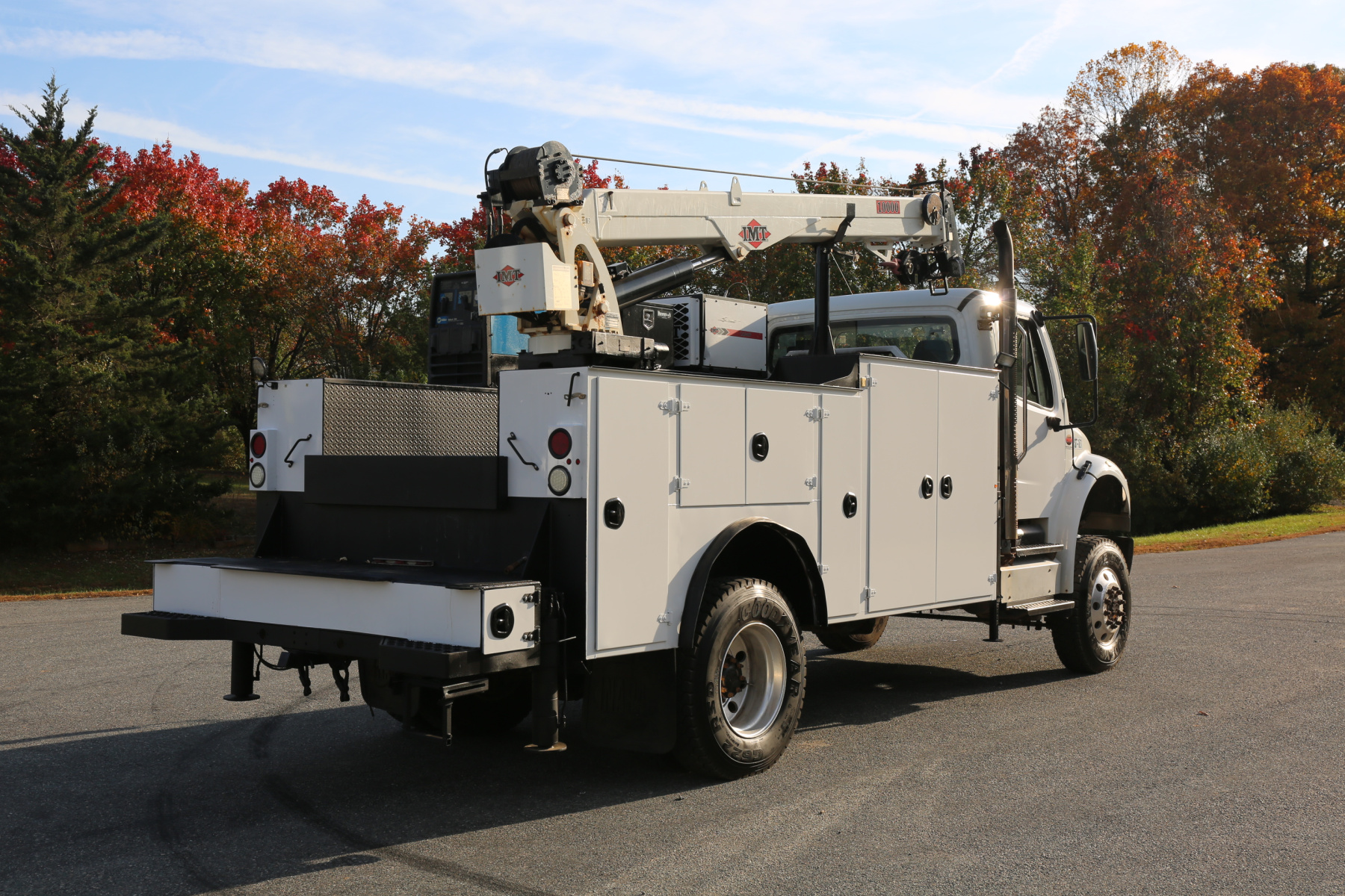 Thanks for taking the time to check out this 2013 Freightliner M2 Service with, with a 14′ IMT Mechanics Body, IMT 10,000-30 series crane, and equipped with four wheel drive. Powered by a Cummins ISC rated at 270hp, mated to a six speed manual transmission. Showing 184,731 miles and 8,066 hours at the time of this writing.