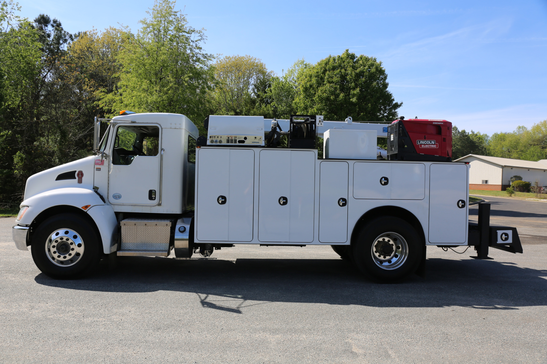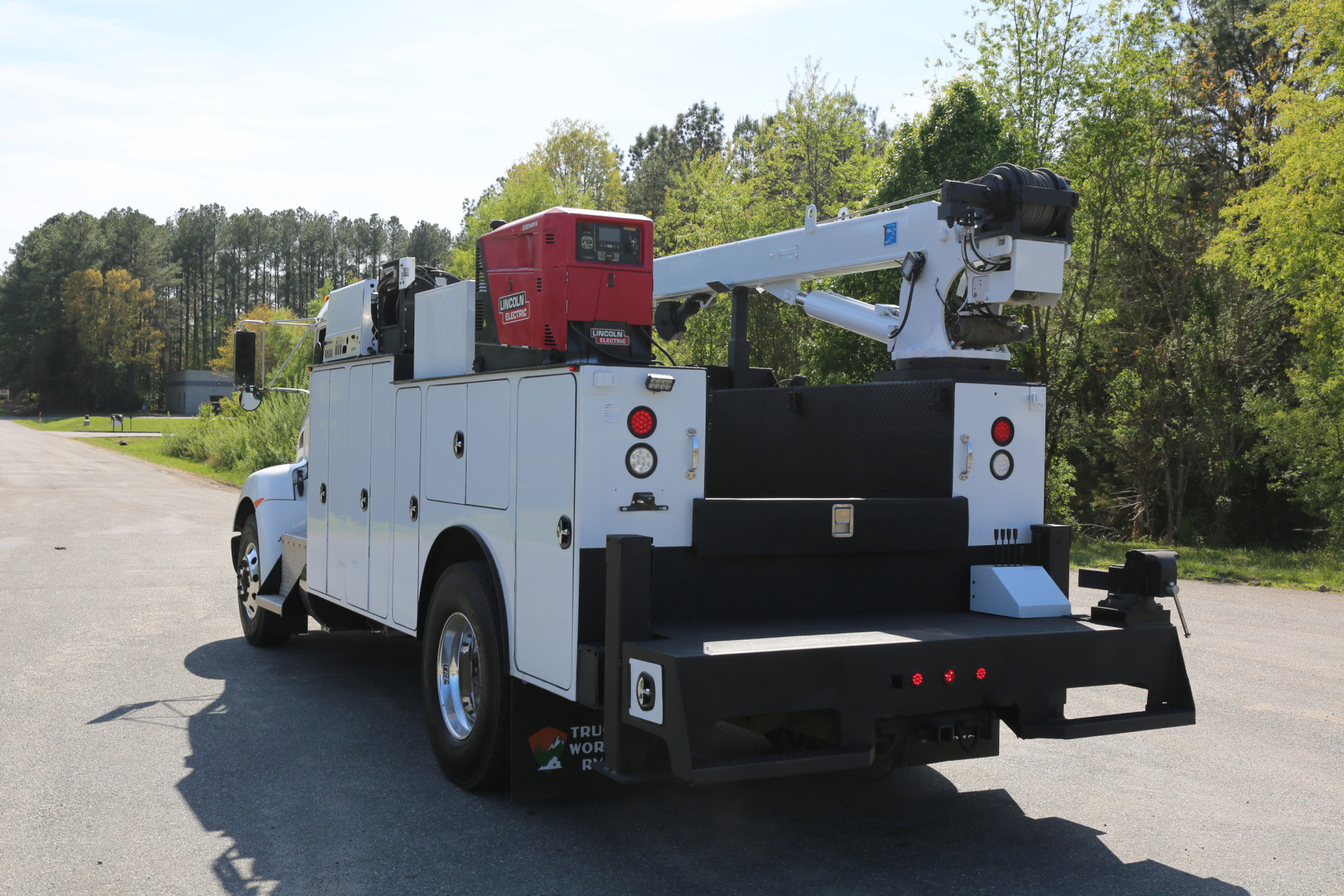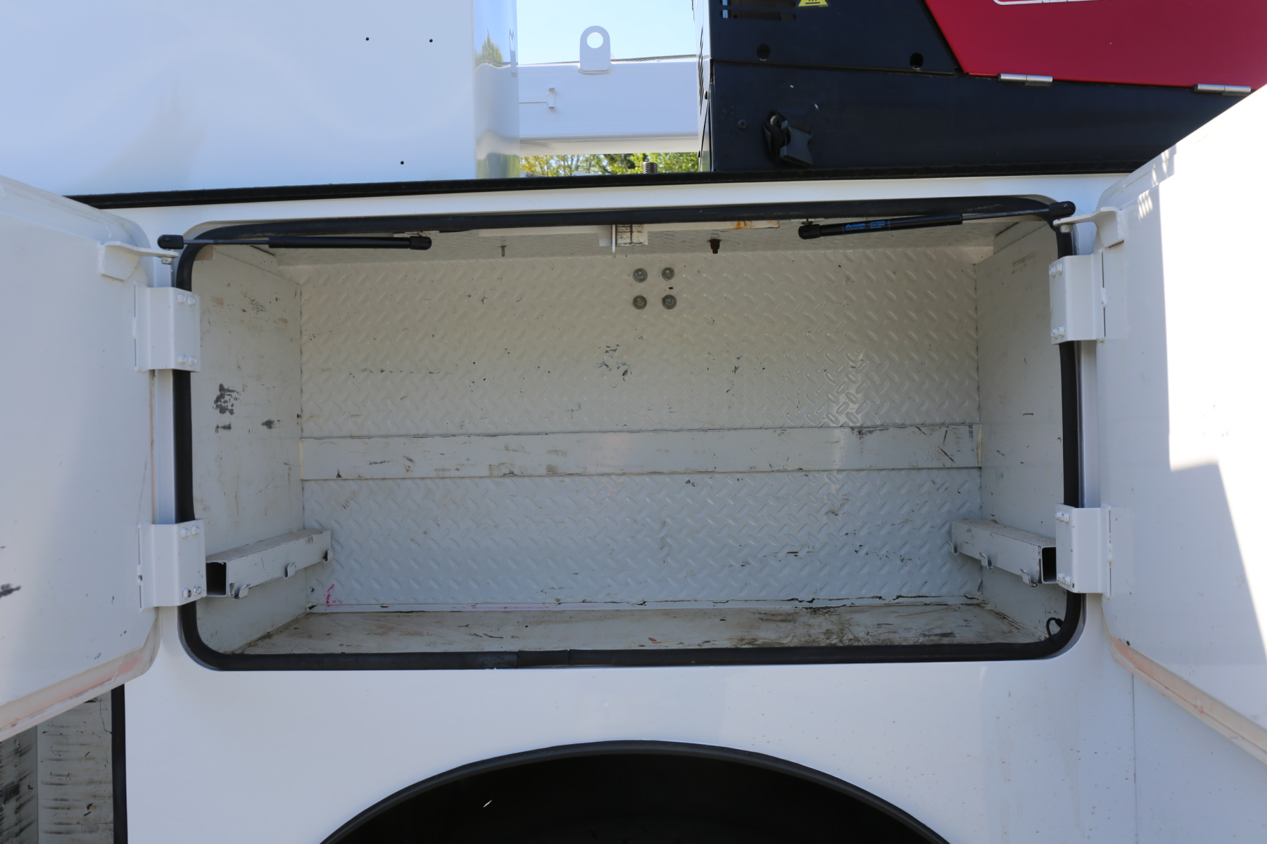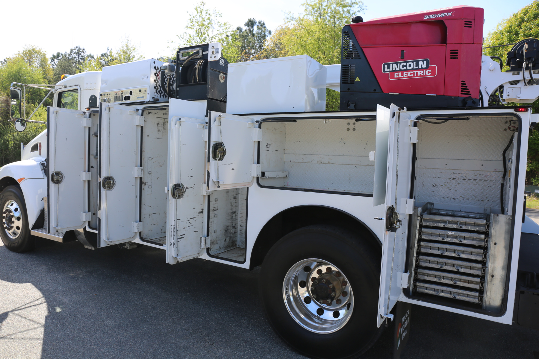 Well equipped with a 14′ Autocrane Titan Mechanics Body, one set of drawers, 14005H Crane, RS60AC hydraulic compressor, hydraulic outriggers, a Lincoln 330 MPX welder, and one waste oil tank in the bed.