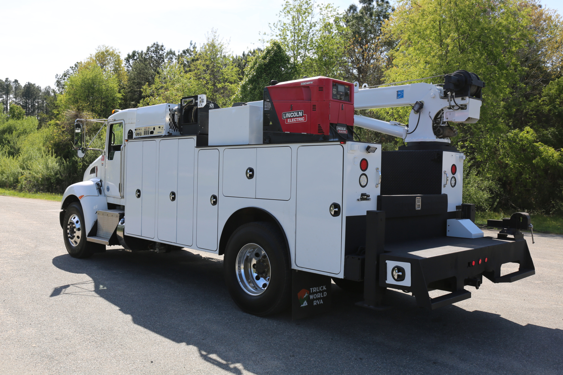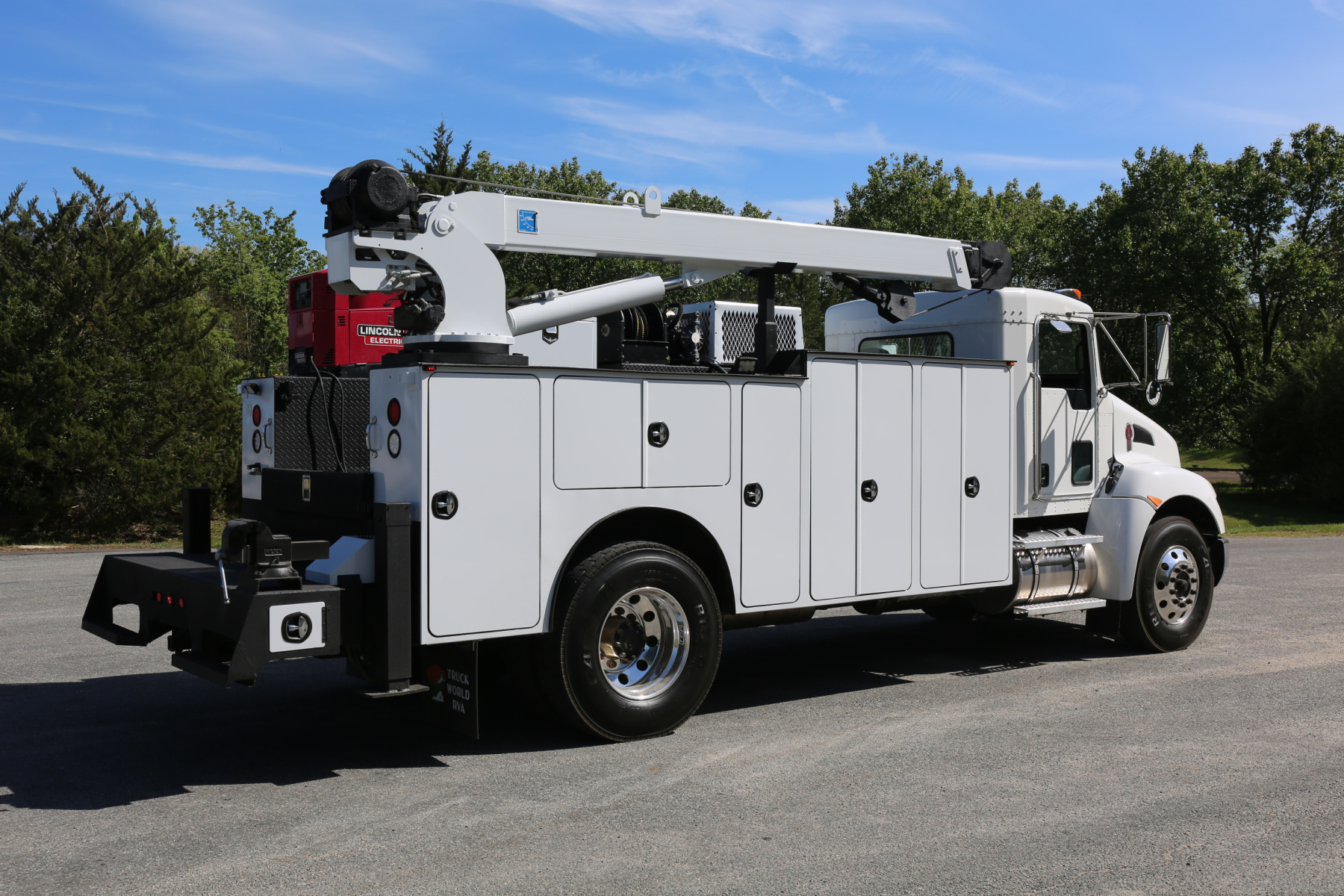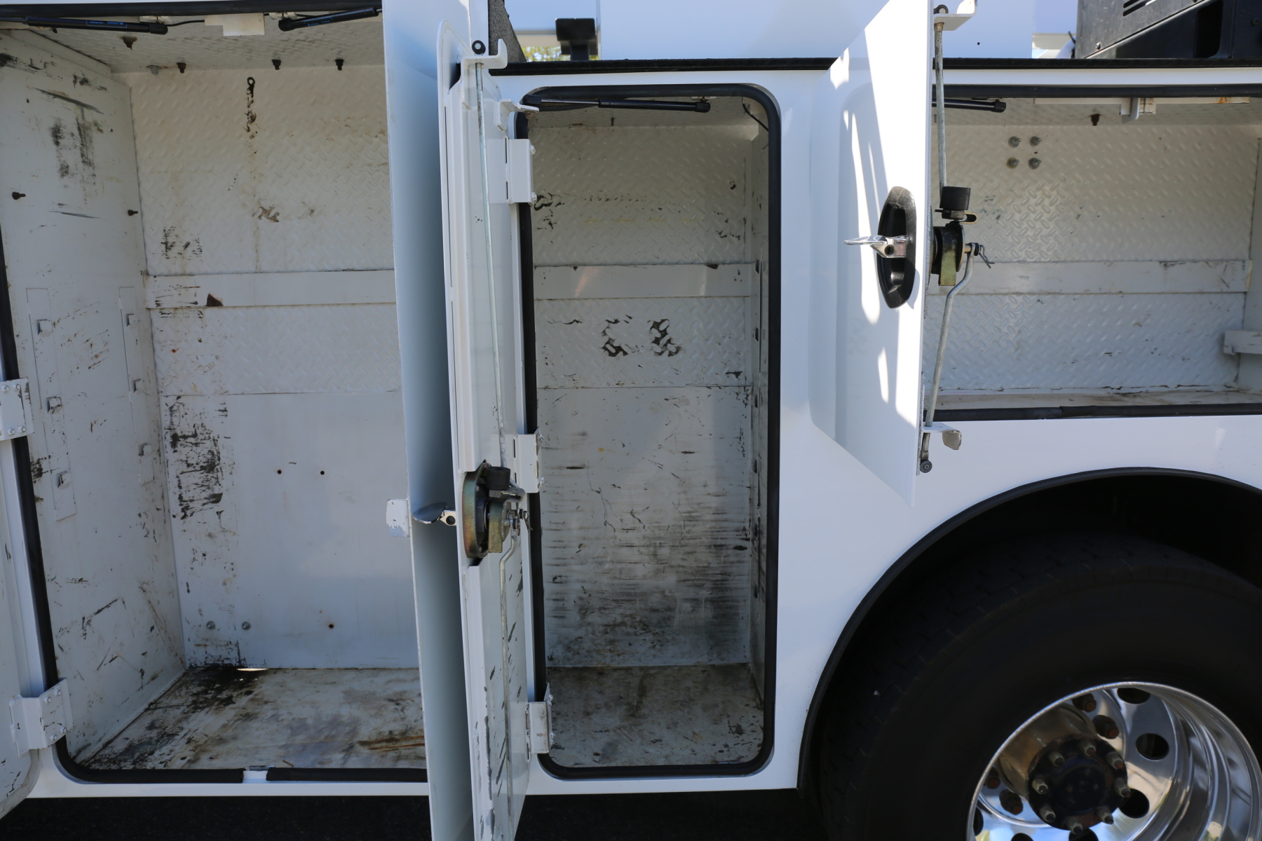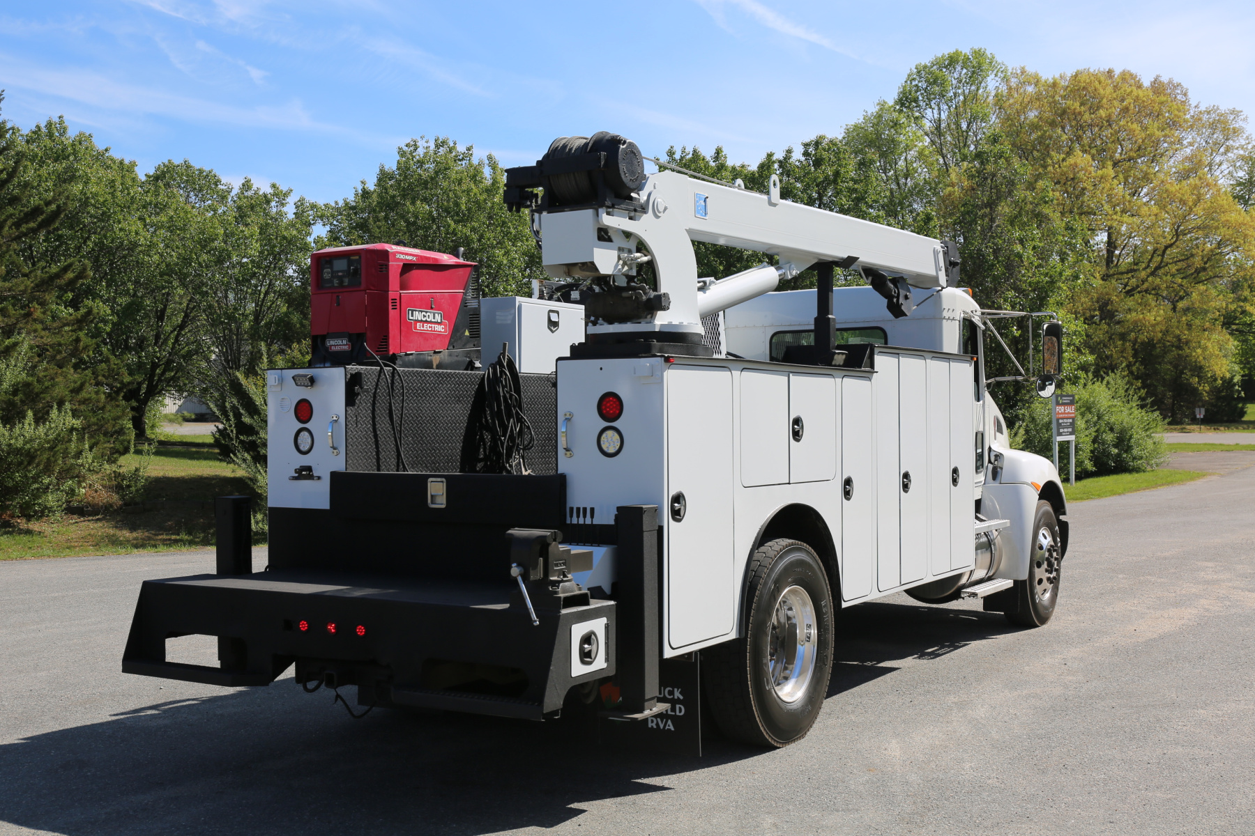 Well equipped with a 14′ Autocrane Titan Mechanics Body, one set of drawers, 14005H Crane, RS60AC hydraulic compressor, hydraulic outriggers, a Lincoln 330 MPX welder, and one waste oil tank in the bed.