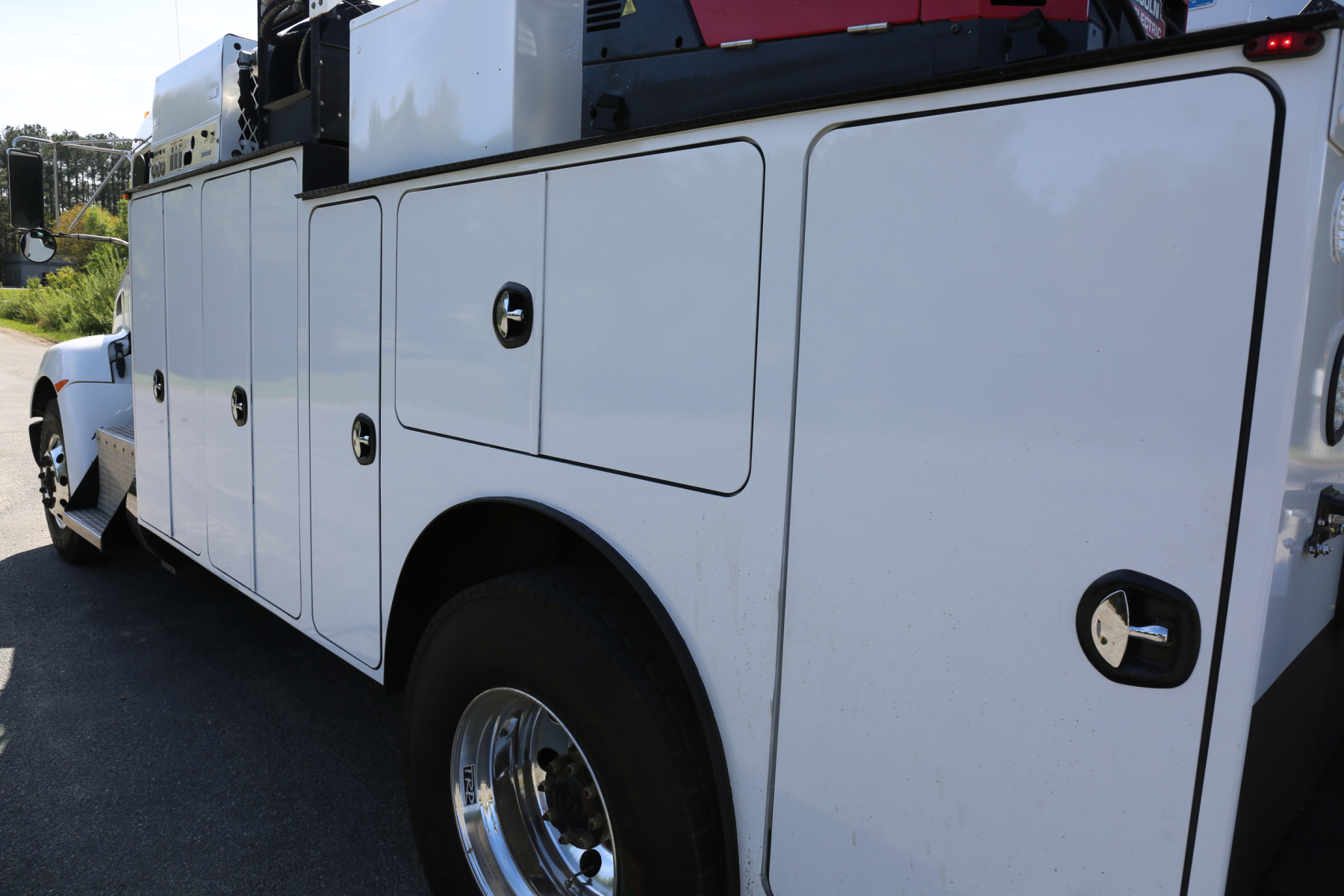 The bed is a 2007 model we refurbished and remounted and previously came from Mississippi. Sandblasted and repainted with new bedliner applied. All of the doors close, latch, lock, and seal as they should. All of the latches are keyed the same. Interior and exterior lighting throughout, all operational.