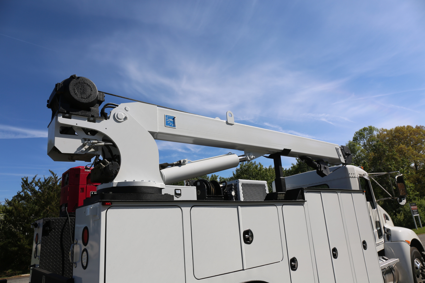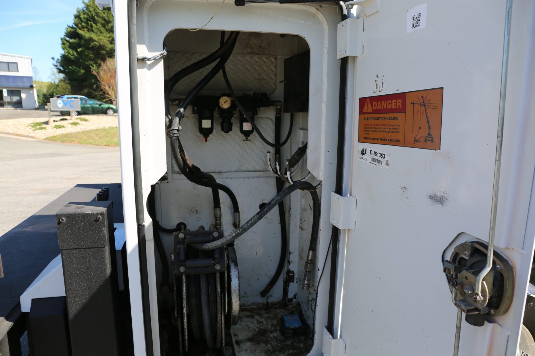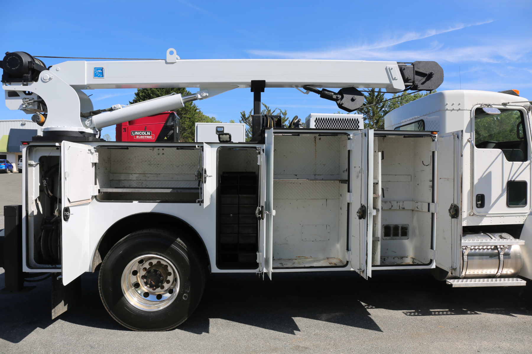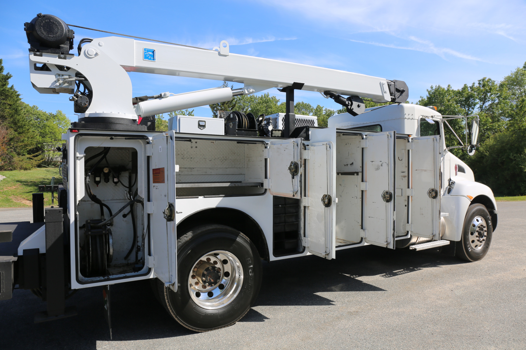 The crane is an Autocrane 14005H, with a 14,000# maximum lifting capacity and a two stage hydraulic reach out to 30′. Run off an aftermarket wireless remote.