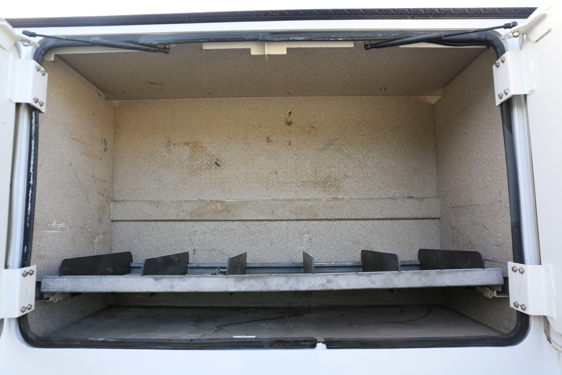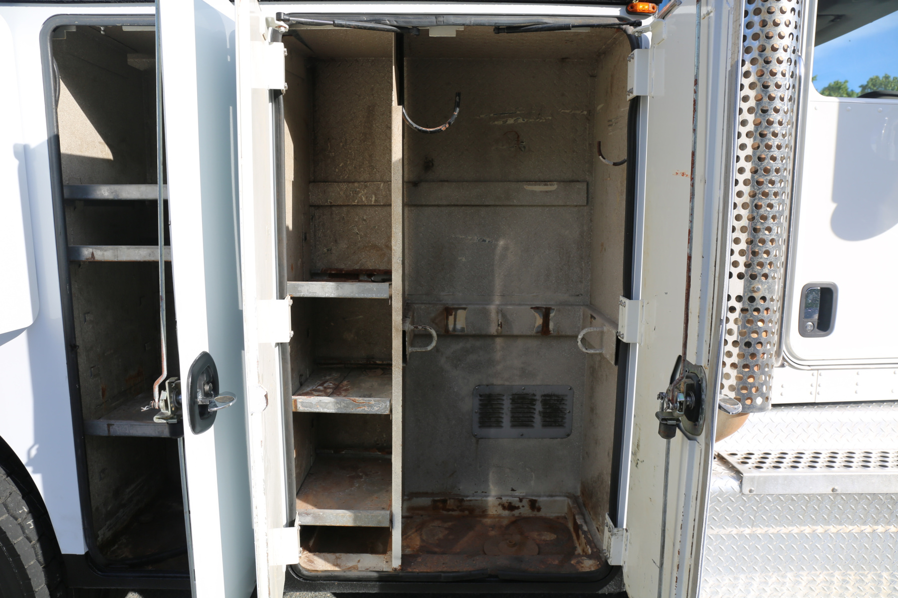 All doors close, latch, lock, and seal as they should. We have the bin keys, all latches are keyed the same. Interior compartment lighting throughout, with exterior work lighting all around.