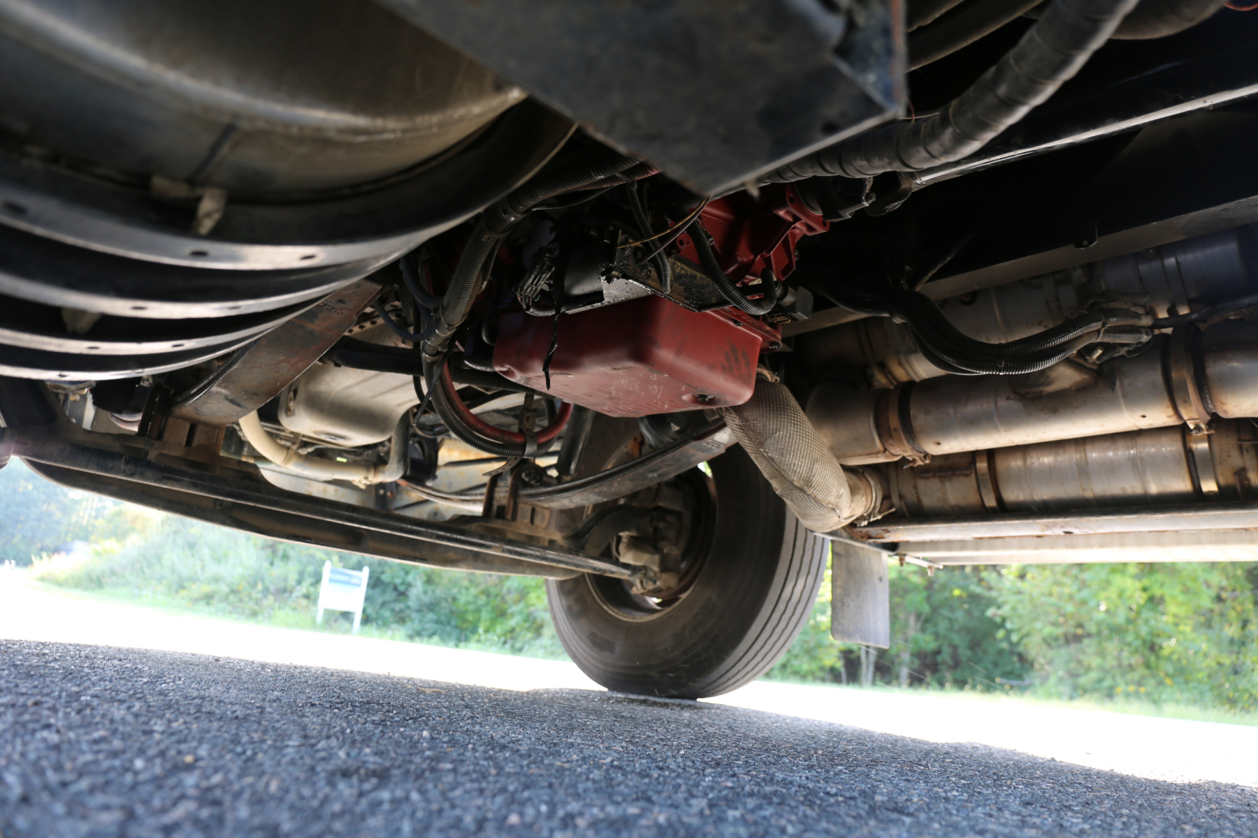 Oil change and new fuel filters, new rear brake shoes, new front brake shoes, new drive tires, driver’s side outrigger cylinder repacked, new drive belt, and some misc. lights replaced.