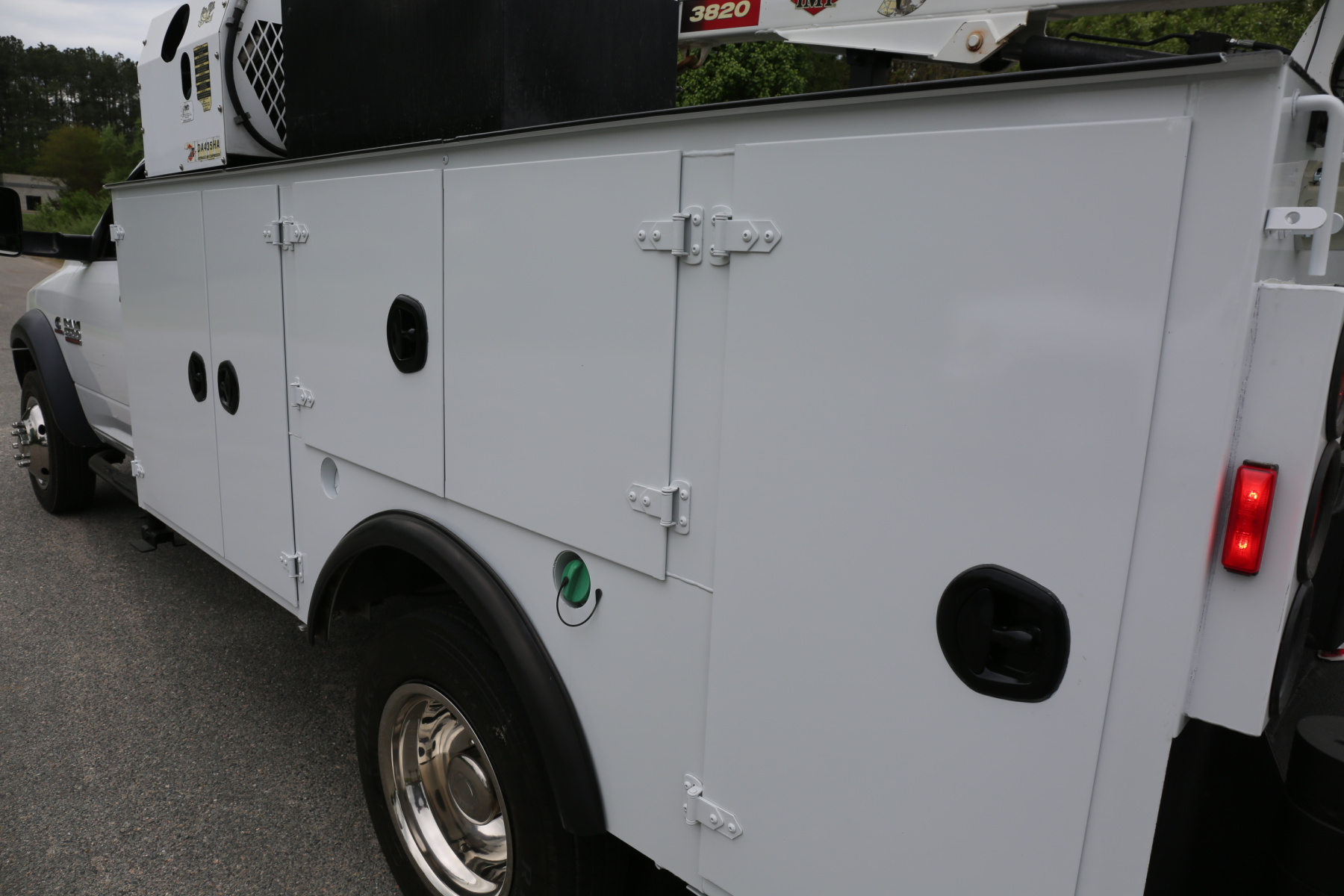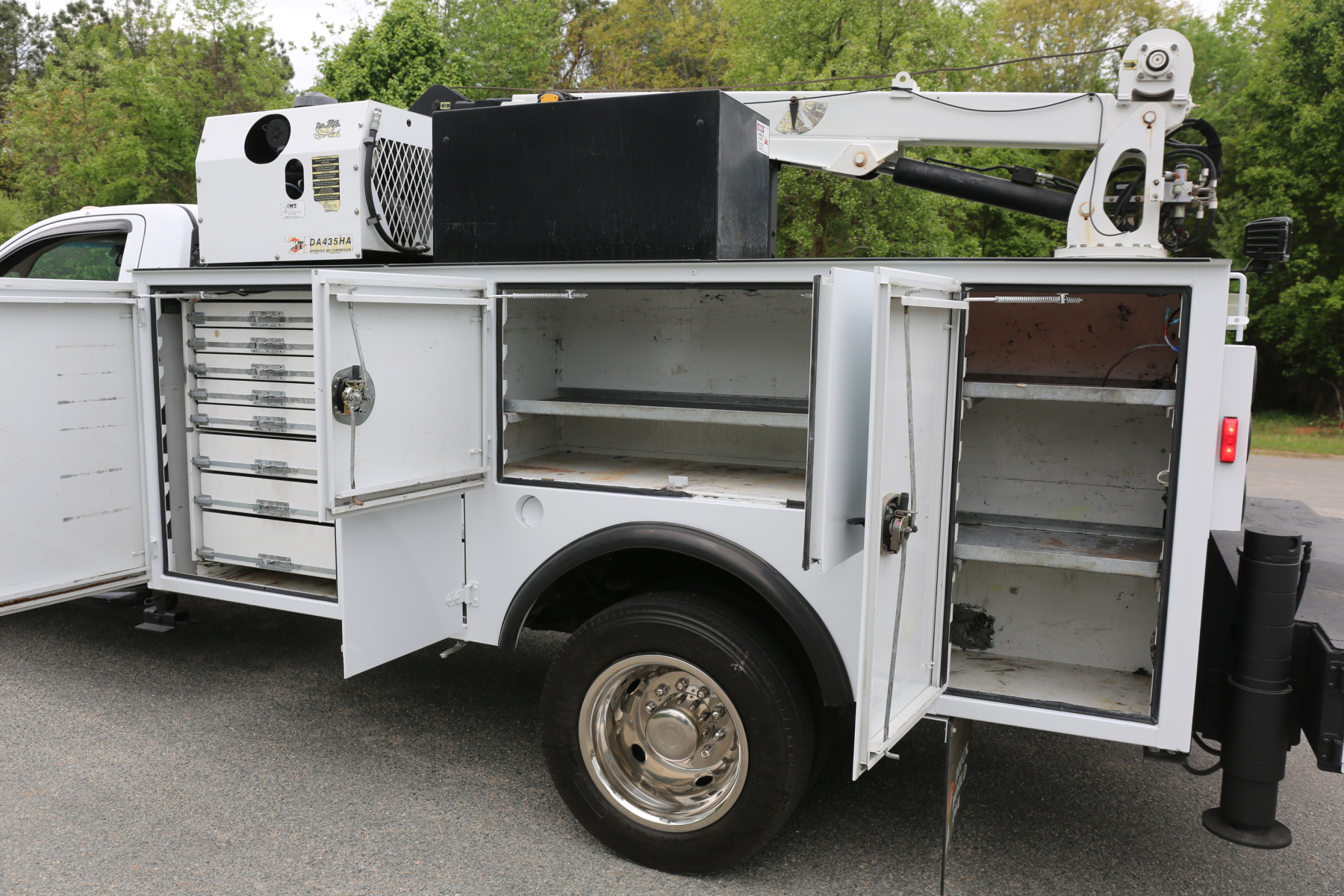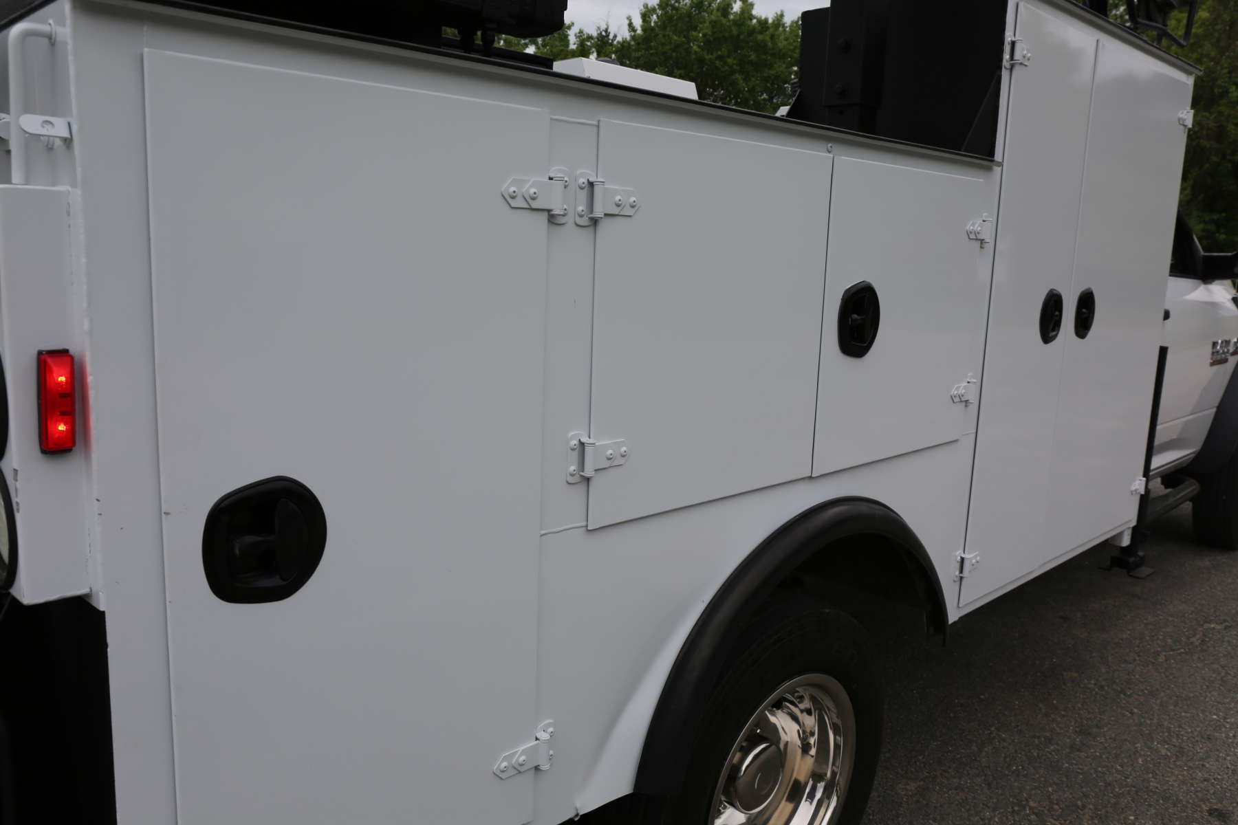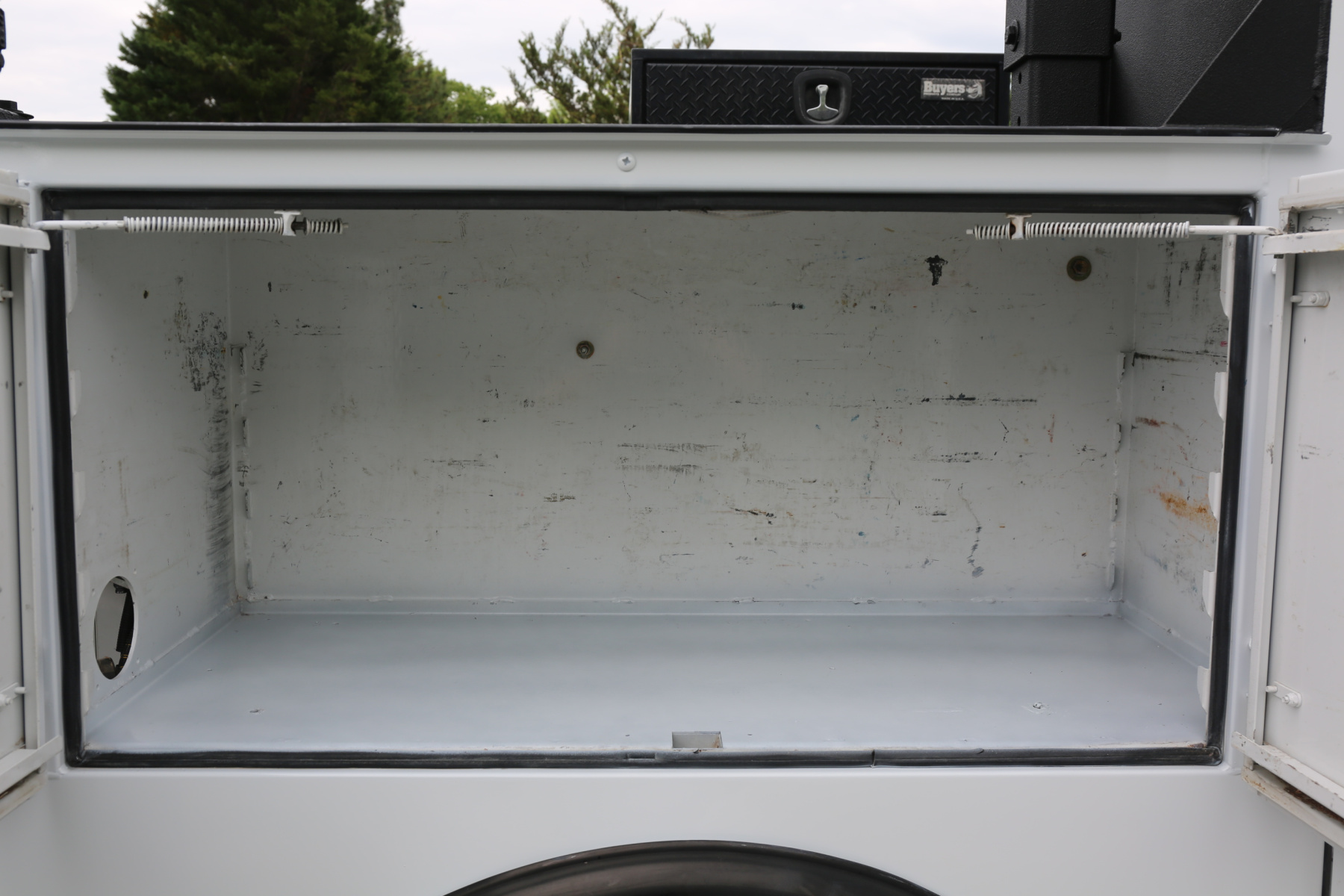 The entire exterior of the bed was sandblasted and repainted, and shows like new, with new bedliner applied to the bin fronts and the work bench rear bumper. All of the doors close, latch, lock, and seal as they should. We have the bin keys and all of the latches are keyed the same. Interior compartment lighting and exterior lighting throughout, all operational.