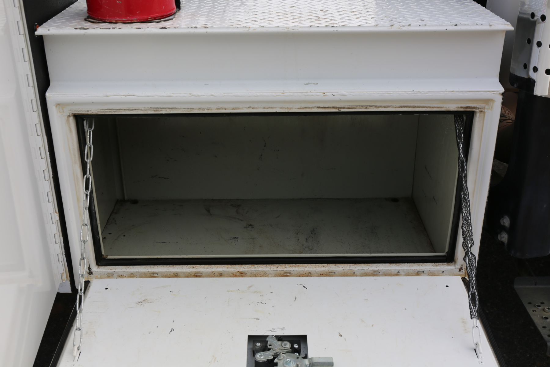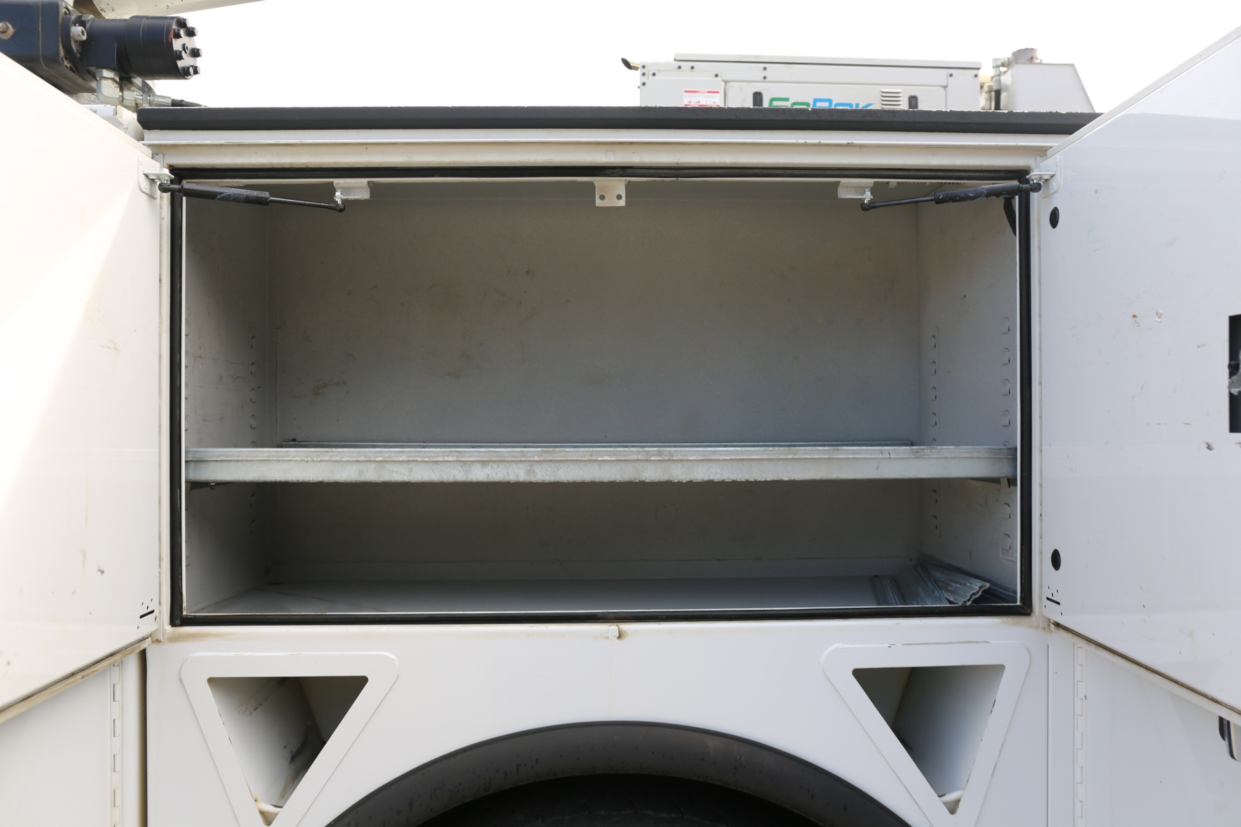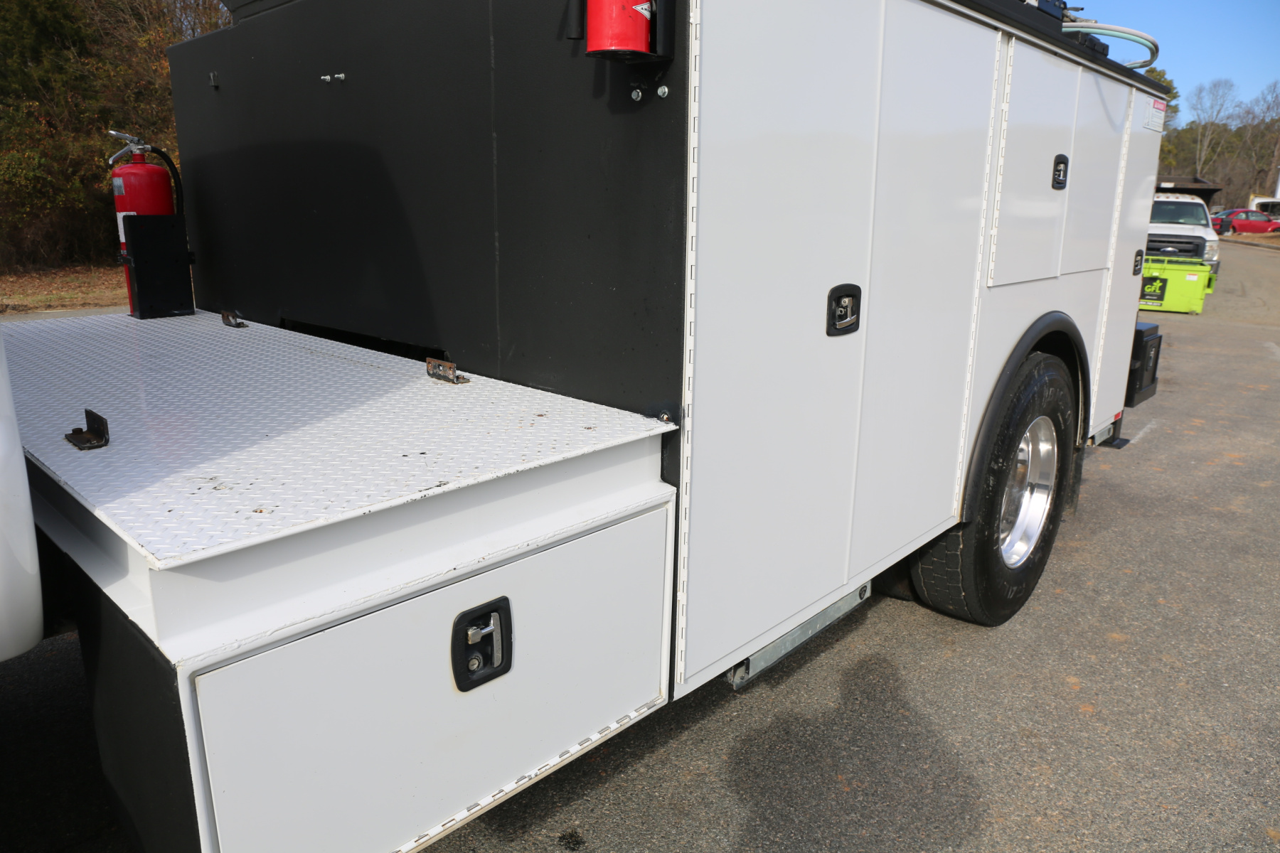 The mechanics body is in good condition, with no rust, and minimal rock chips. No major dents or scratches. All of the doors close, latch, lock, and seal as they should. Interior compartment lighting throughout, as well as exterior LED work lights. All lighting is operational.