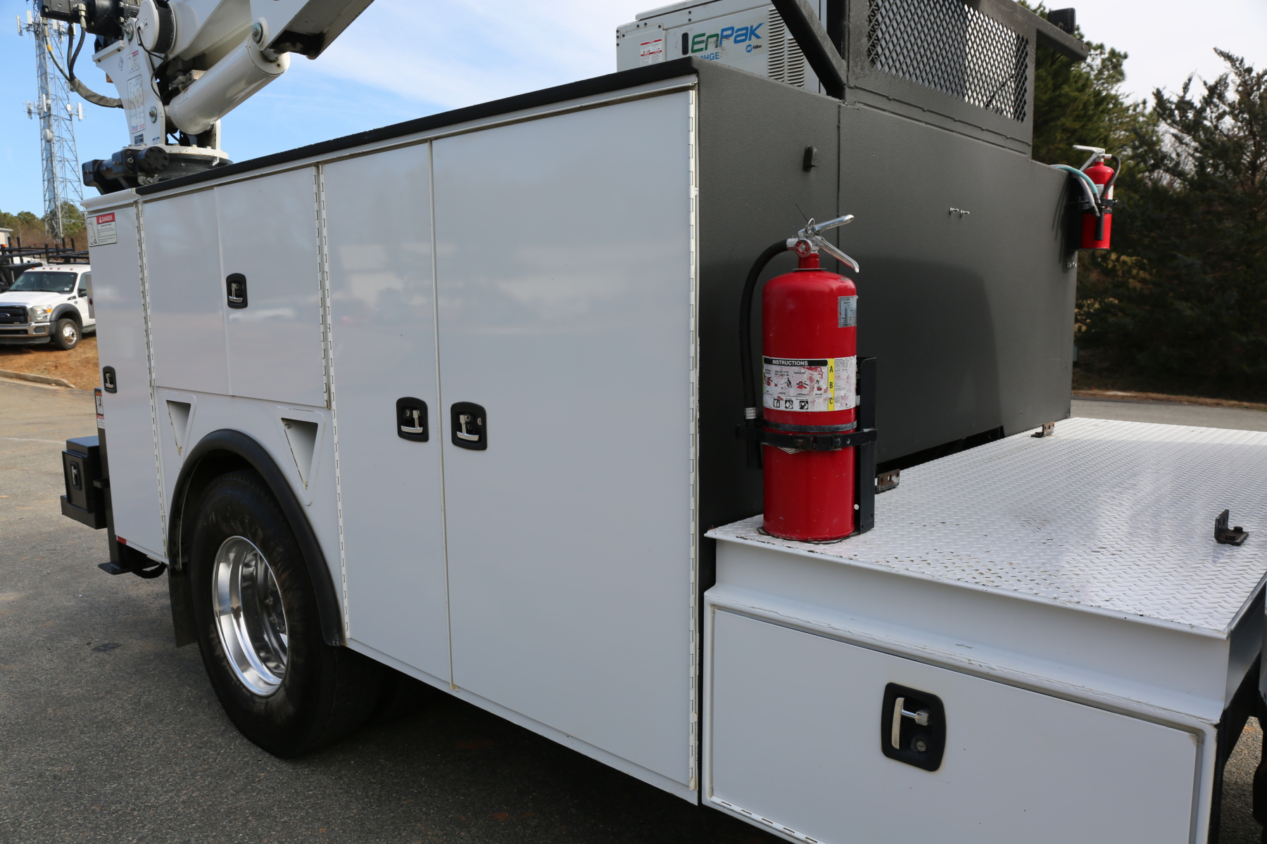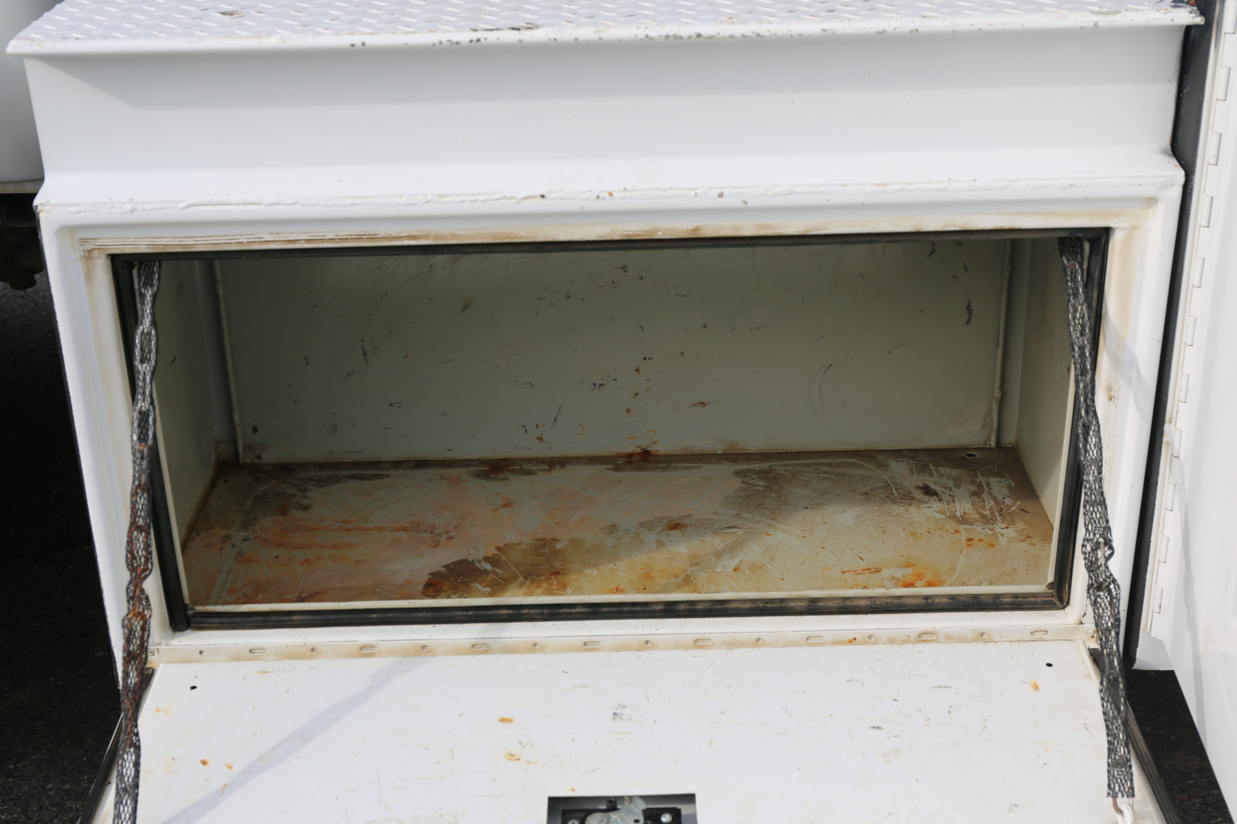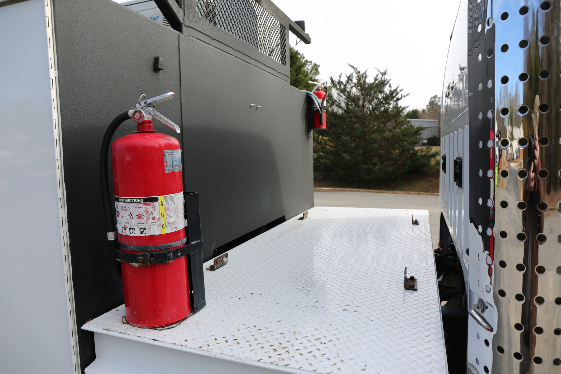 The mechanics body is in good condition, with no rust, and minimal rock chips. No major dents or scratches. All of the doors close, latch, lock, and seal as they should. Interior compartment lighting throughout, as well as exterior LED work lights. All lighting is operational.