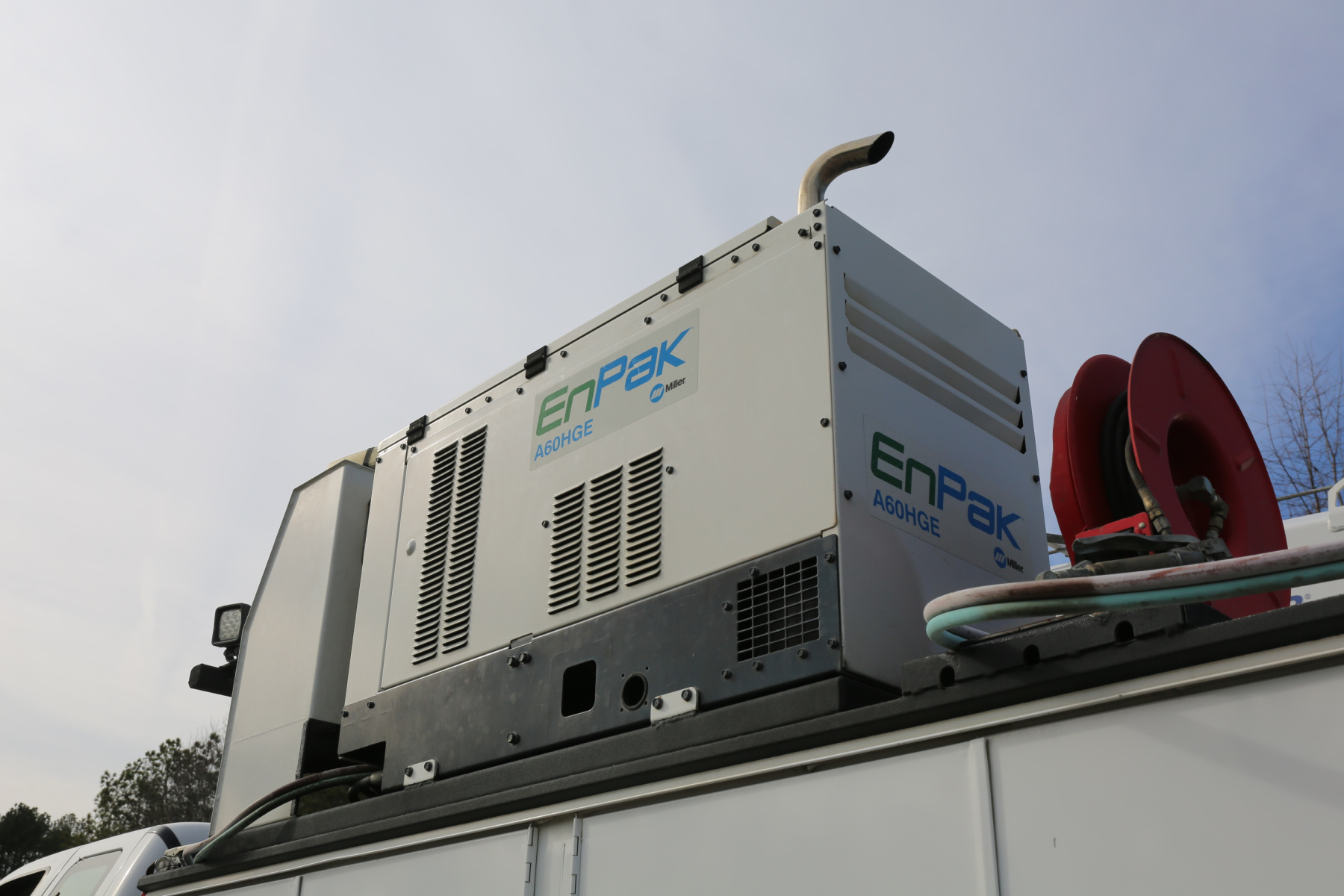 All of the bed hydraulics are run off the Miller EnPak unit. The EnPak is a combination hydraulic pump, compressor, and generator. Showing 1272 hours, and 2822 compressor hours.
