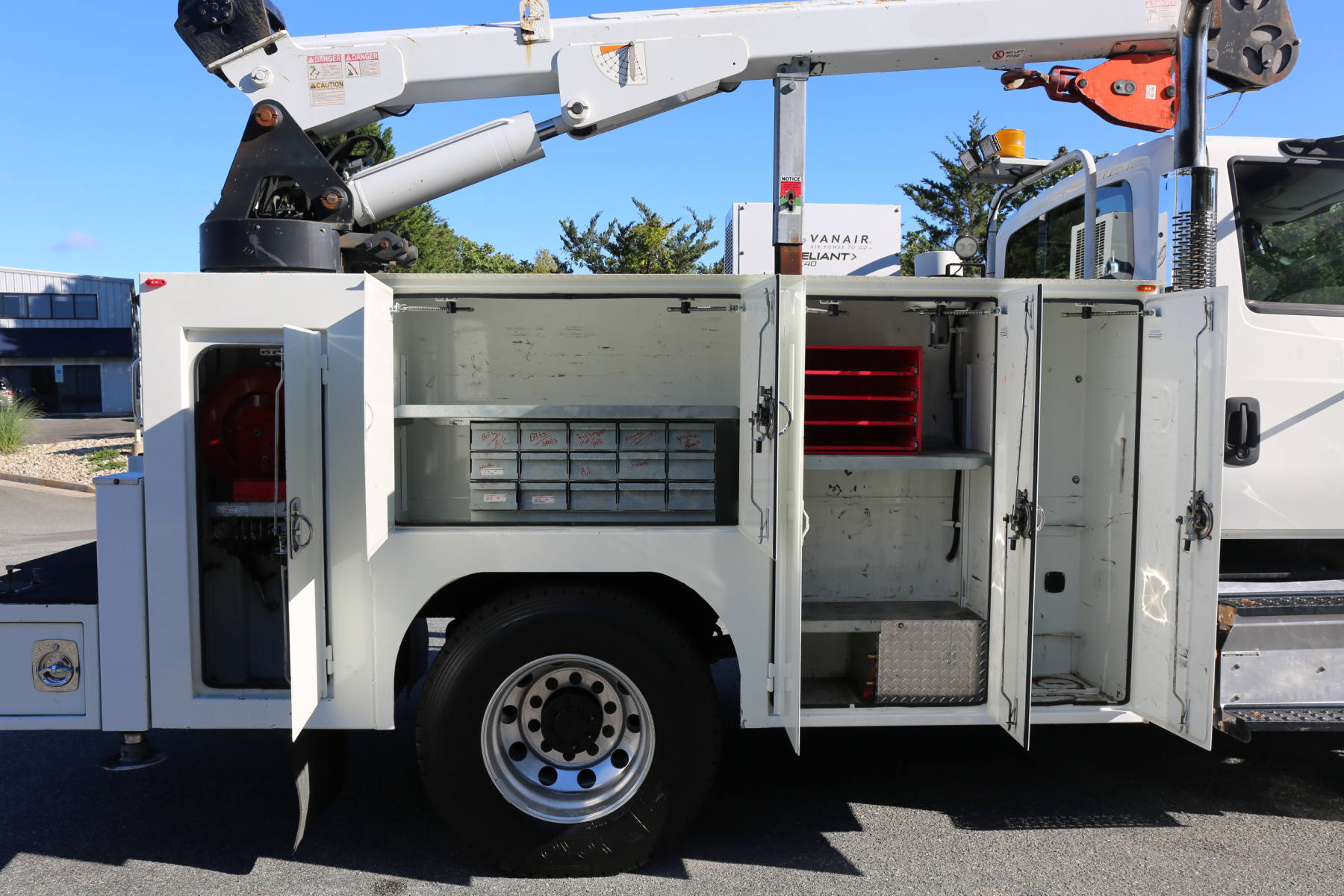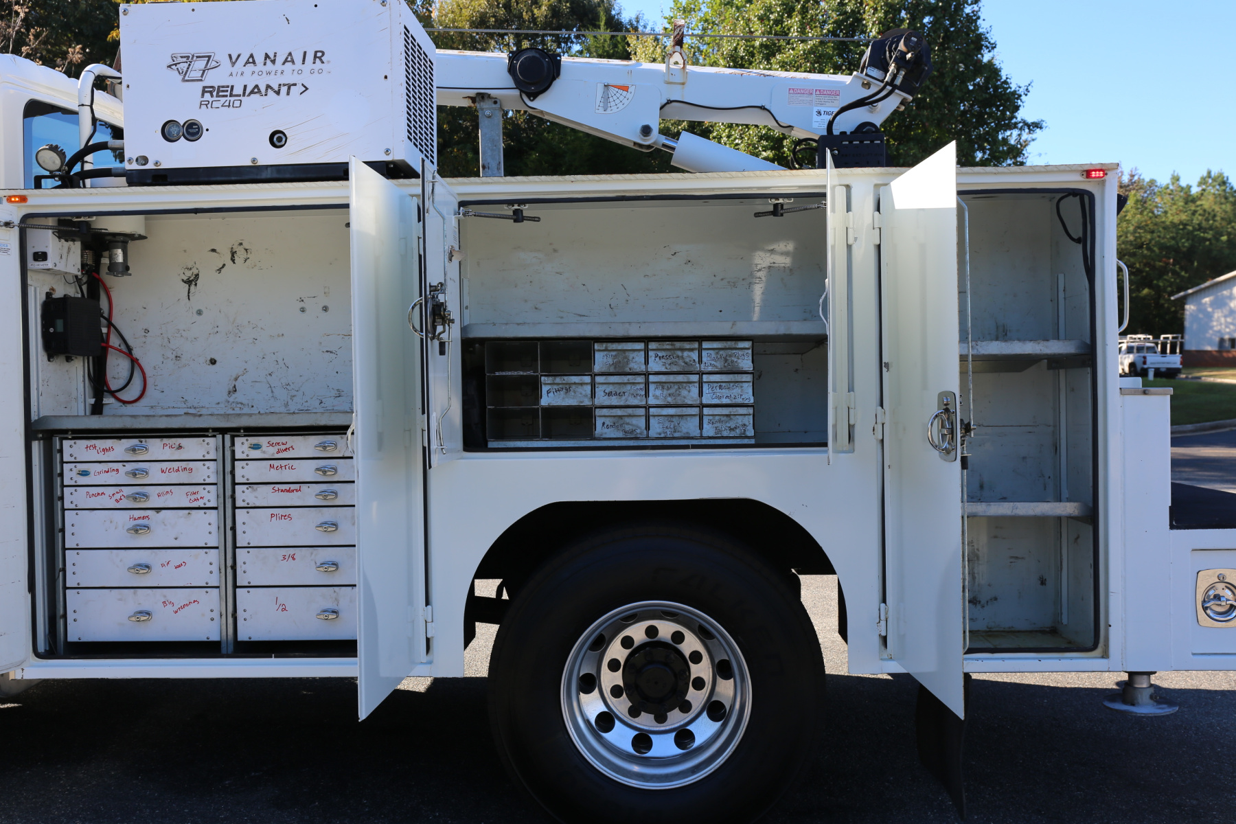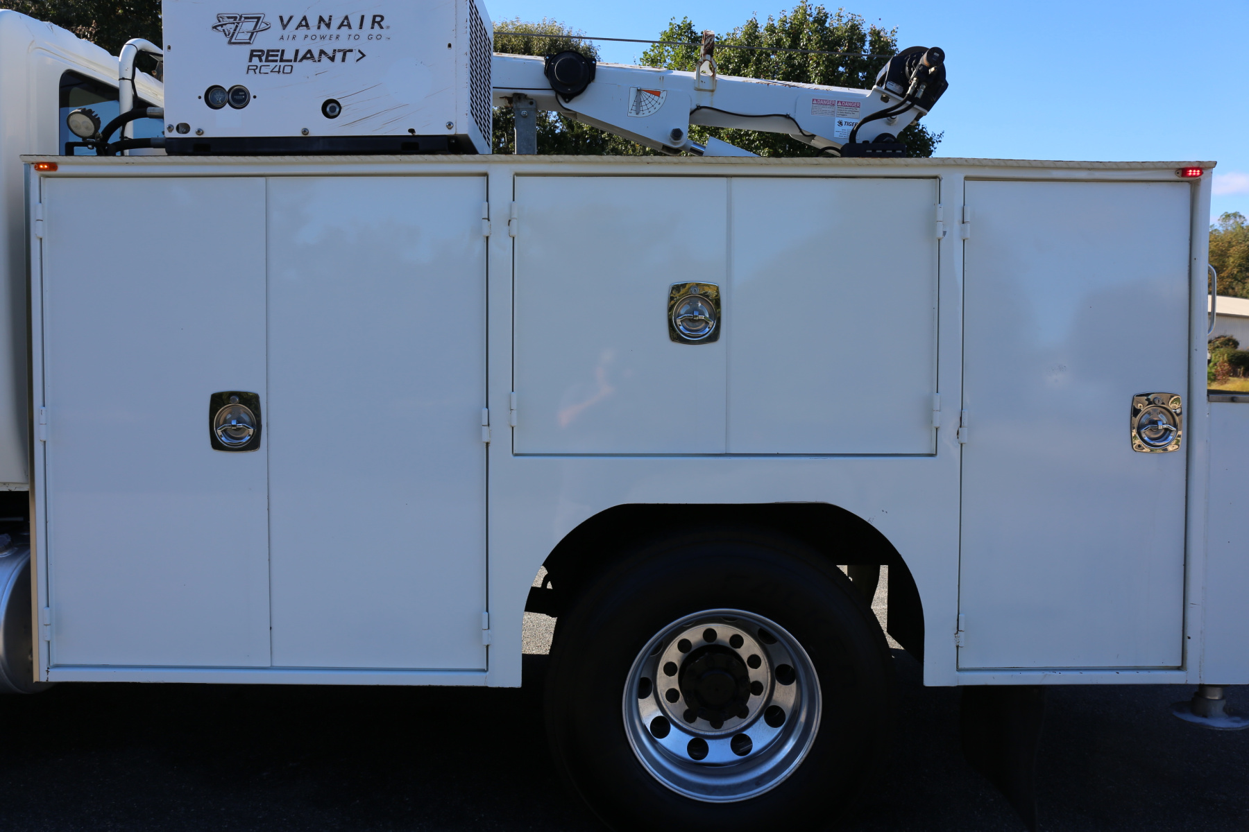 1 owner, southern owned truck, with no rust in the service body or truck frame. Very well equipped with an 11′ STI service body, 11k Tiger crane, two sets of drawers, Vanair RC40 hydraulic compressor, and hydraulic outriggers.