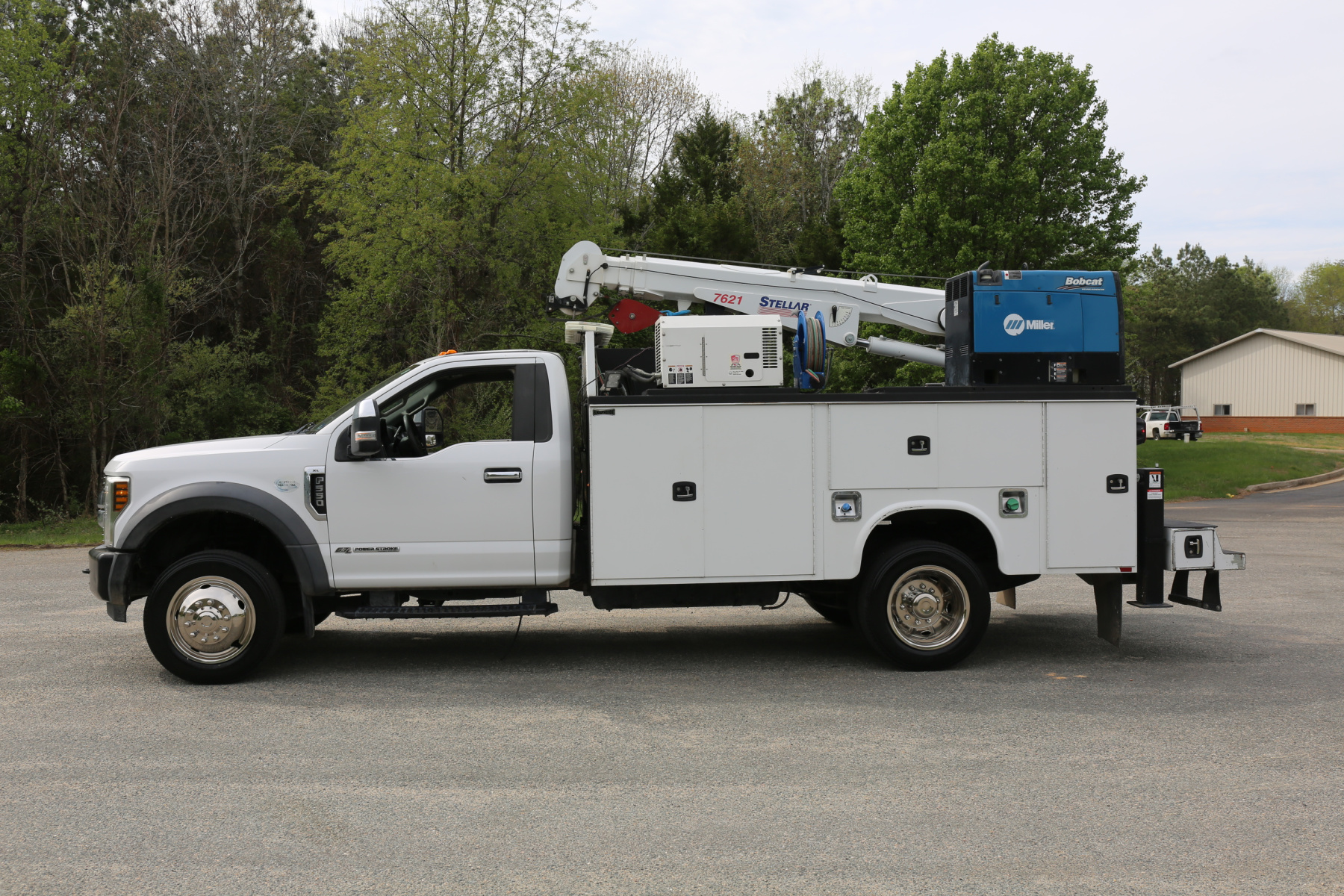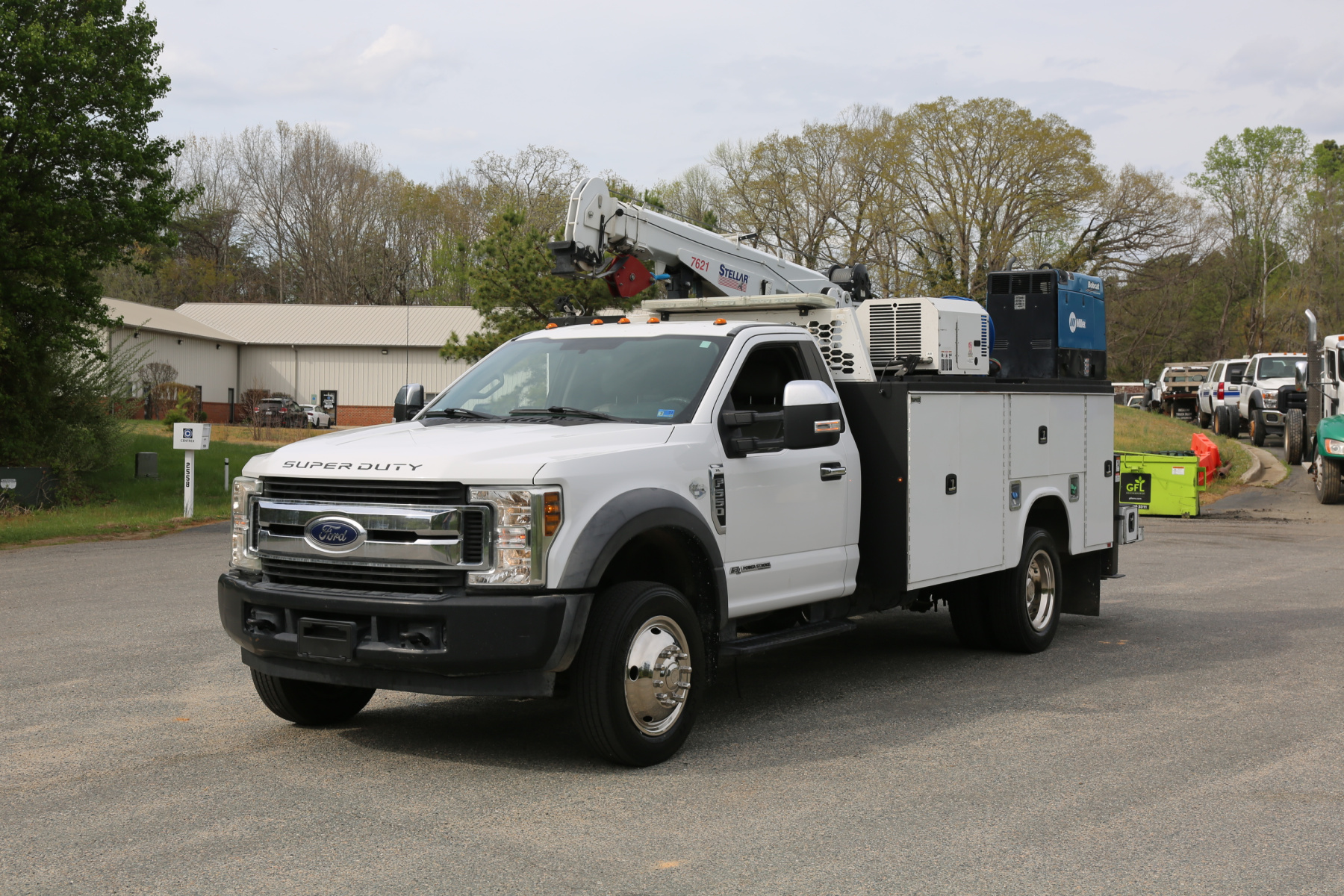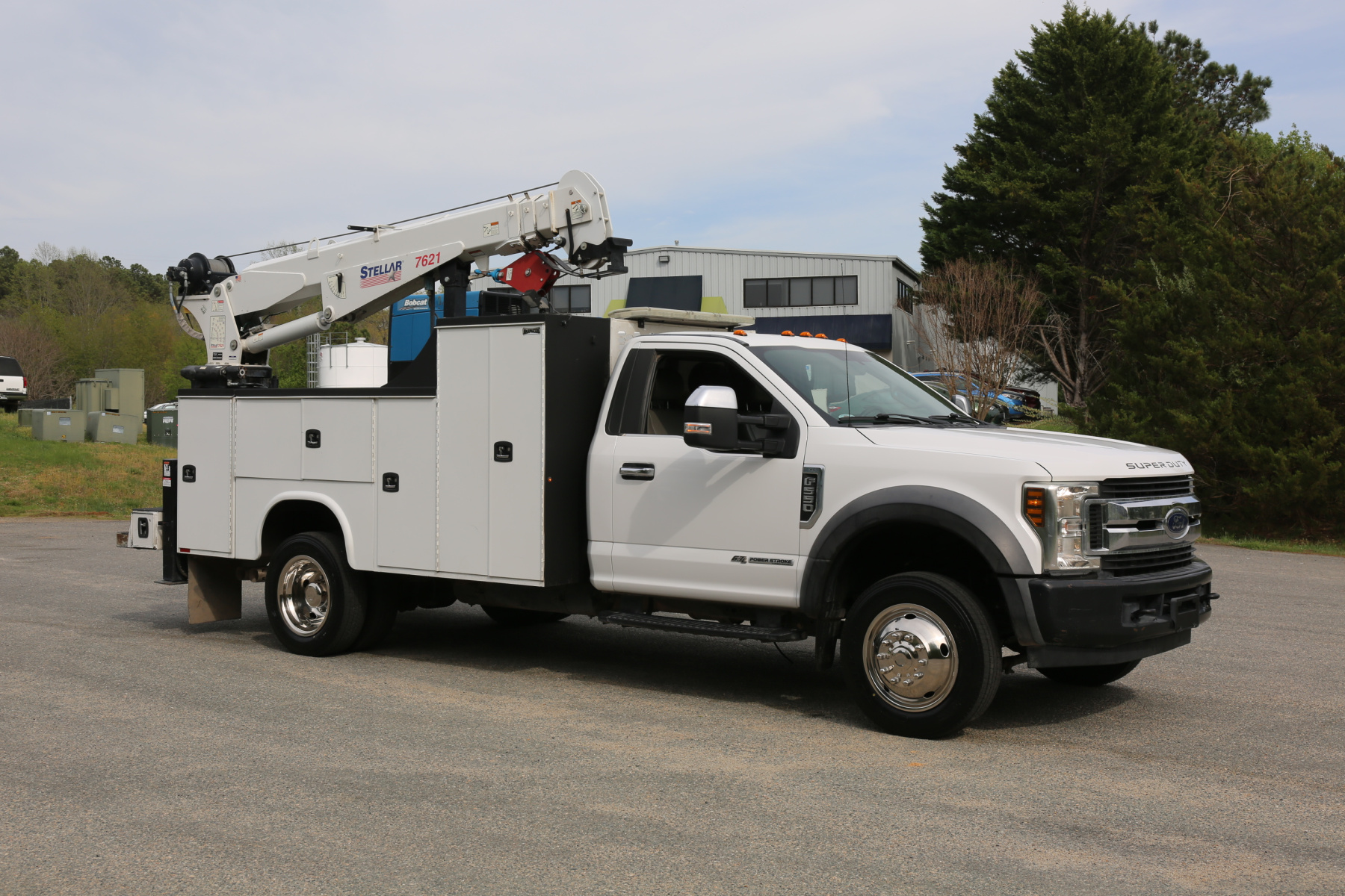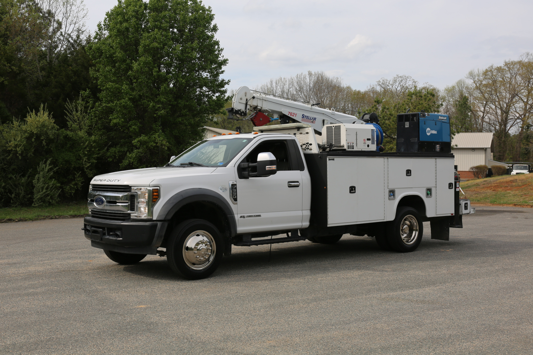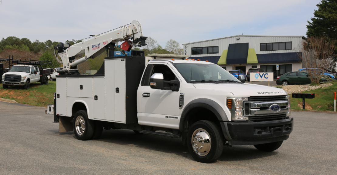 Thanks for taking the time to check out this 1 Owner 2019 Ford F550 service truck coming to us out of Texas. No reported accidents on the CARFAX history report, powered by a 6.7 Powerstroke diesel engine mated to the six speed automatic transmission, and 2WD. 19,500 GVWR, single cab, equipped with a Stellar 7621 crane, hydraulic compressor and outriggers, a Miller Bobcat 250 welder, and one set of CTech drawers.