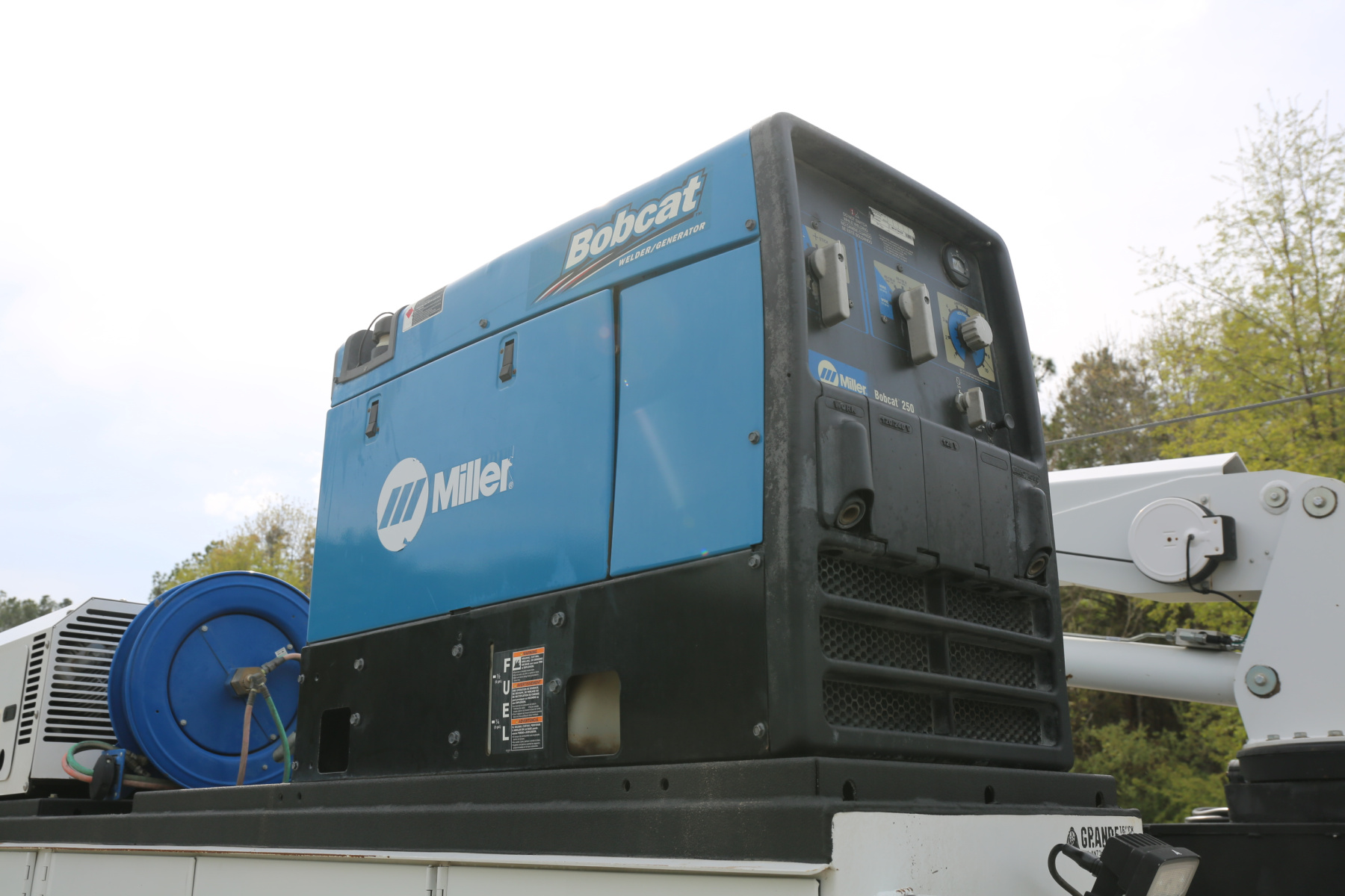 Boss BA440 hydraulic air compressor, runs as it should. Miller Bobcat 250 welder with leads, shows 40 total hours.