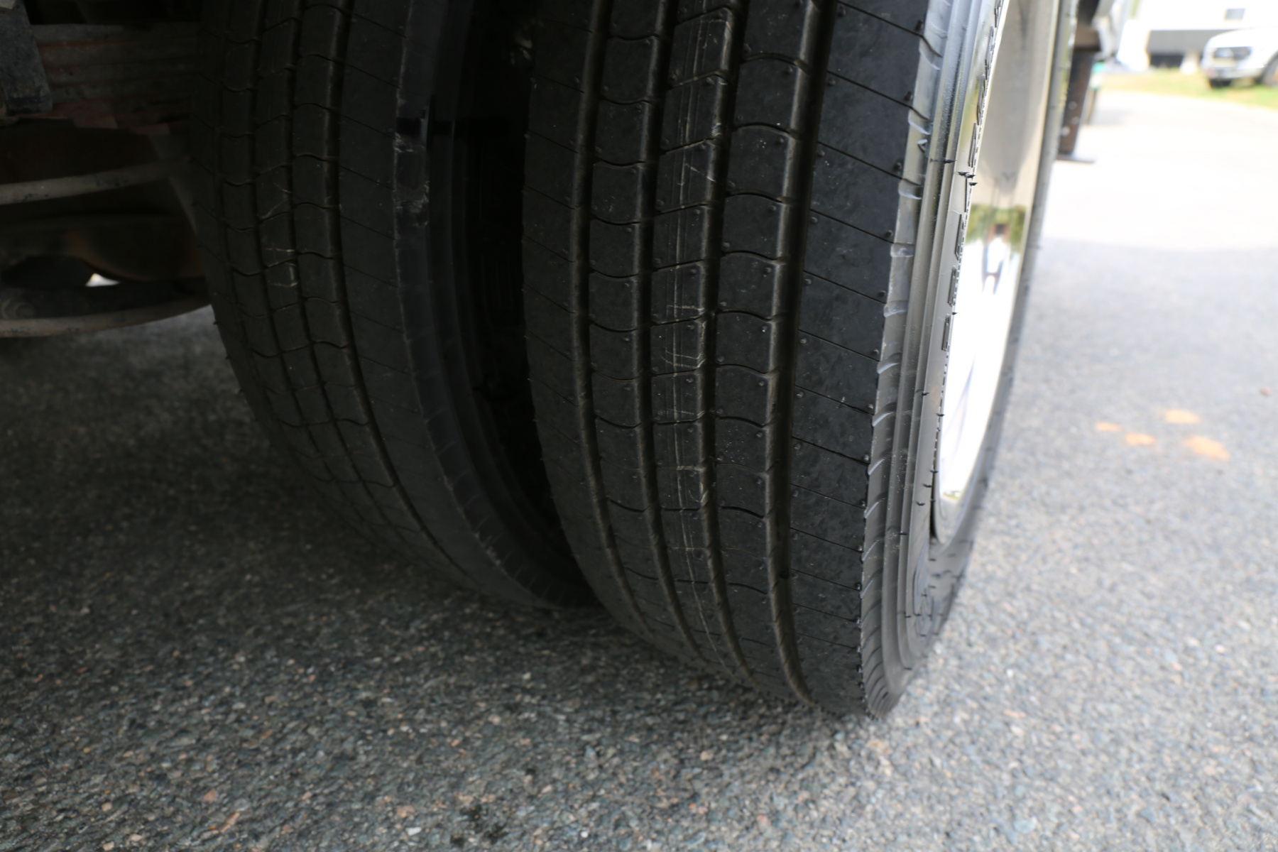 Oil change and new fuel filters, new hydraulic lines on the crane, new rear spring bushings, new drag link ends, new tires all around, and a front end alignment.