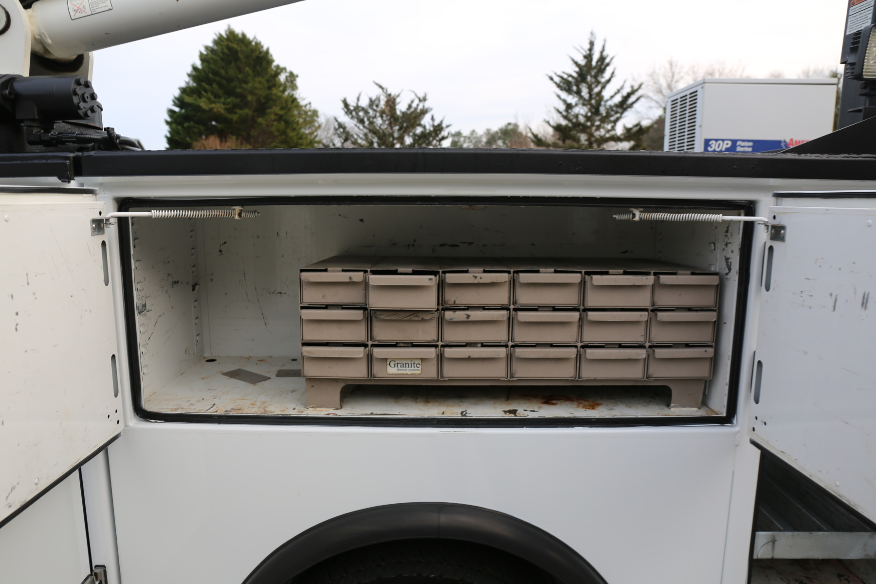 Over the passenger wheel well is a full set of Granite bolt drawers, eighteen total. Three shelves in the P2 compartment. The P1 compartment has three shelves, as well as torch bottle racks. Taller compartment to accommodate torch bottles.