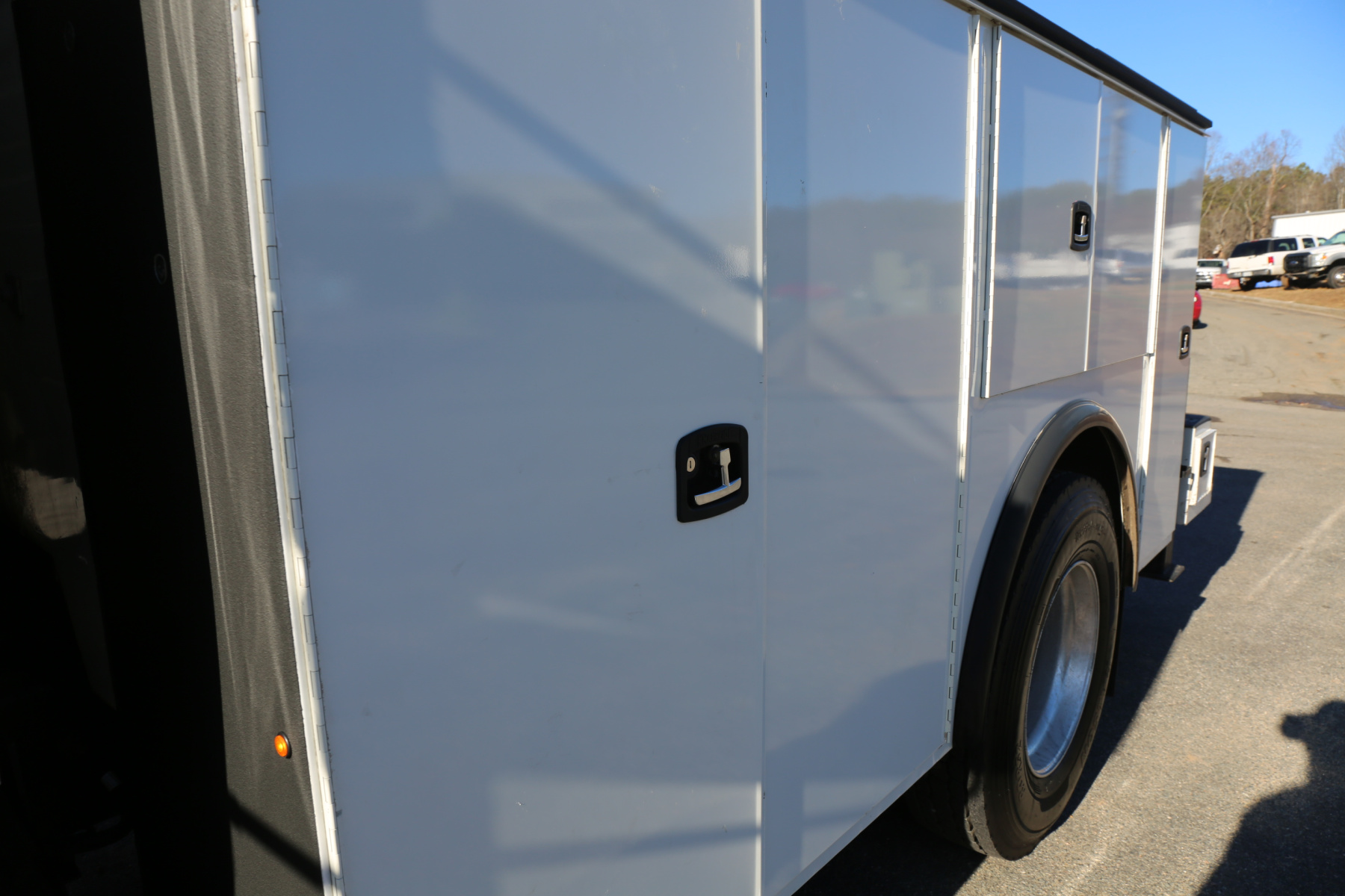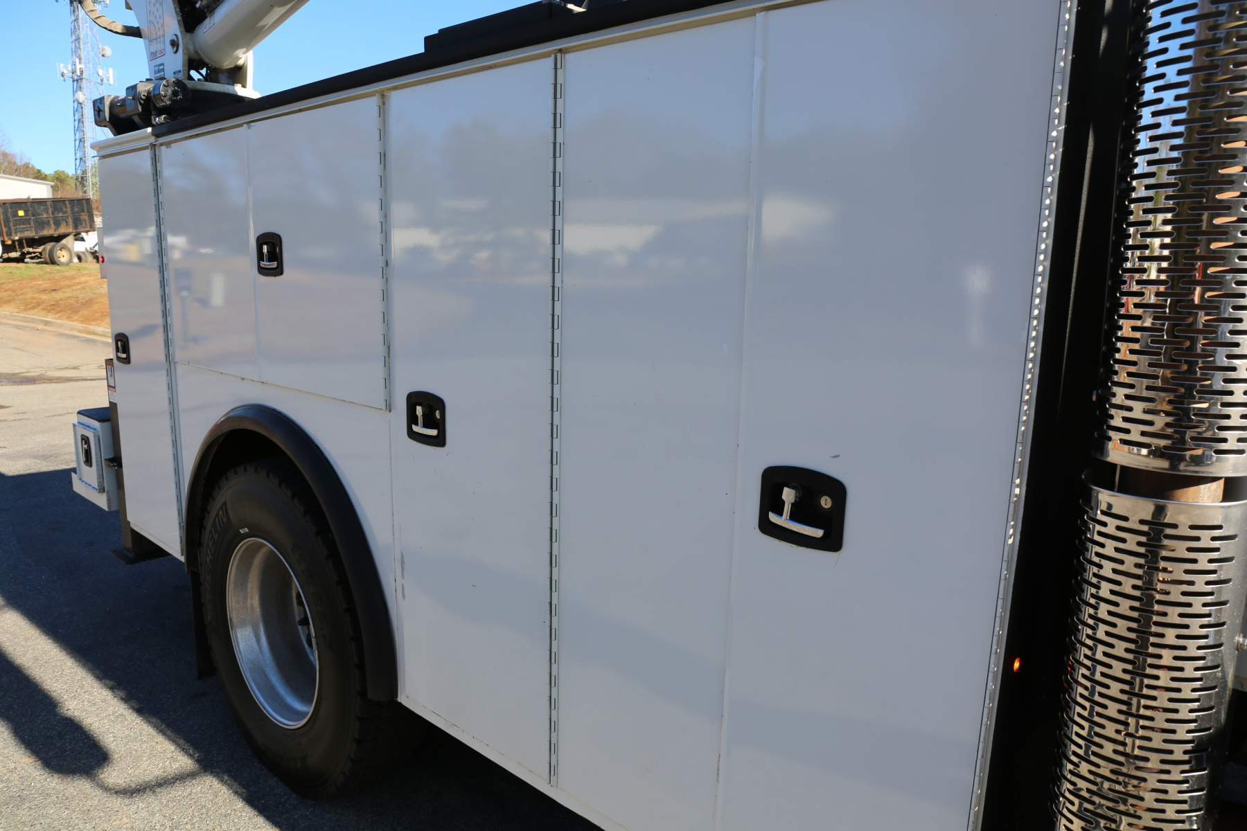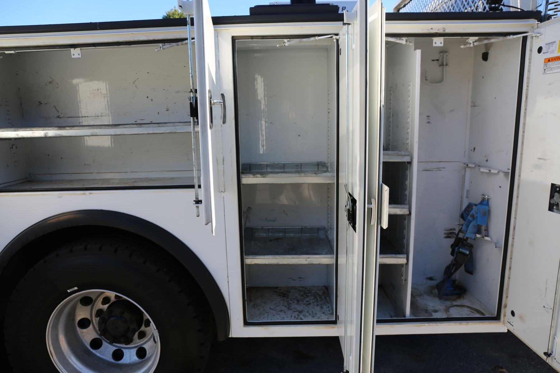 Work bench rear bumper with pass through bin storage underneath. Hydraulic outriggers, and master slide locks for both bedsides. Factory welder mount on top of the driver rear compartment.