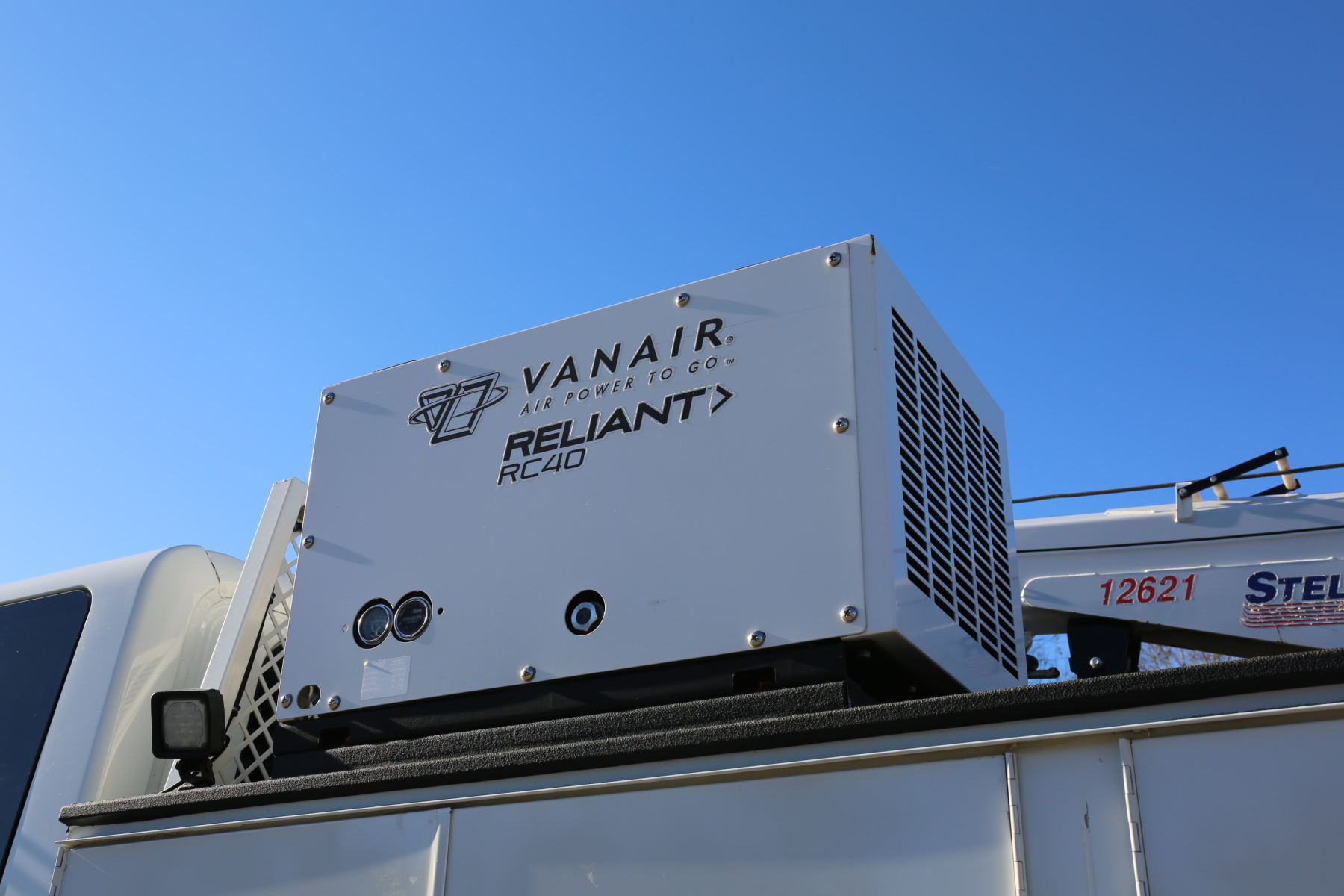 The Vanair RC40 compressor operates as it should, builds air quickly, and shows 121 total hours.