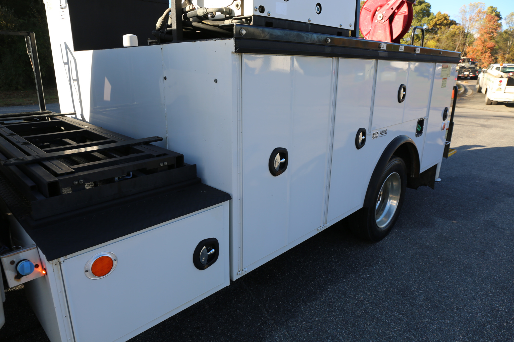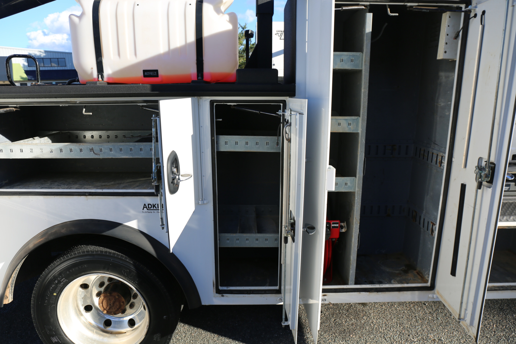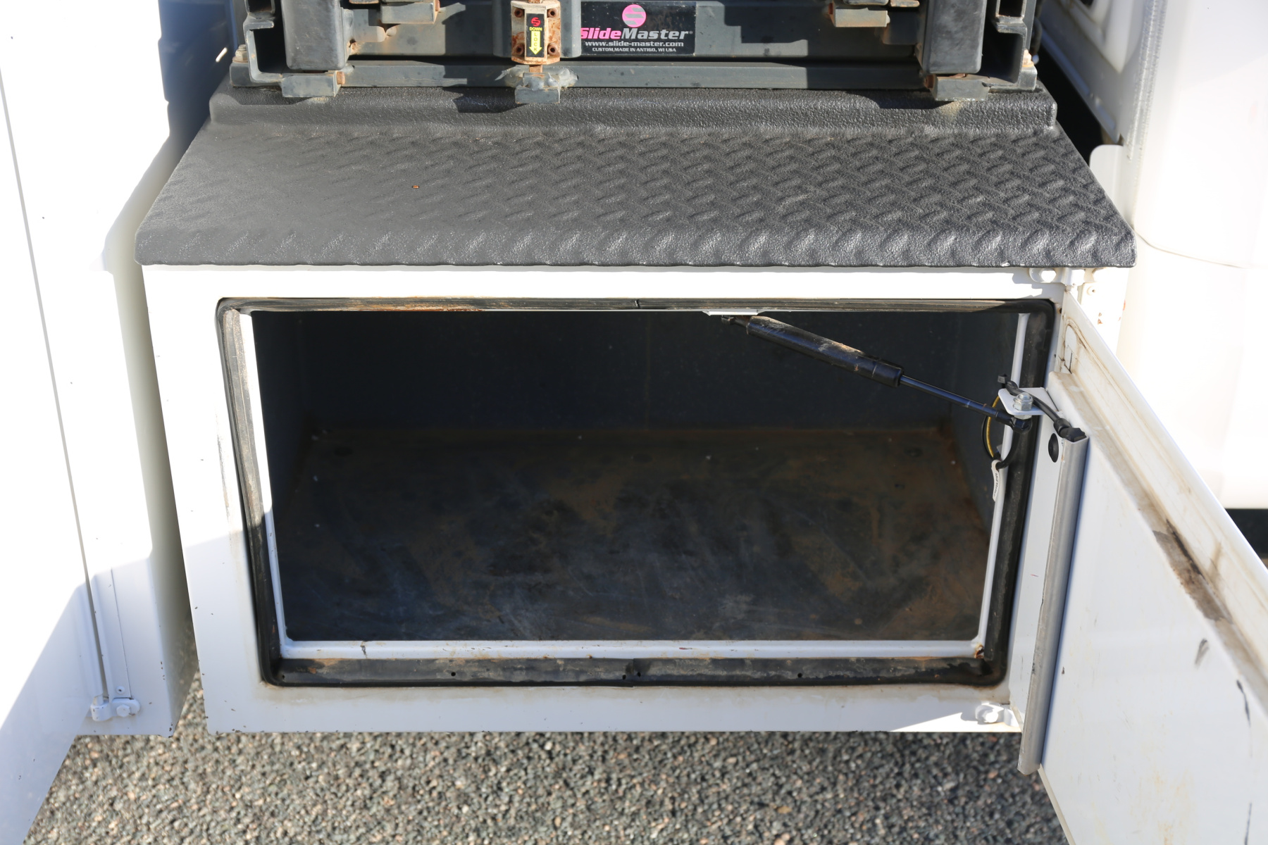 The bed is in excellent shape overall, free of any large scratches or dents, and has no rust. Interior compartment lighting through all the bins, exterior work lighting all around, master slide locks on the rear, rail mounting system on the bin tops, and built in steps on the rear bumper. Very well laid out body.