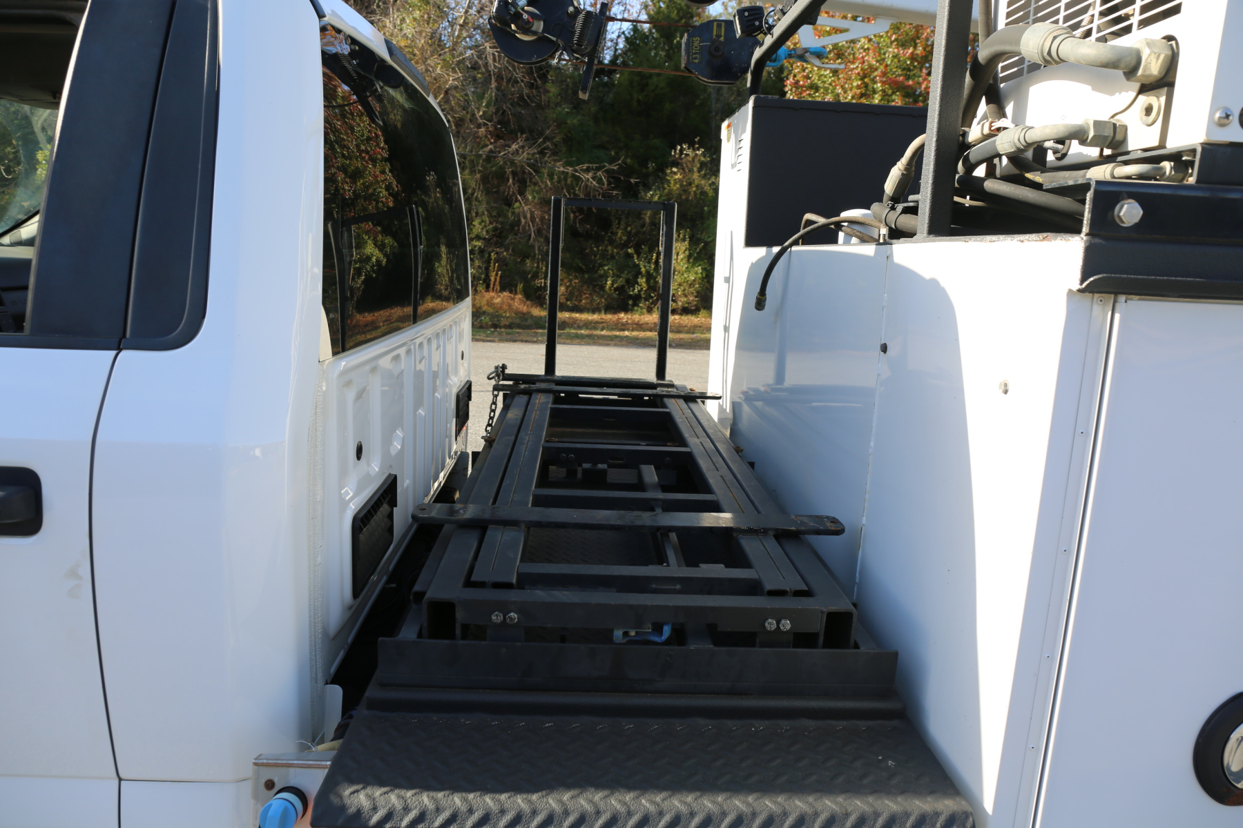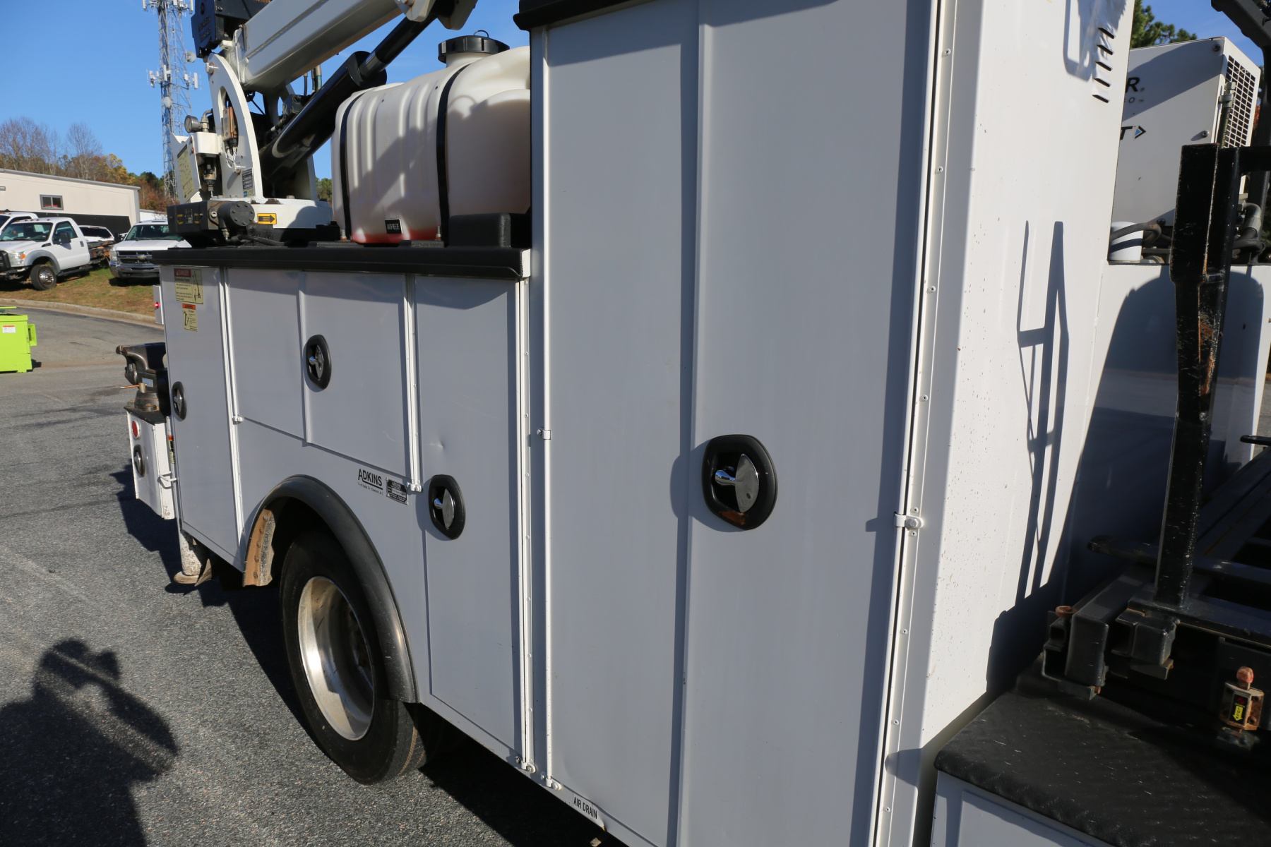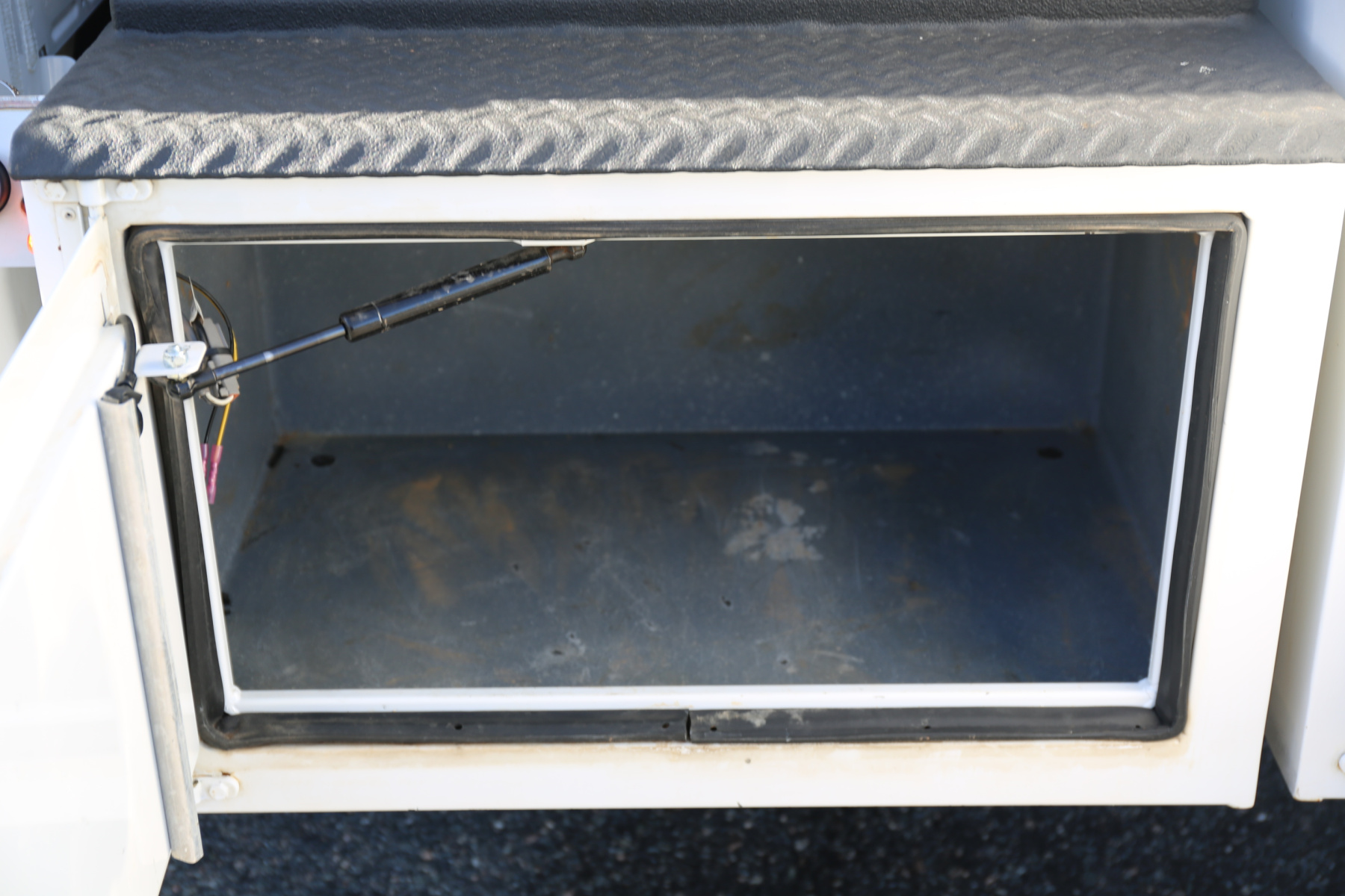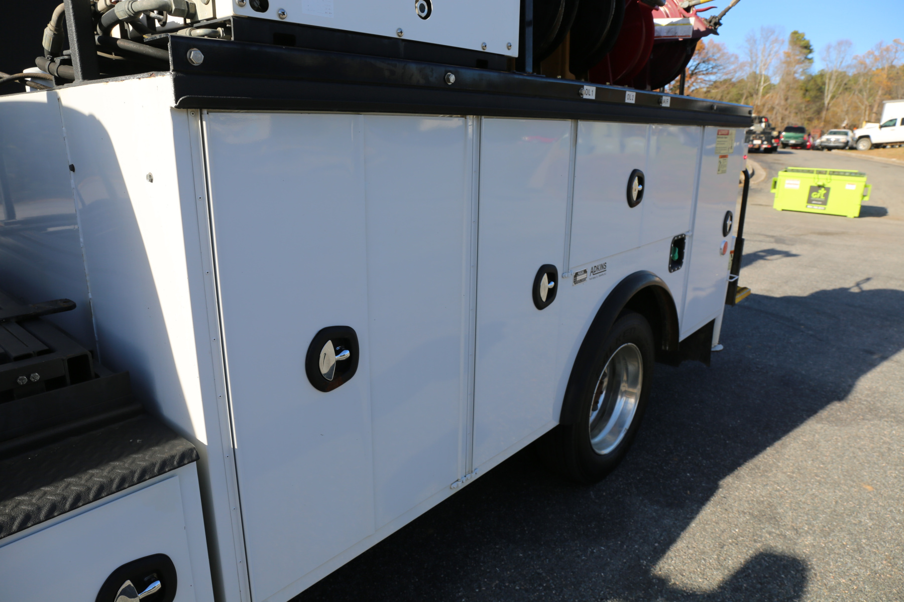 The bed is in excellent shape overall, free of any large scratches or dents, and has no rust. Interior compartment lighting through all the bins, exterior work lighting all around, master slide locks on the rear, rail mounting system on the bin tops, and built in steps on the rear bumper. Very well laid out body.