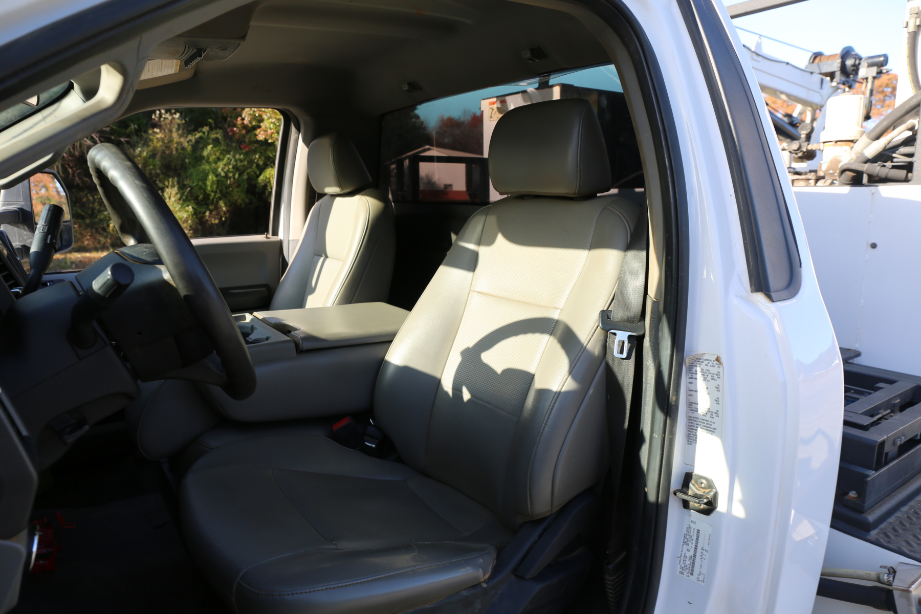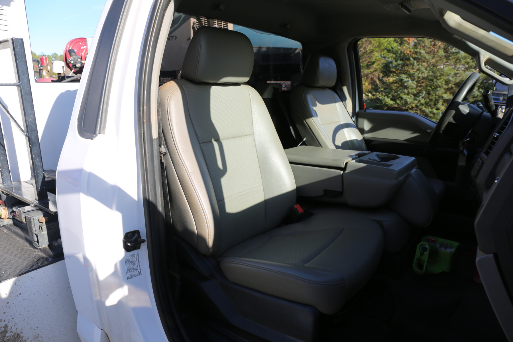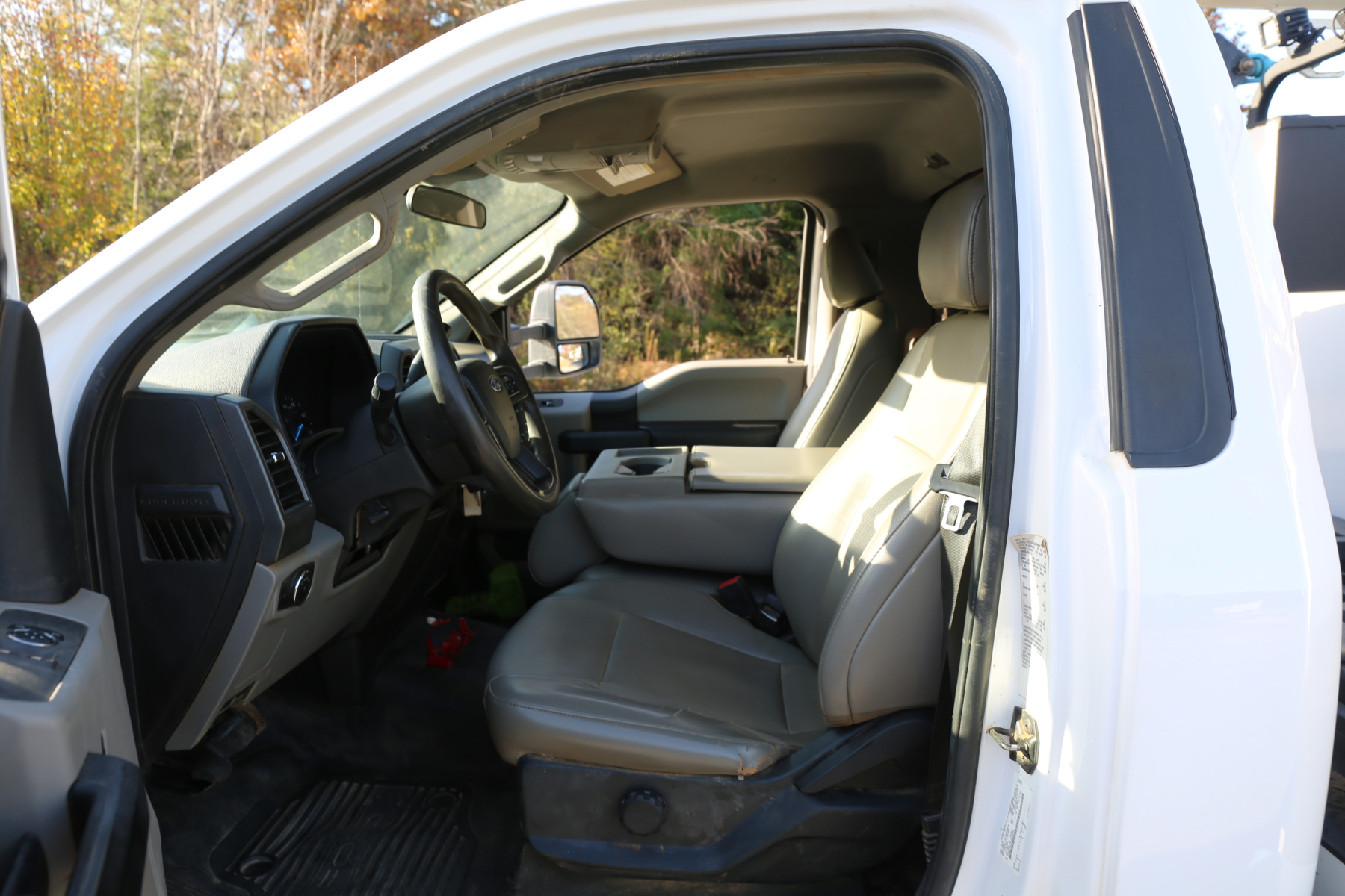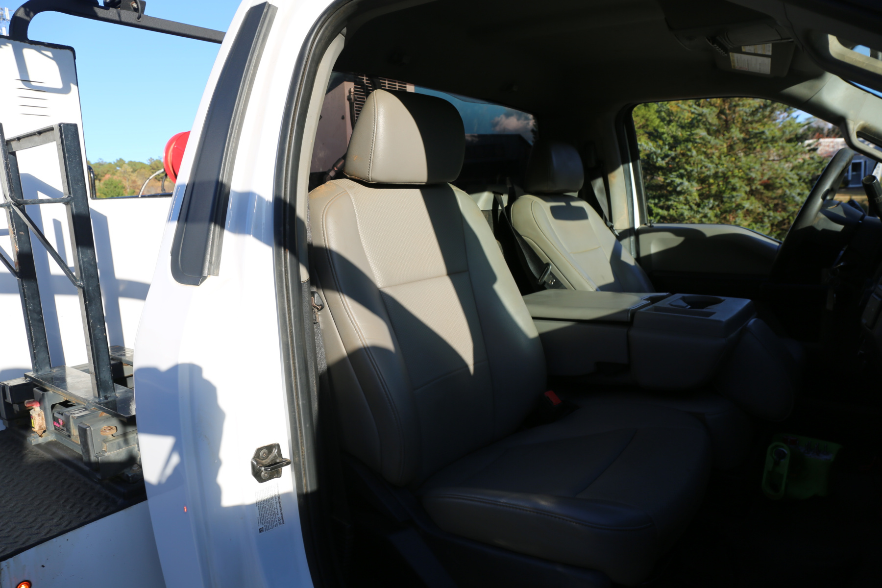The cab interior is clean and free of any rips or tears. Vinyl seats and rubber flooring. Power locks, power windows, and cruise control.