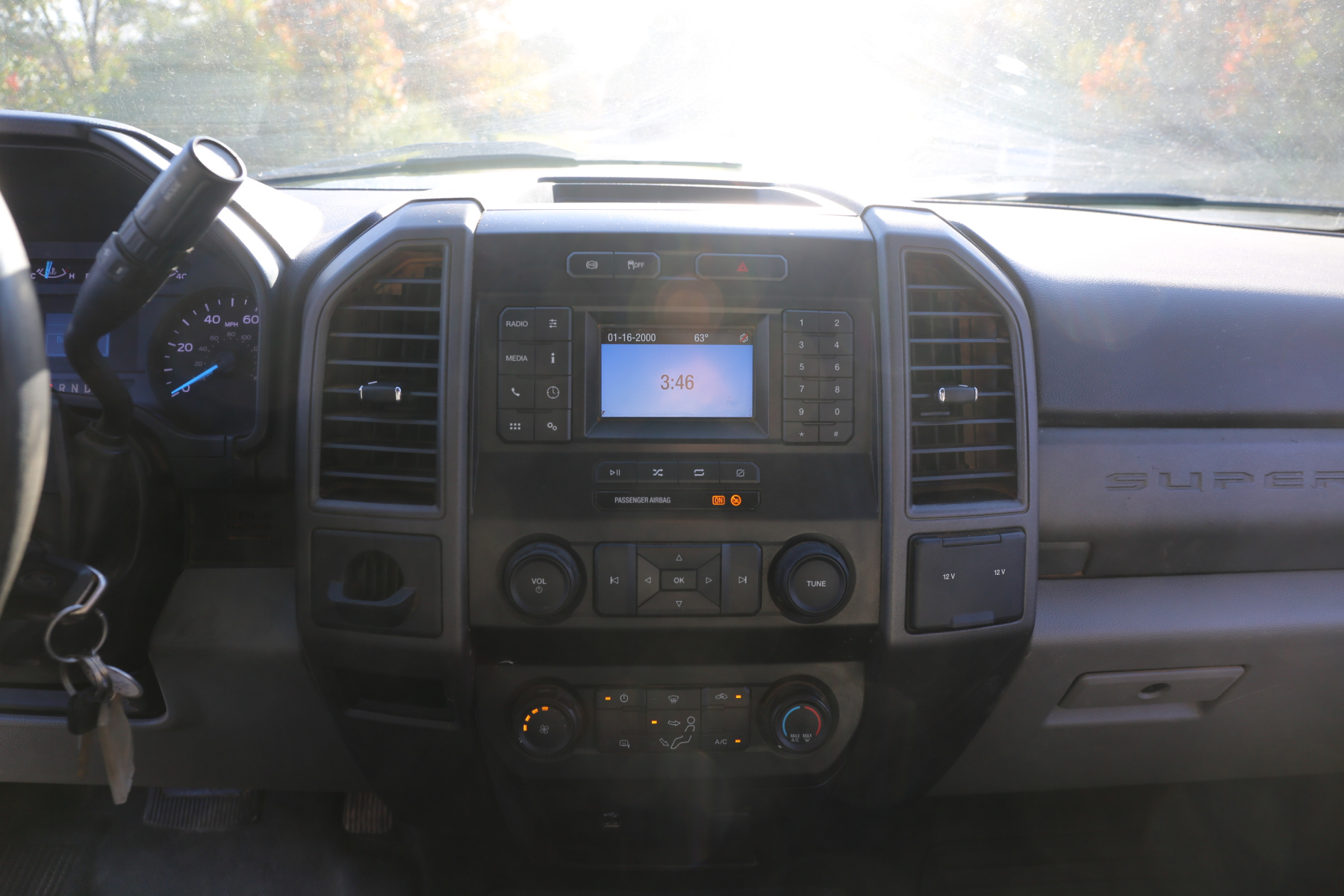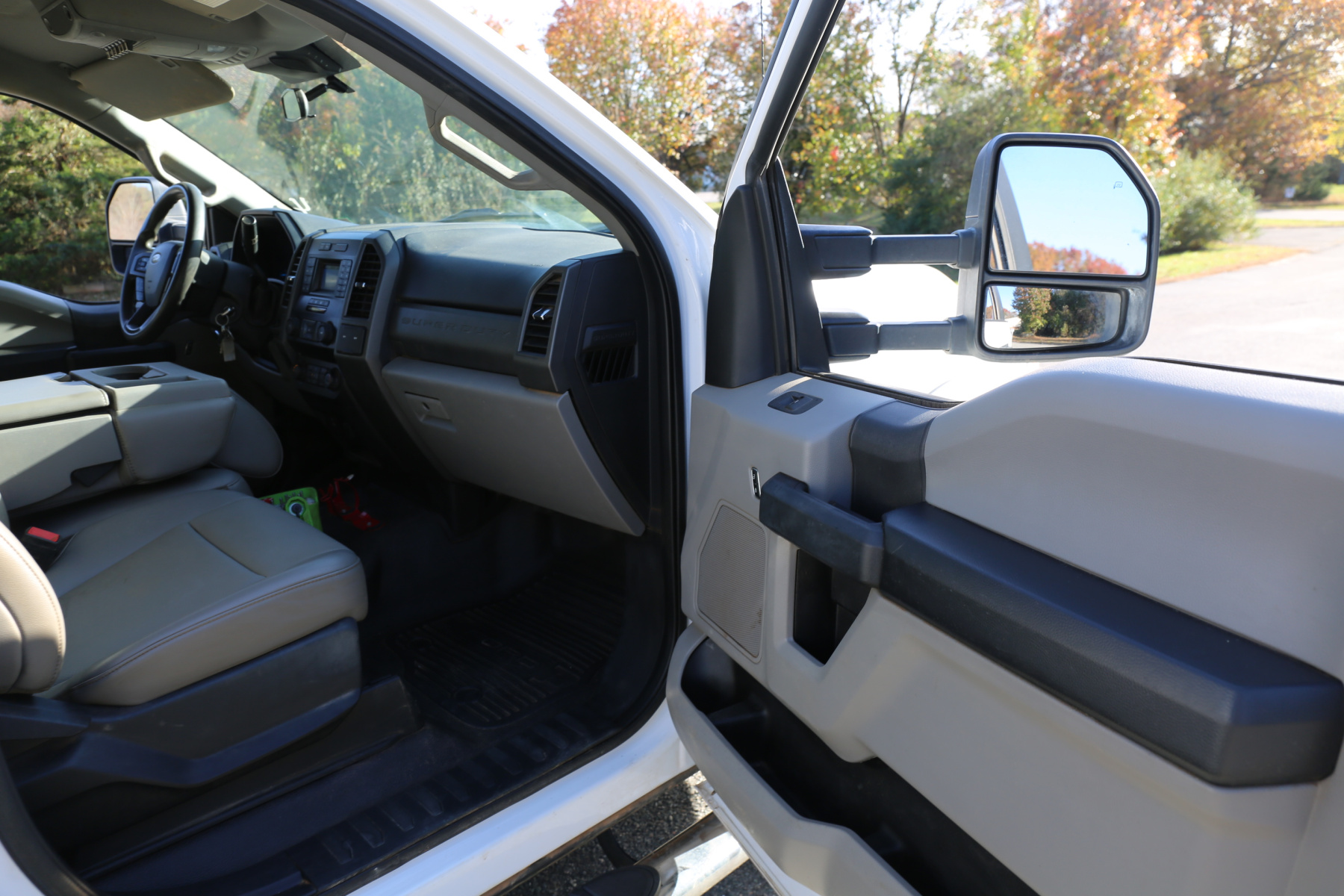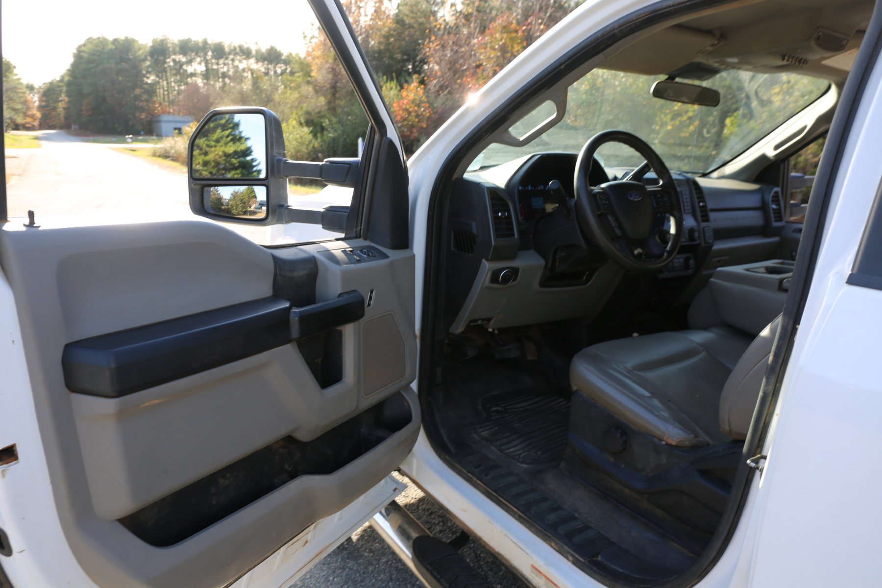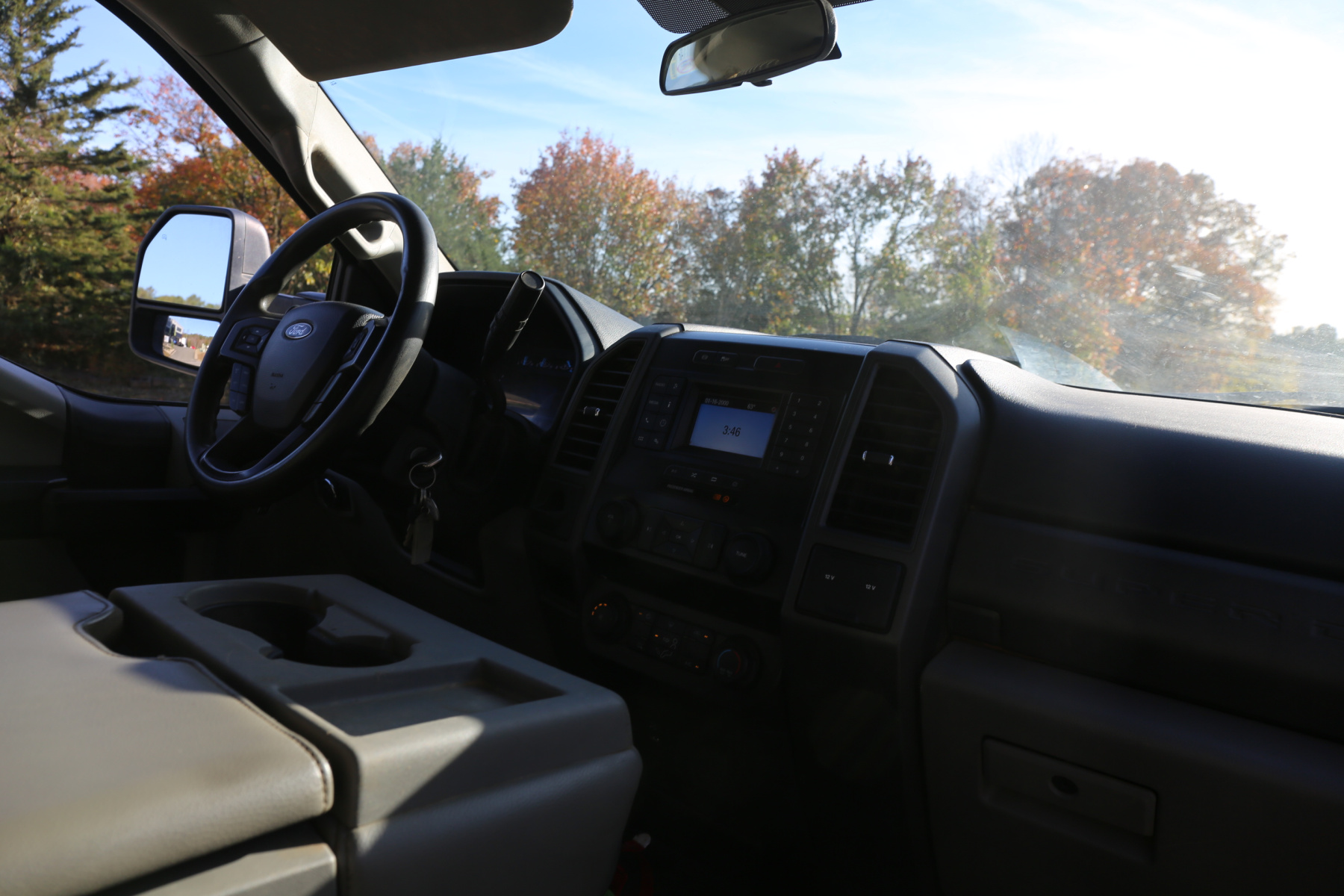 The cab interior is clean and free of any rips or tears. Vinyl seats and rubber flooring. Power locks, power windows, and cruise control.