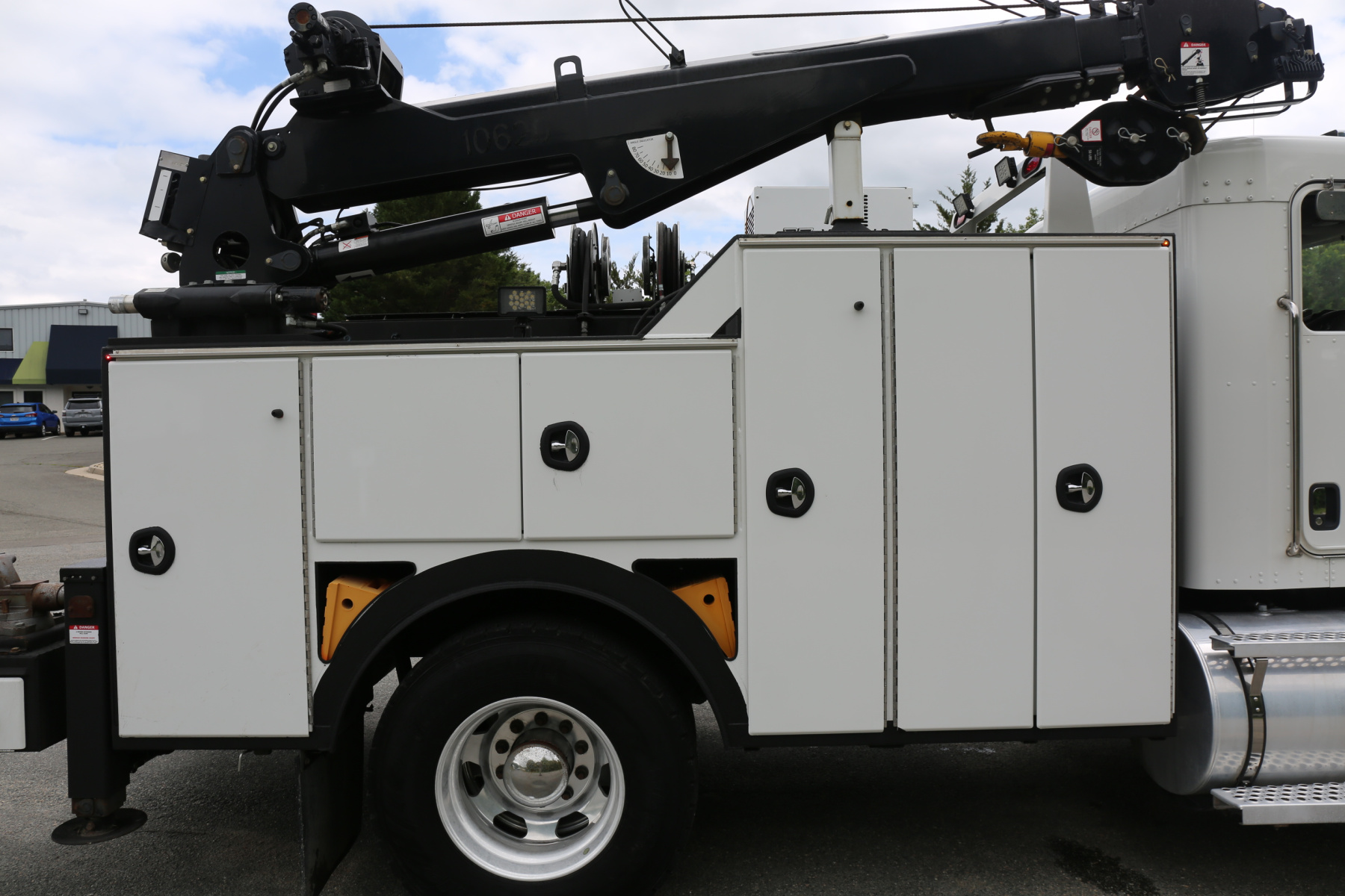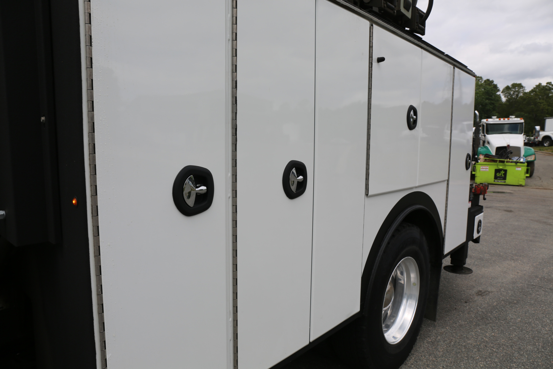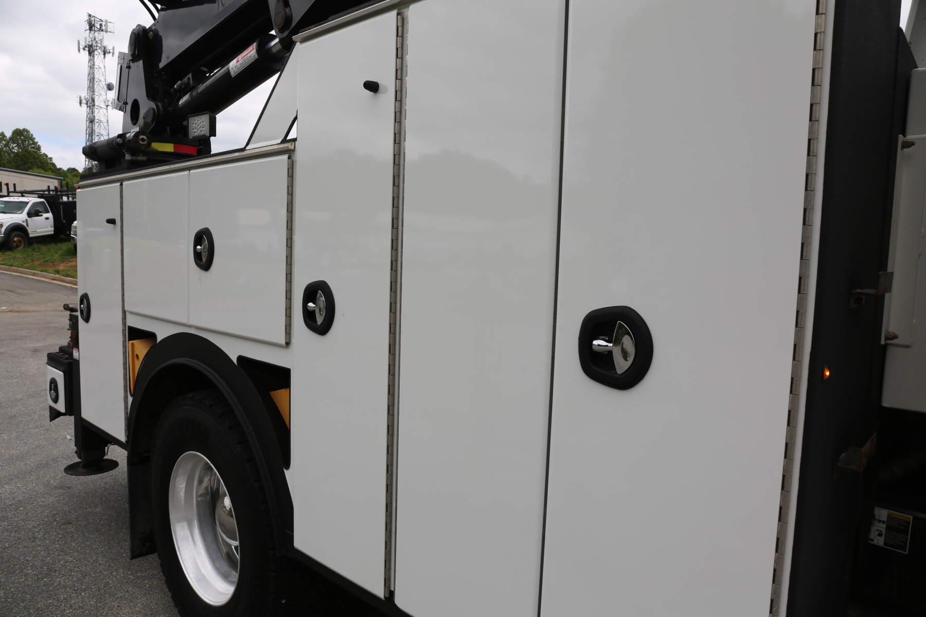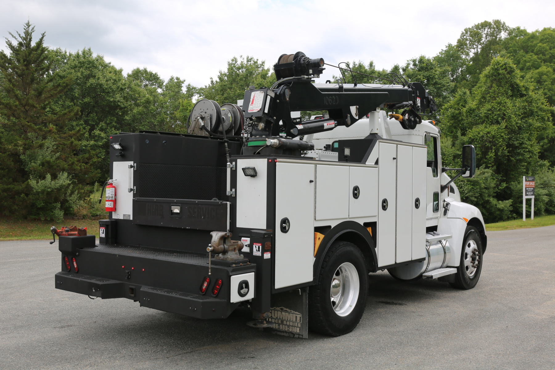Equipped with a same model year 11′ Summit service body, a 10620 series Summit crane and factory wireless remote, a Vanair RC40 hydraulic compressor, 40g waste oil and 40g fresh oil tanks and reels, hydraulic outriggers, and one set of drawers. Very well equipped truck.