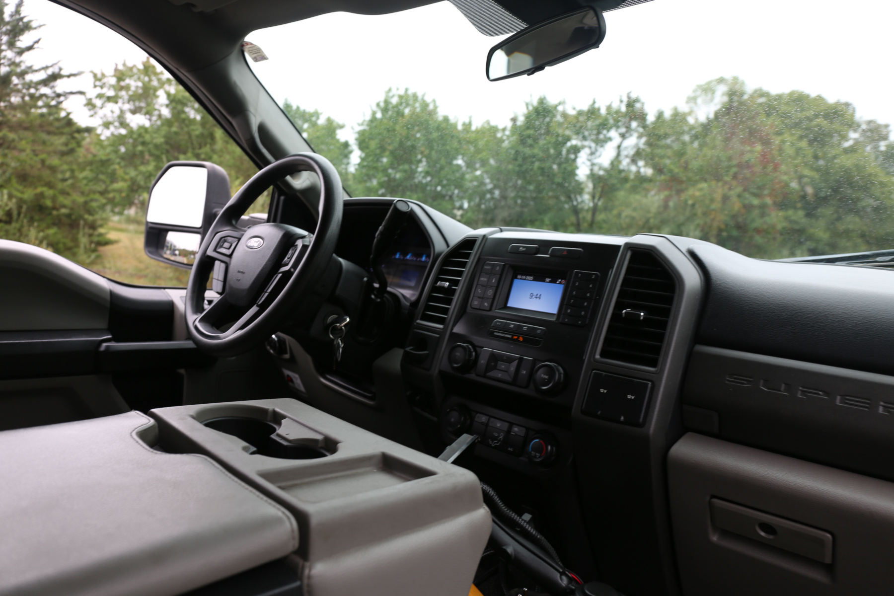 The interior is clean and free of any rips or tears. Vinyl seats and rubber flooring. Power locks, power windows, and cruise control. Factory exhaust brake.