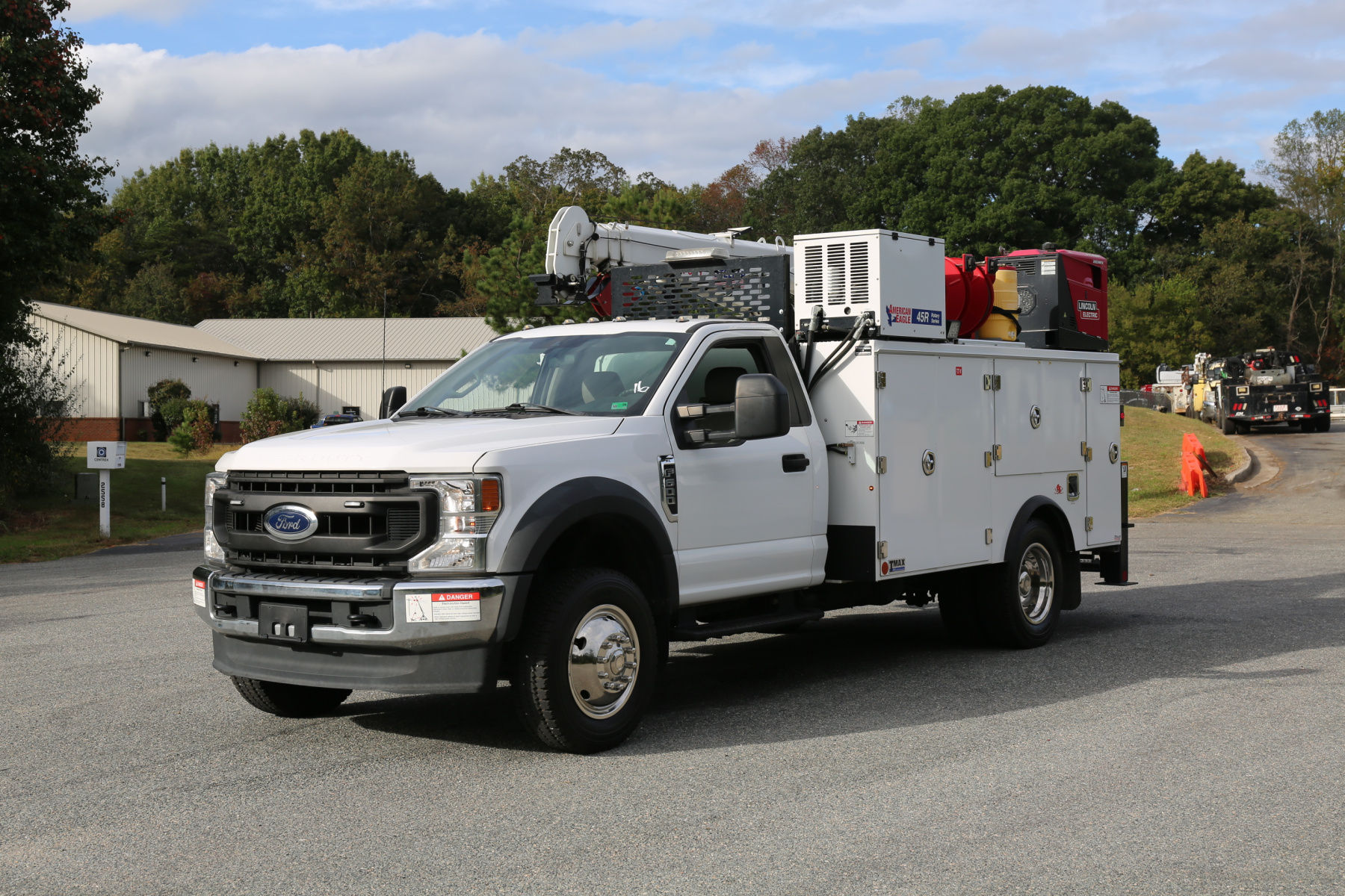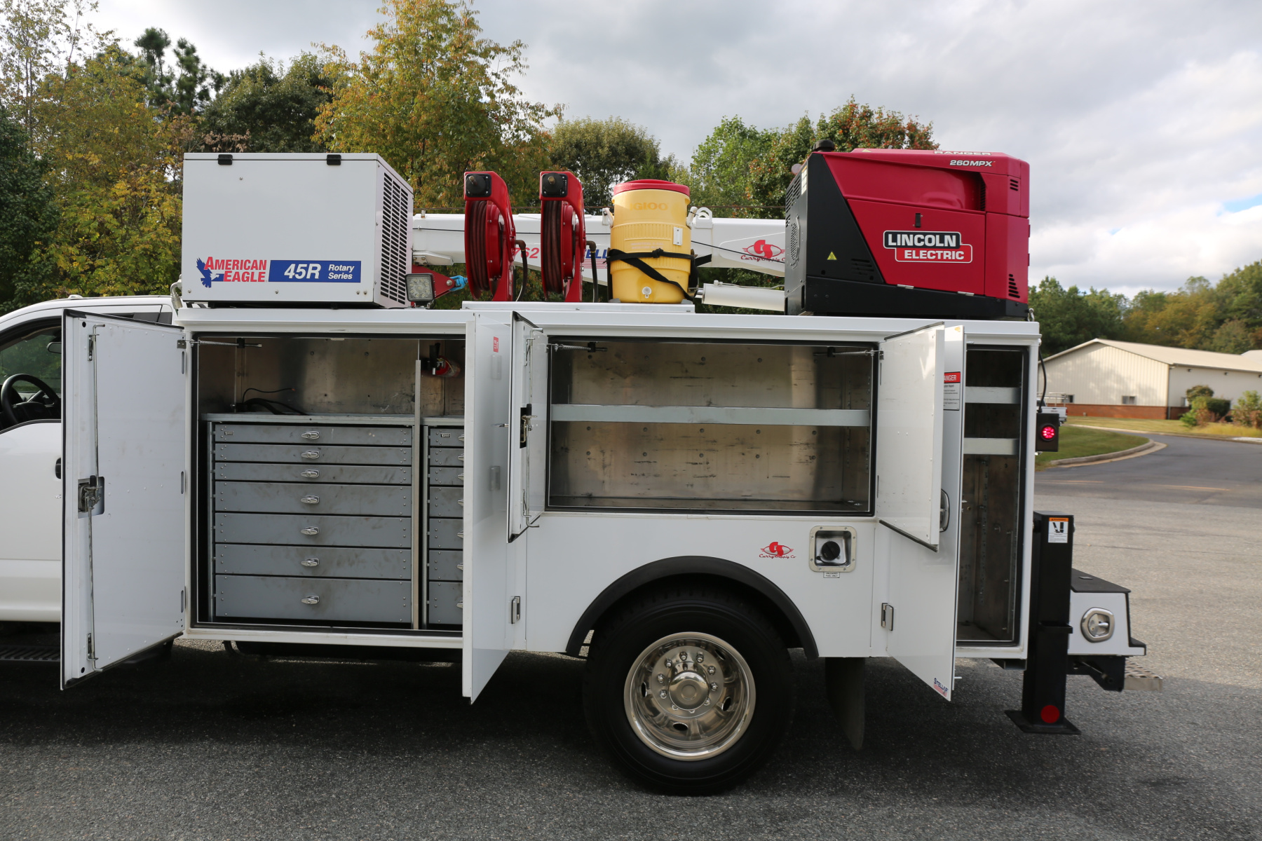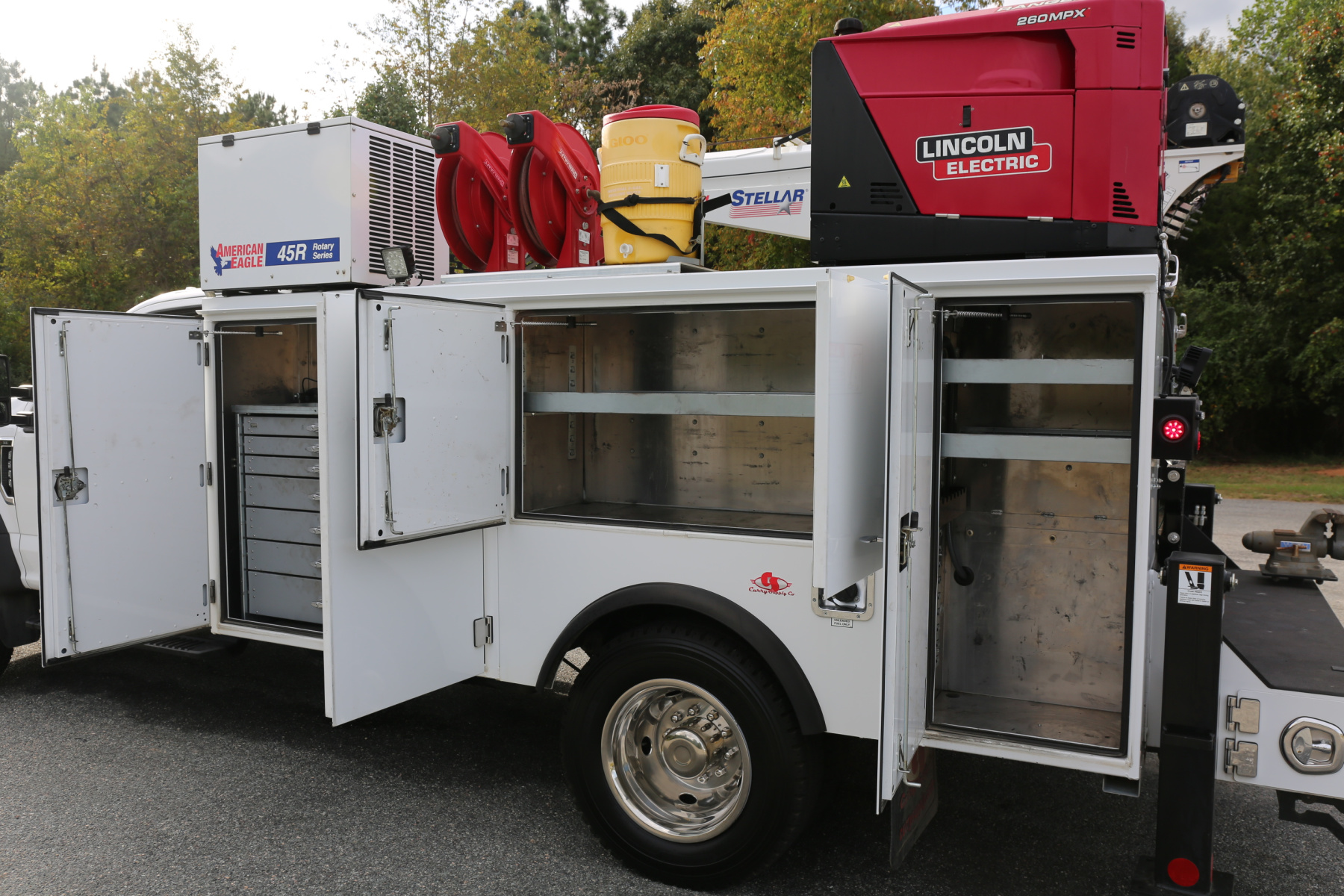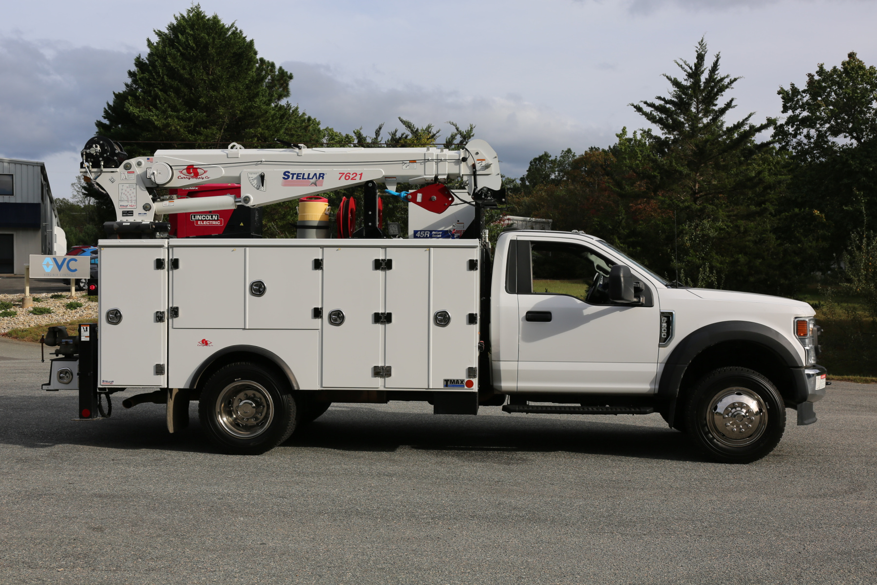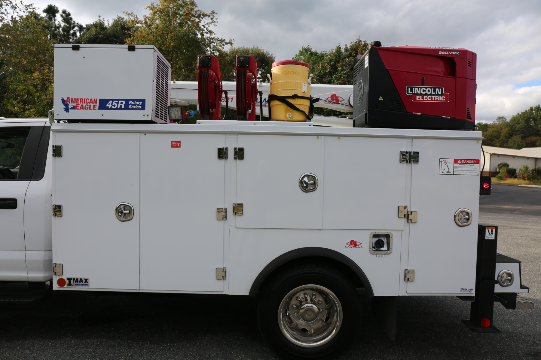 11′ Stellar TMAX Aluminum service bed, with a 7621 crane, 45R hydraulic compressor, and three sets of drawers. Interior compartment lighting throughout. Side and rear mounted LED floodlights. Everything works as it should, truck is turnkey and ready to go.