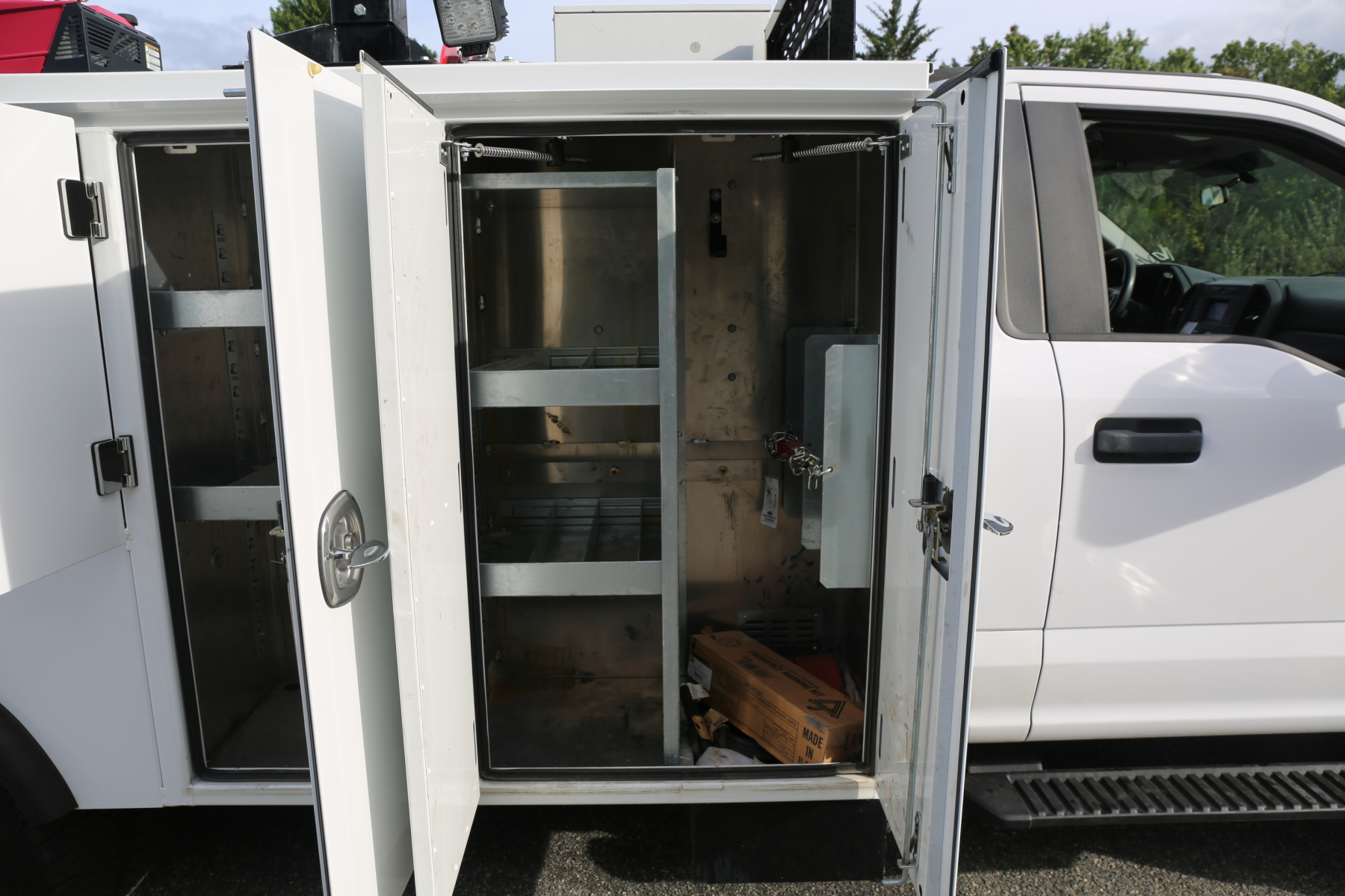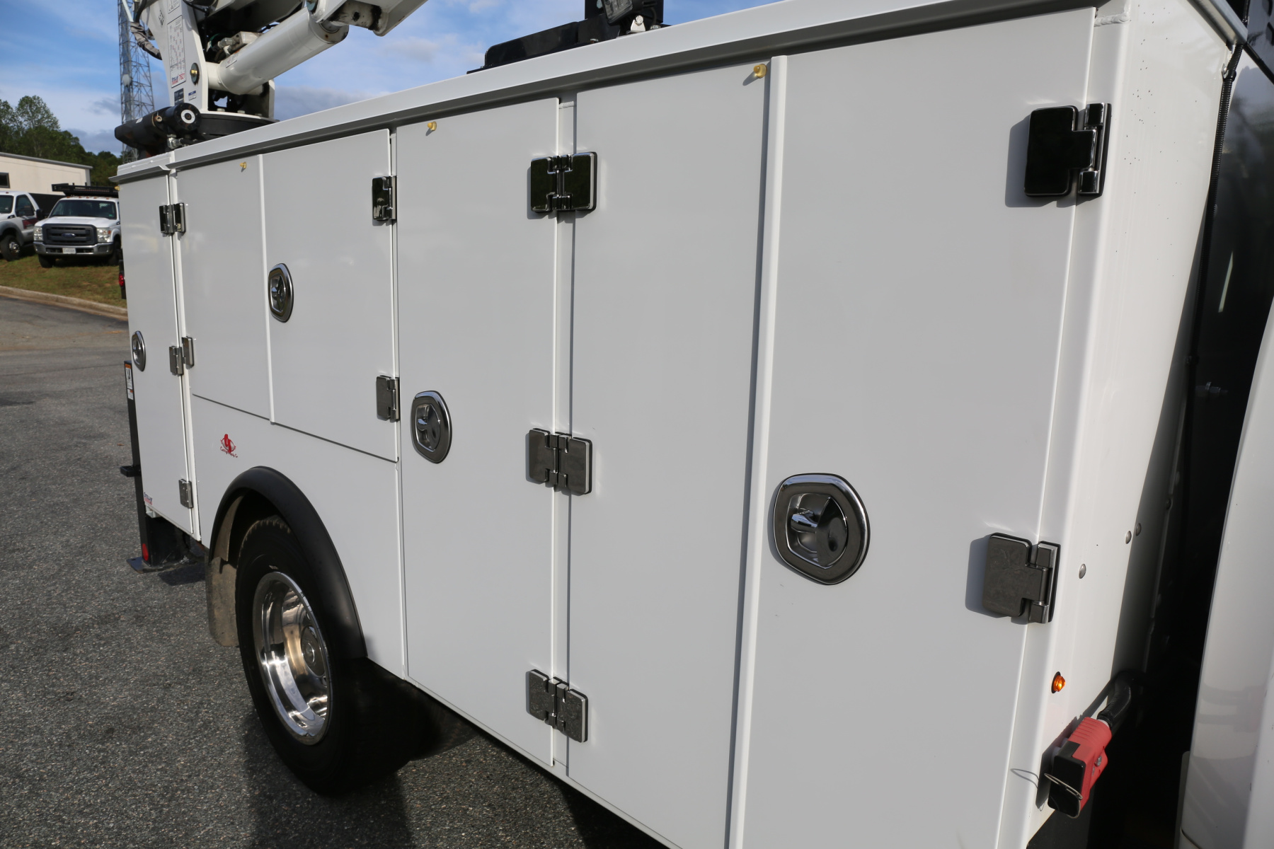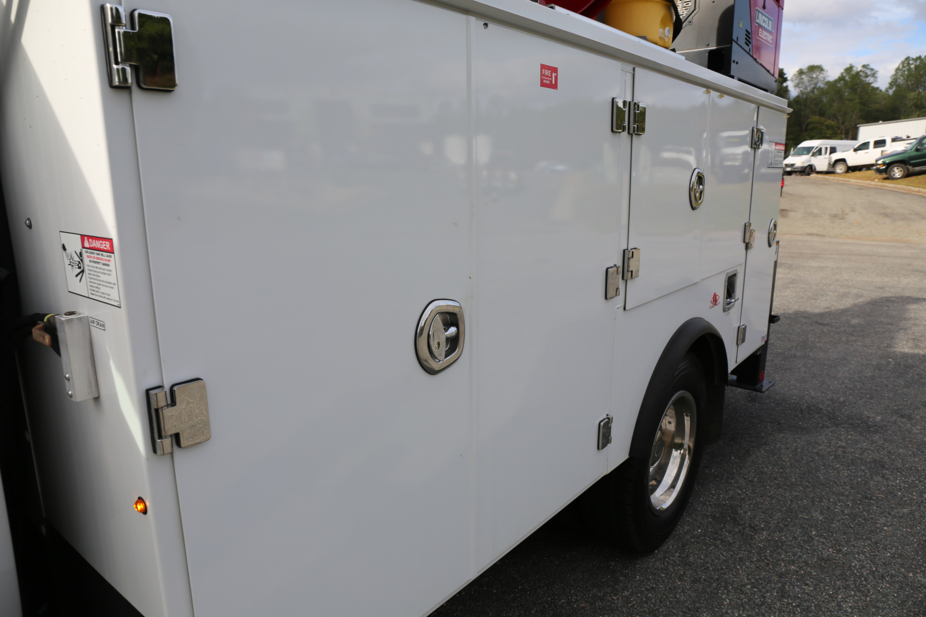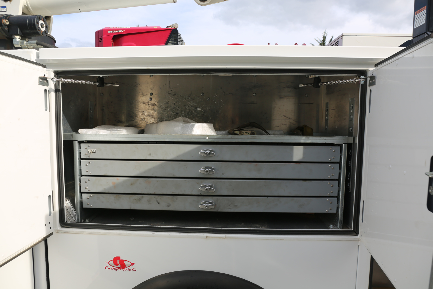 The bed is dated 8/2021. Cab high bins down both sides. Aluminum bed, crane compartment is steel. Solid with no rust, very minimal wear, few if any rock chips and no scratches or dents. All doors close, latch, and lock as they should. All latches keyed the same.