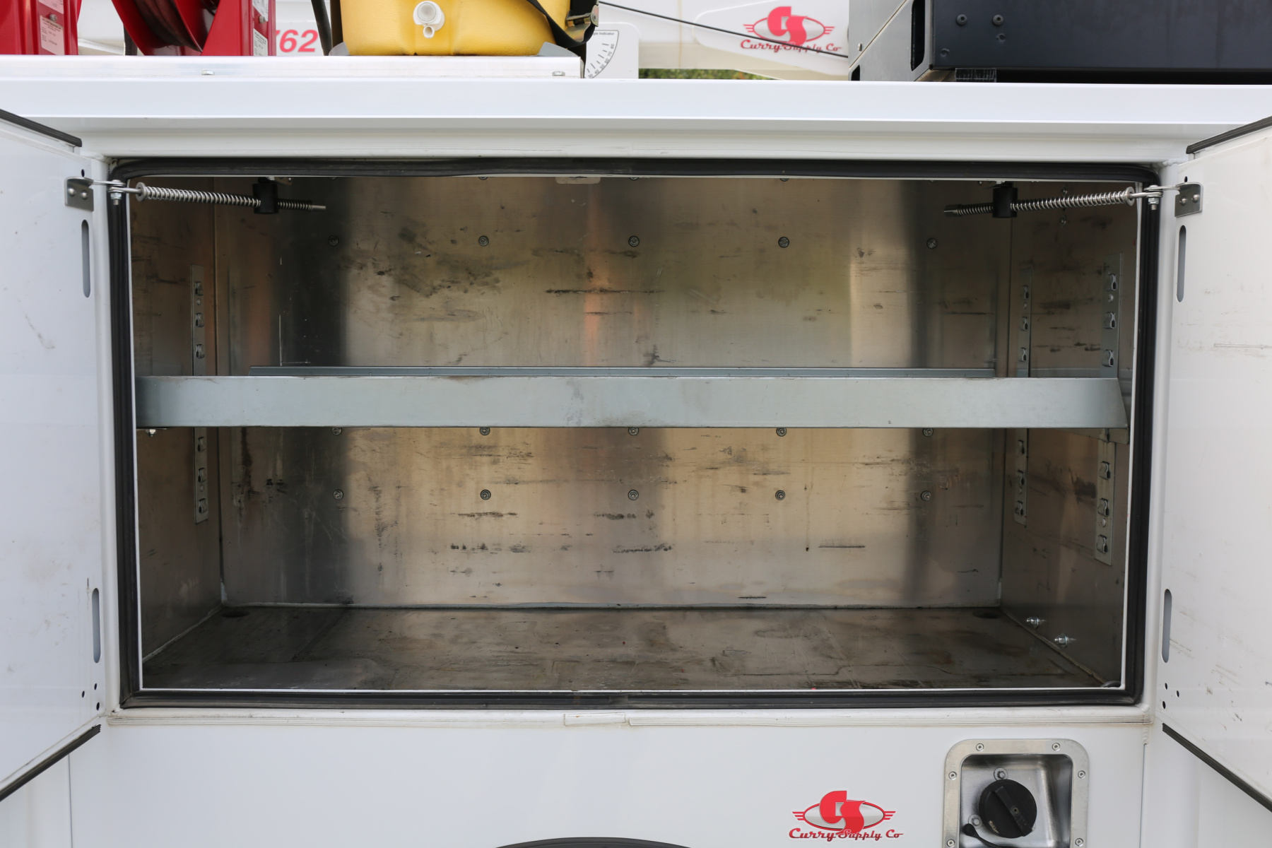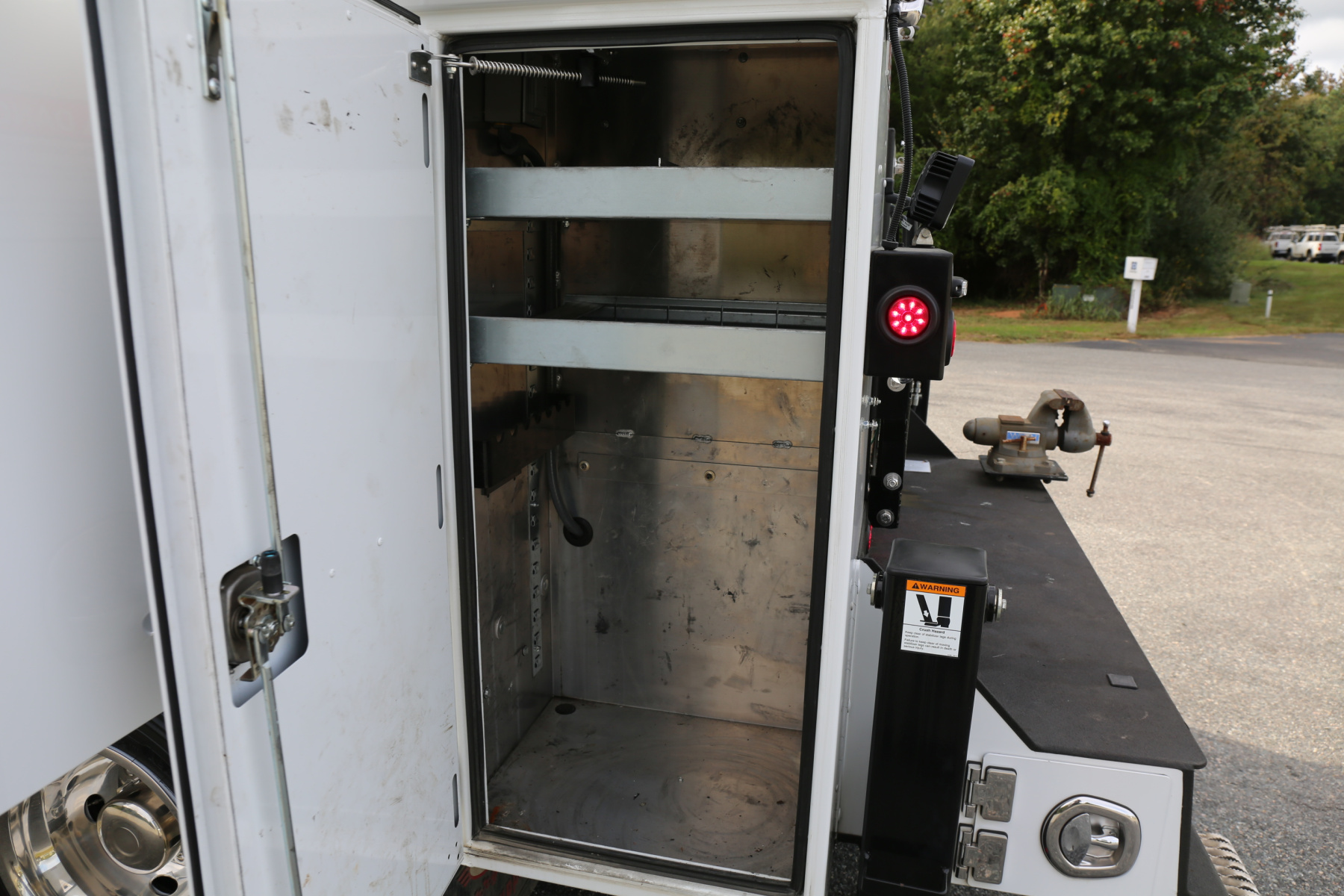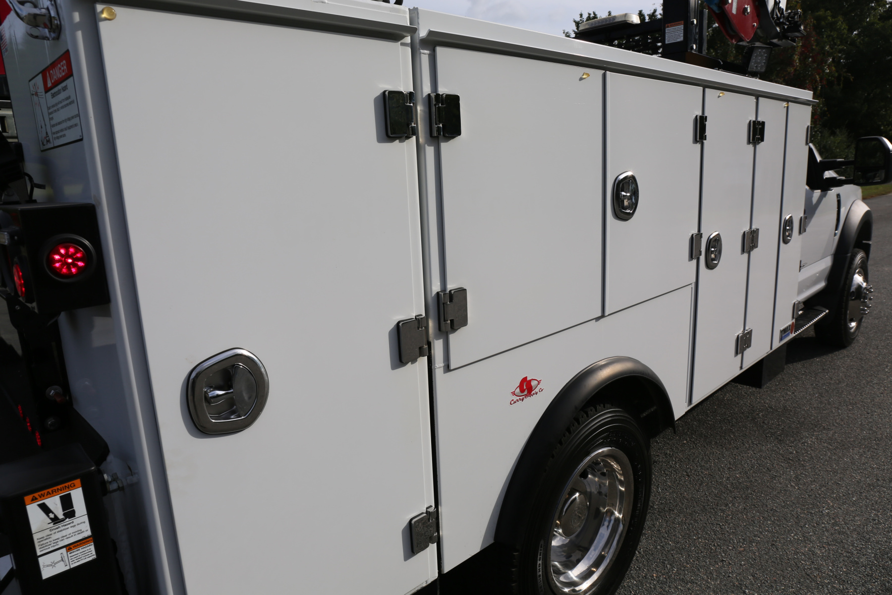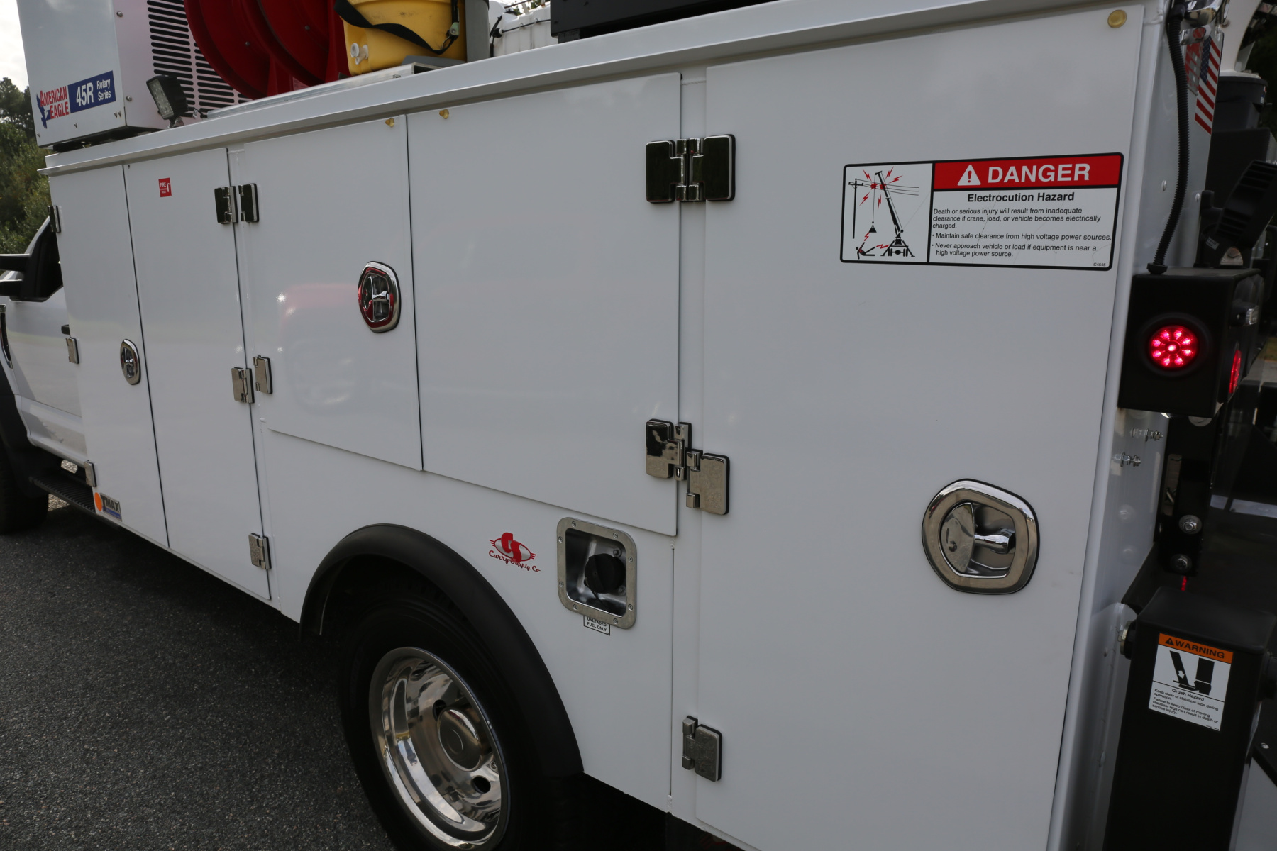 The bed is dated 8/2021. Cab high bins down both sides. Aluminum bed, crane compartment is steel. Solid with no rust, very minimal wear, few if any rock chips and no scratches or dents. All doors close, latch, and lock as they should. All latches keyed the same.