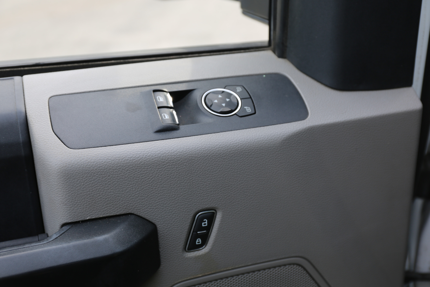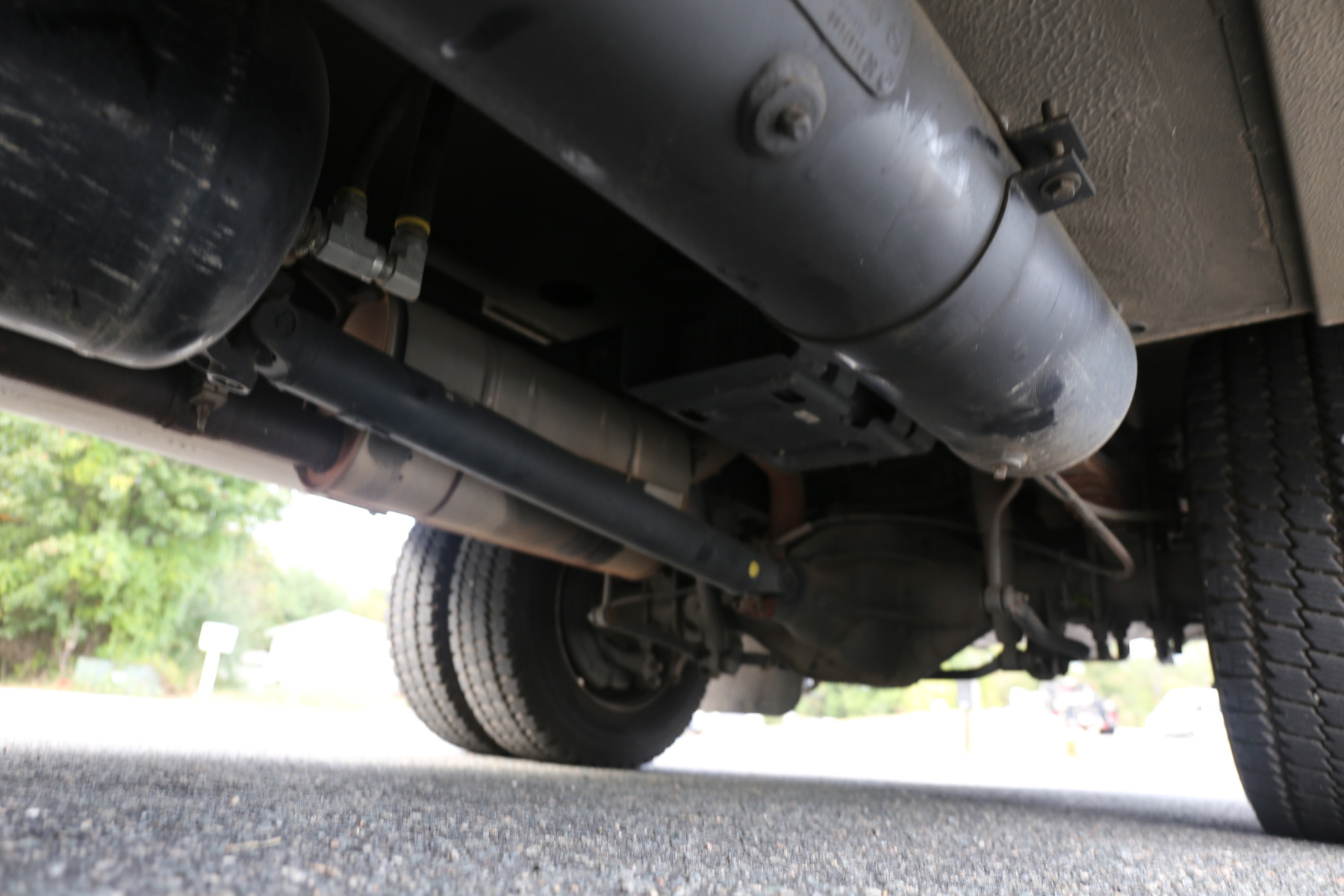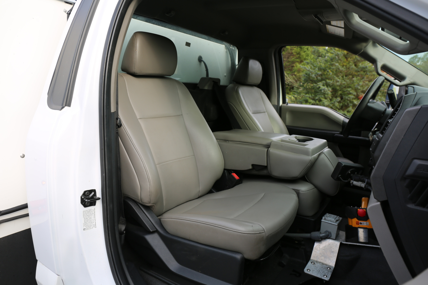 Work bench rear bumper with pass through bin storage underneath, a working Wilton Vise, master slide locks for both bedsides, and hydraulic outriggers. Tow hitch receiver, trailer wiring, and a working rearview camera. E track inside of the bed, factory tie down rings in the floor. One fold up step on the bumper.