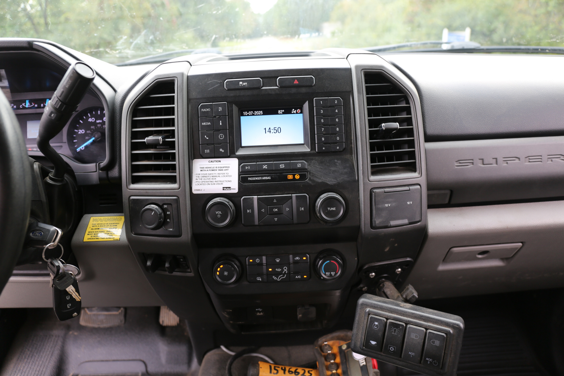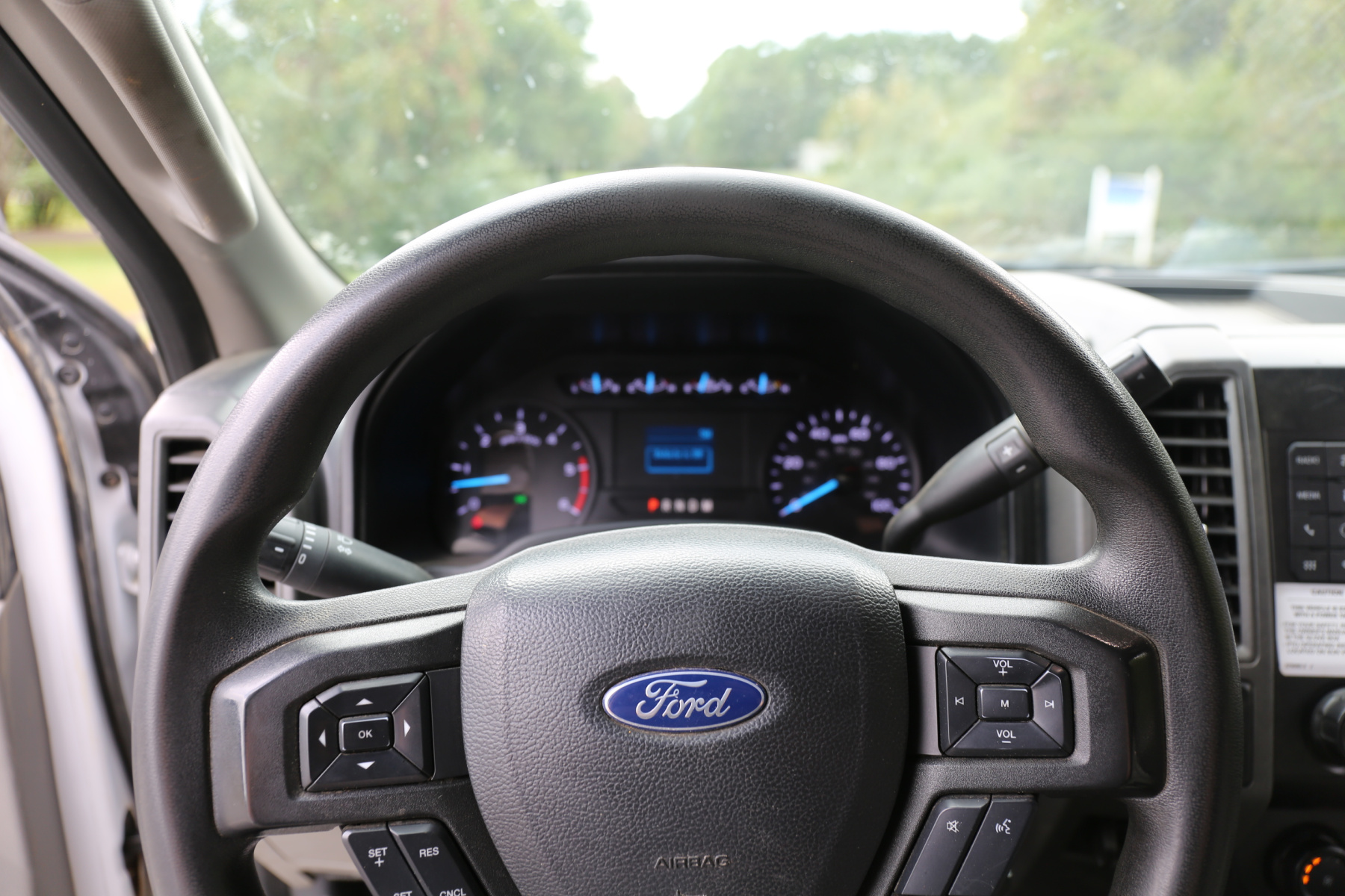 Power locks, power windows, and cruise control. XL work truck trim, vinyl seats and rubber floors – interior is clean and free of any rips or tears. Rearview camera in the dash.