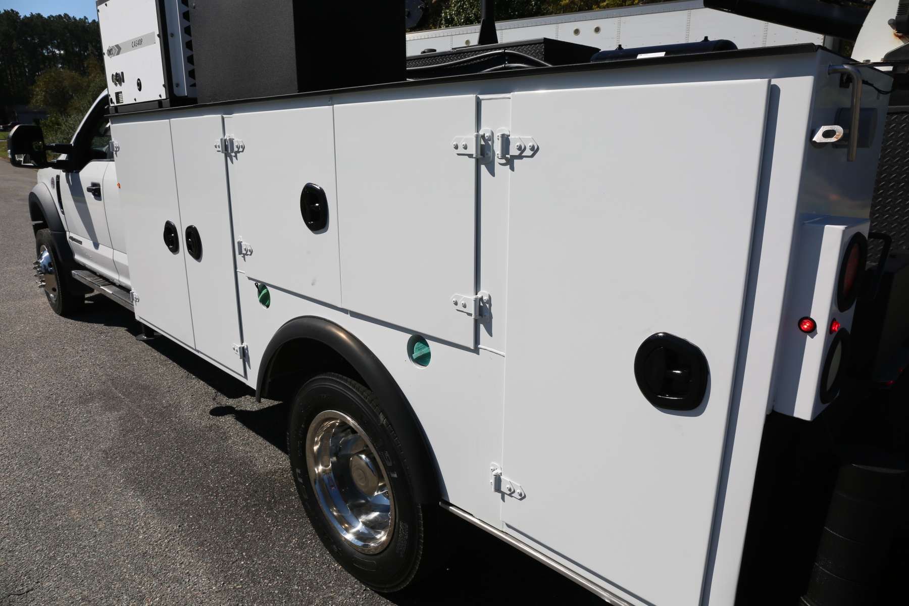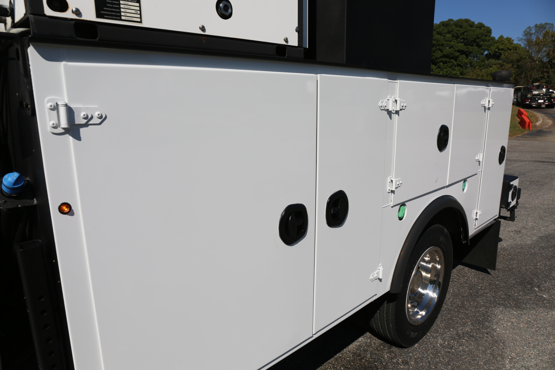 The bed is a 2016 model and came to us from Texas – sandblasted and repainted, with new bedliner applied to the bumper and inside of the bed. No rust in the bed, all bin floors are solid, all doors close, latch, lock, and seal as they should.