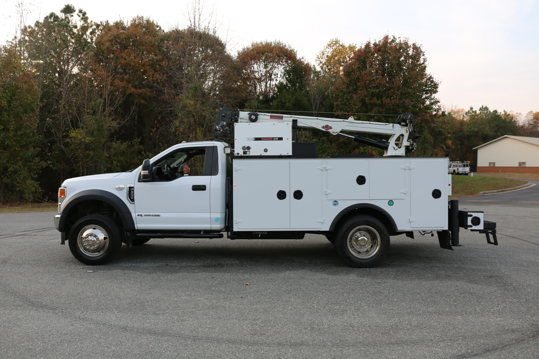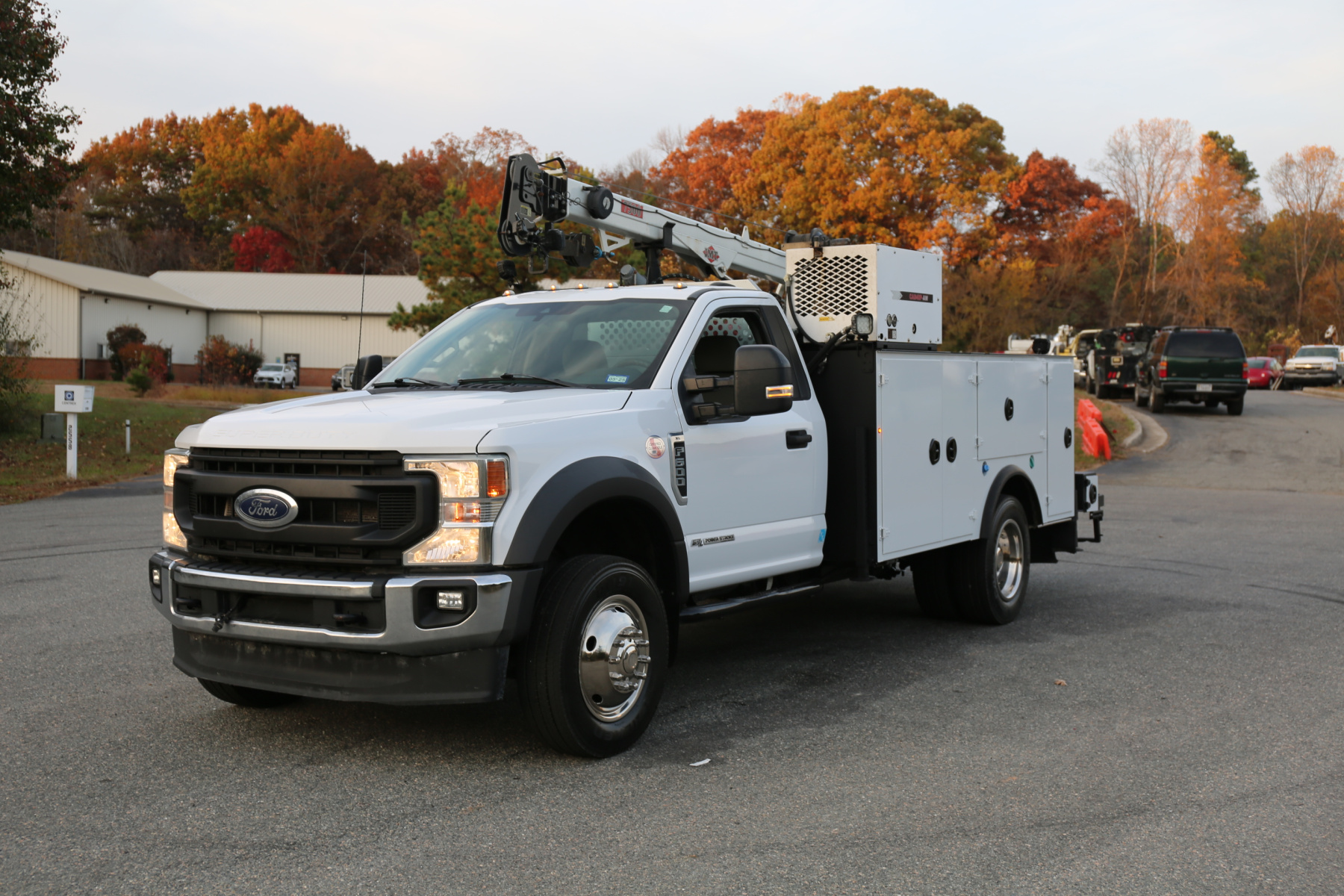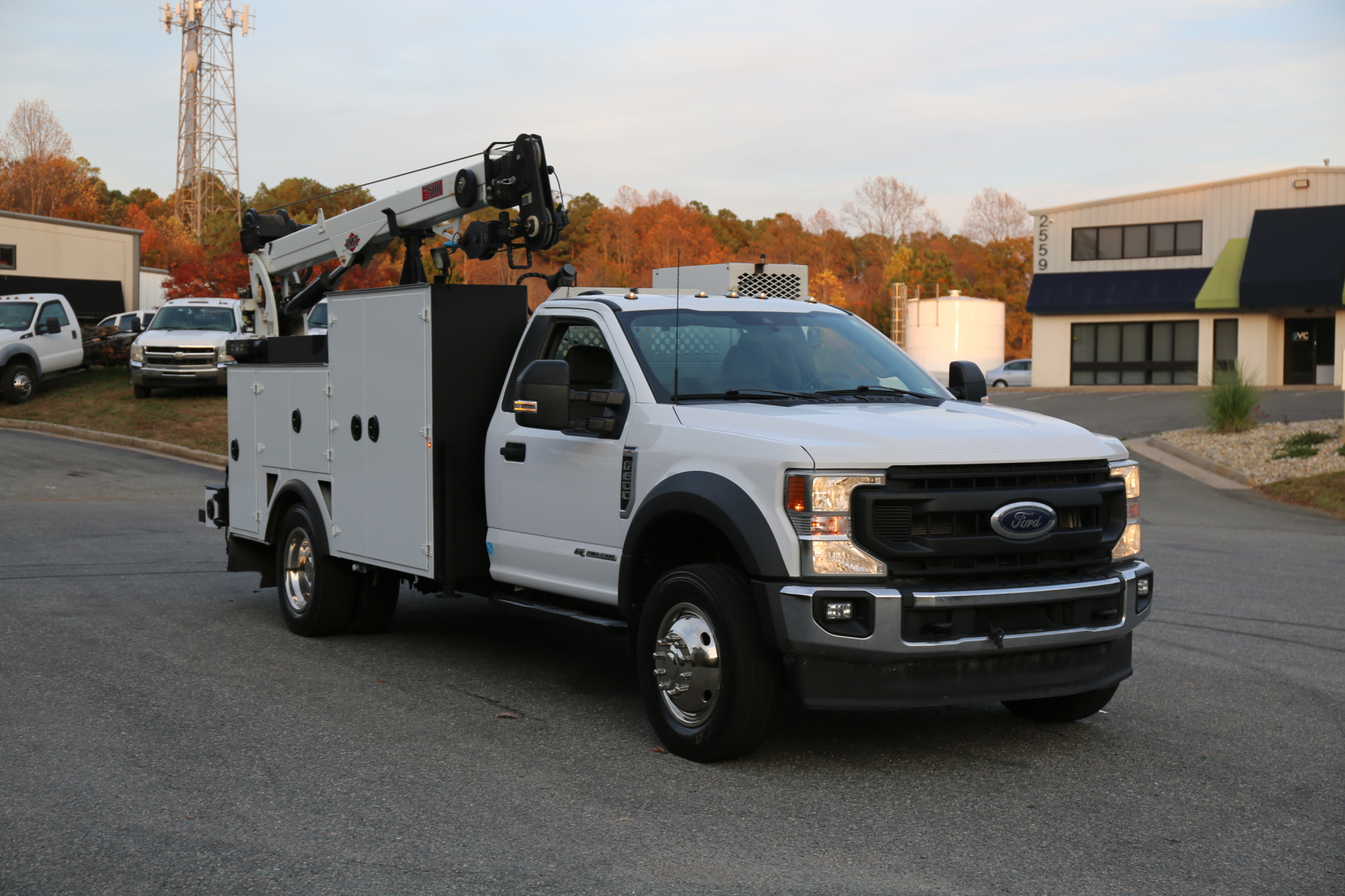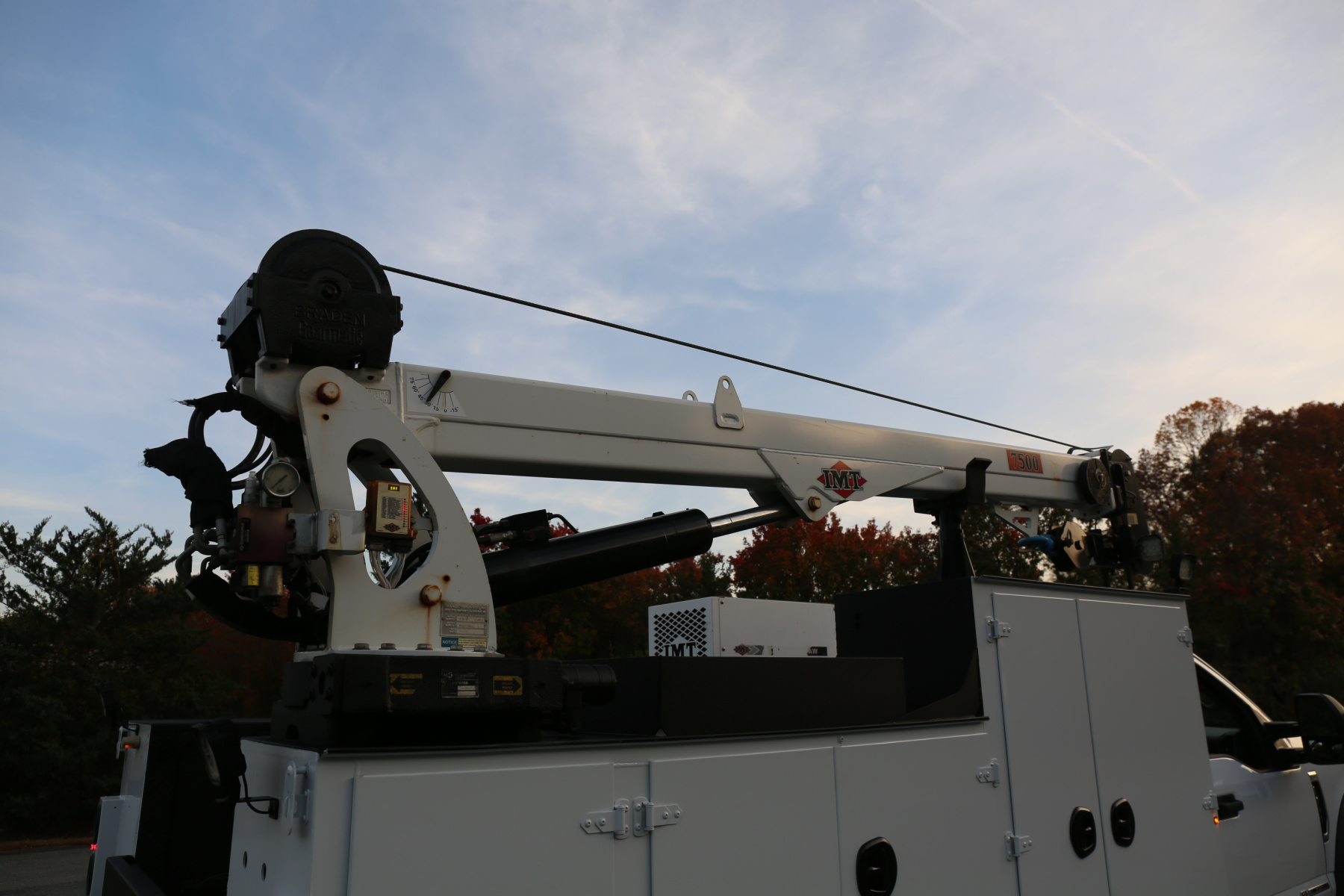 Thanks for taking the time to check out this 1 owner 2022 Ford F600 service truck, coming to us out of Texas. Rust free, with a 2017 model IMT Dominator service body, 7500-22 series crane, two sets of drawers, and a CAS40P hydraulic compressor. Showing 104,802 miles and 4,408 hours, powered by a 6.7 Powerstroke diesel. Automatic transmission, and four wheel drive 4×4.
