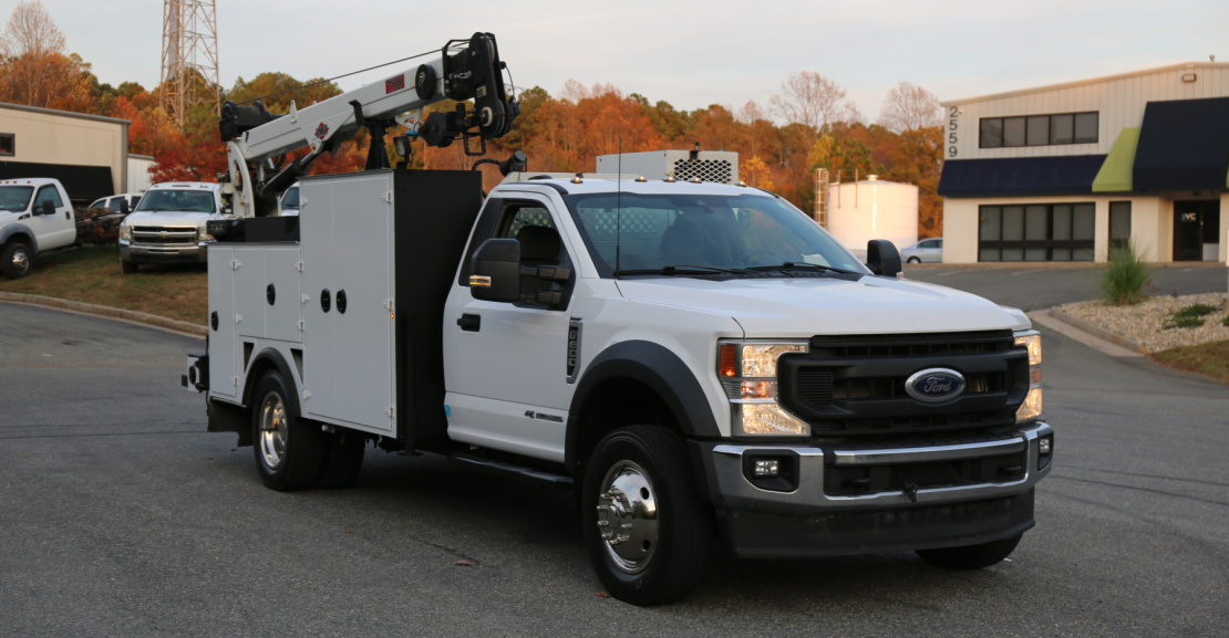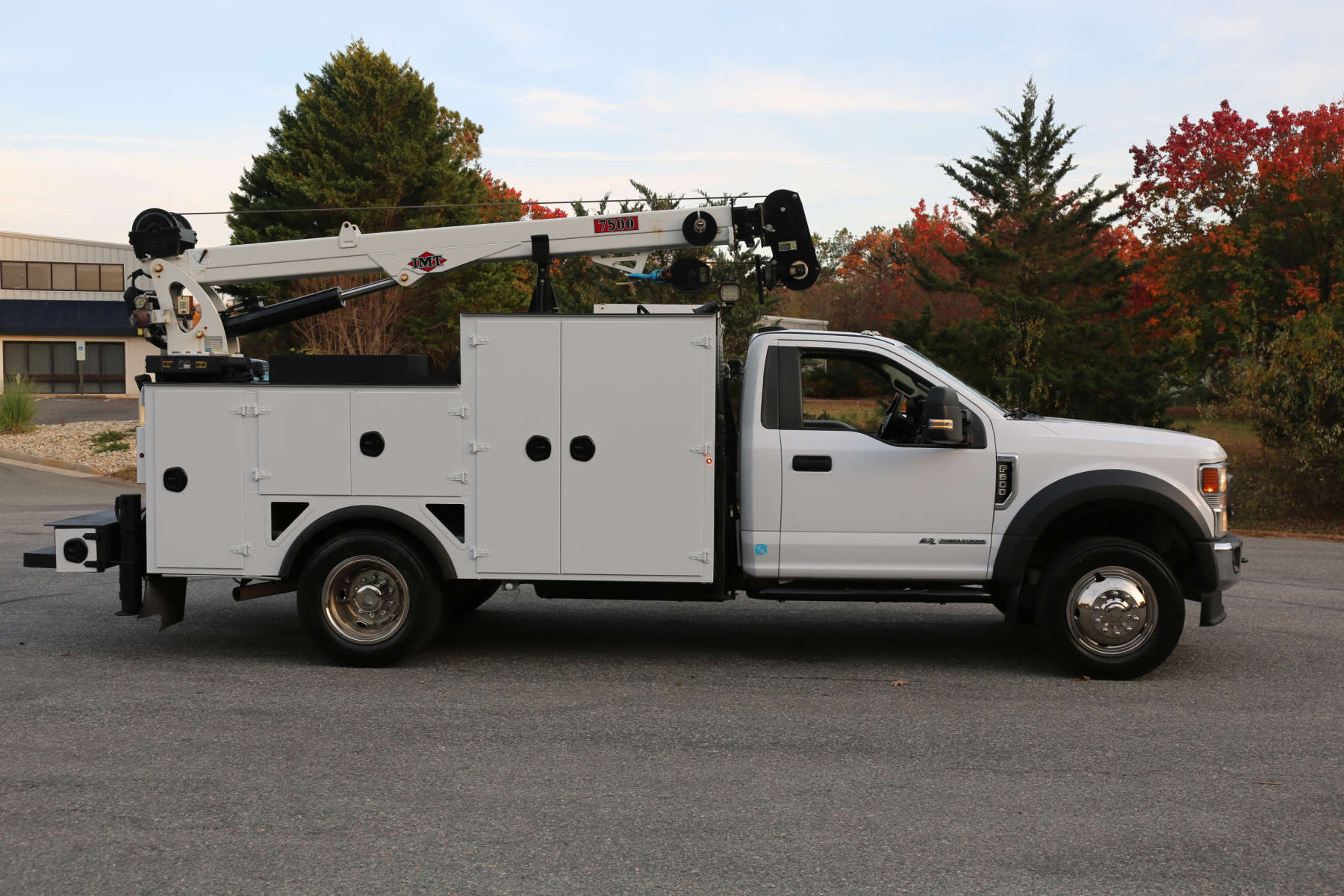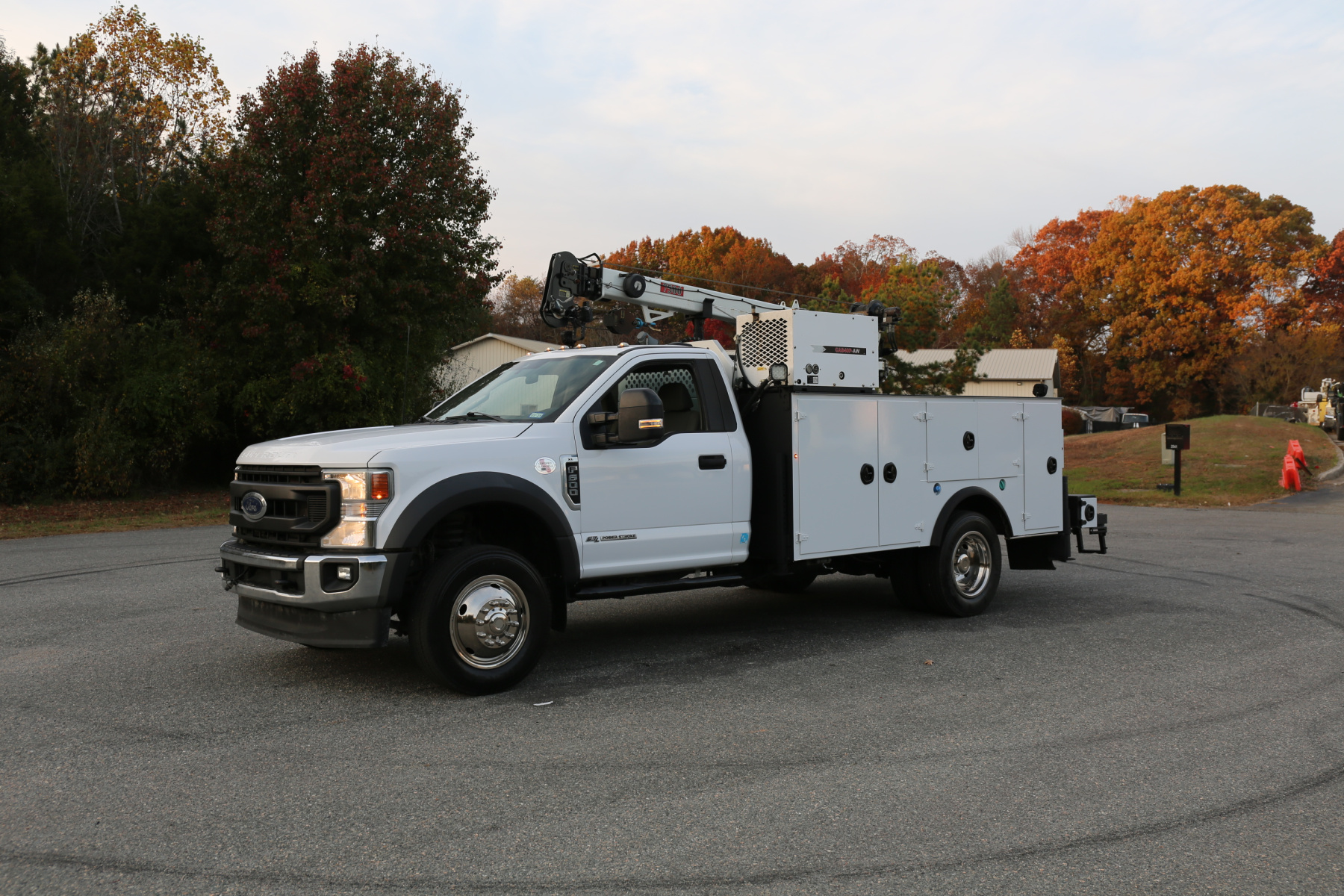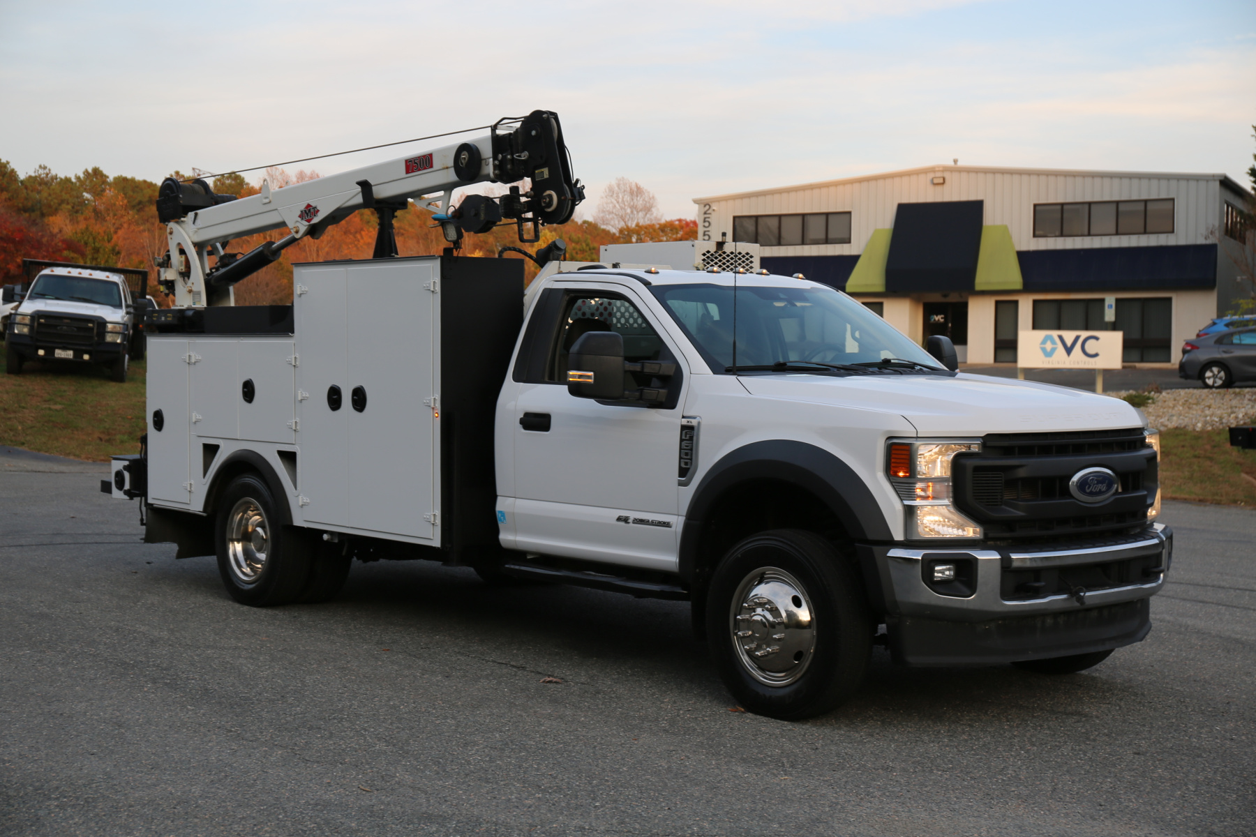 Thanks for taking the time to check out this 1 owner 2022 Ford F600 service truck, coming to us out of Texas. Rust free, with a 2017 model IMT Dominator service body, 7500-22 series crane, two sets of drawers, and a CAS40P hydraulic compressor. Showing 104,802 miles and 4,408 hours, powered by a 6.7 Powerstroke diesel. Automatic transmission, and four wheel drive 4×4.