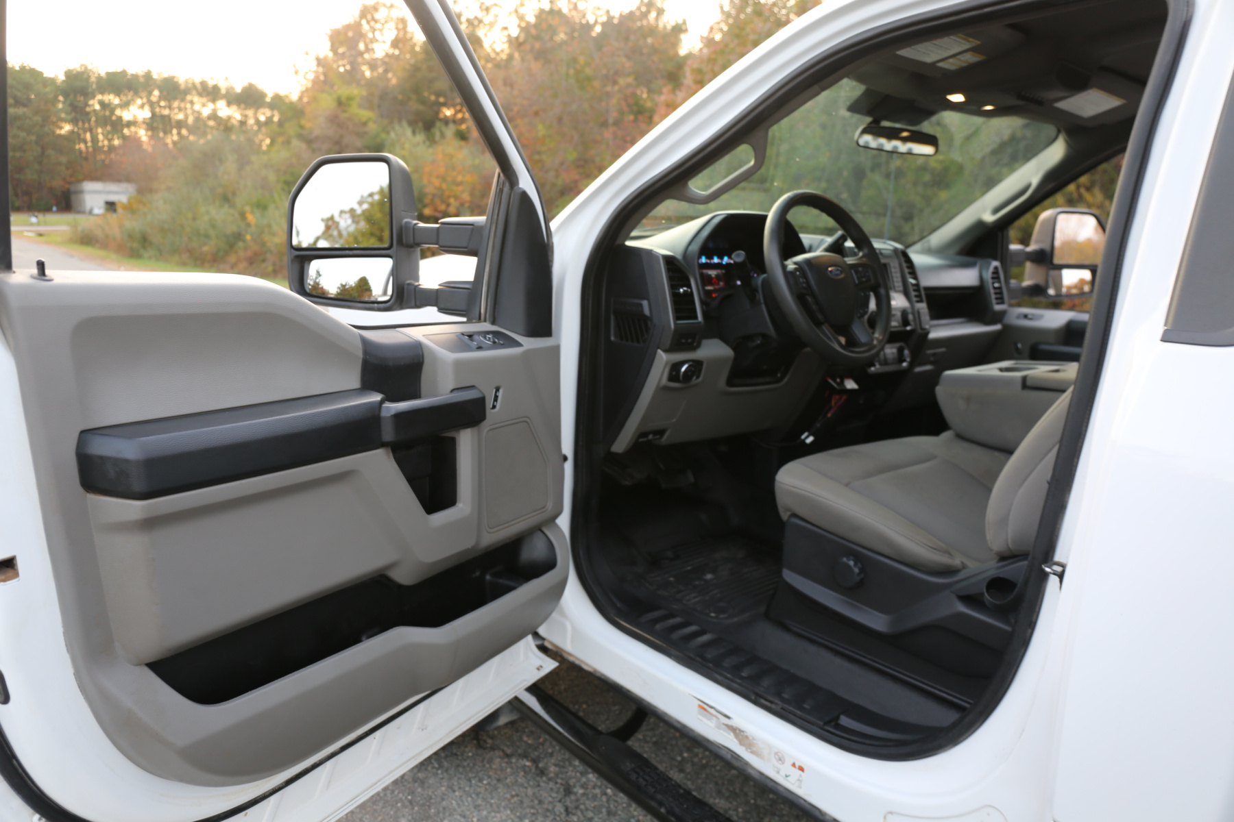 XLT trim with cloth seating and rubber floors – 22,000 GVWR. Power locks, power windows, and cruise control. Interior of the truck is clean and free of any rips or tears.