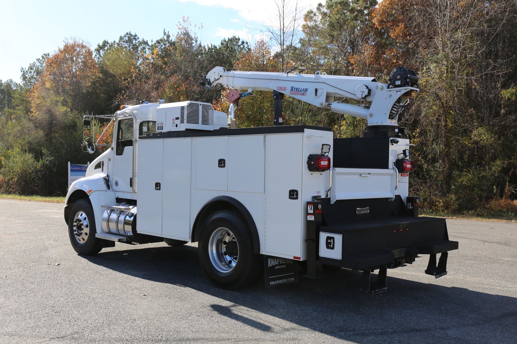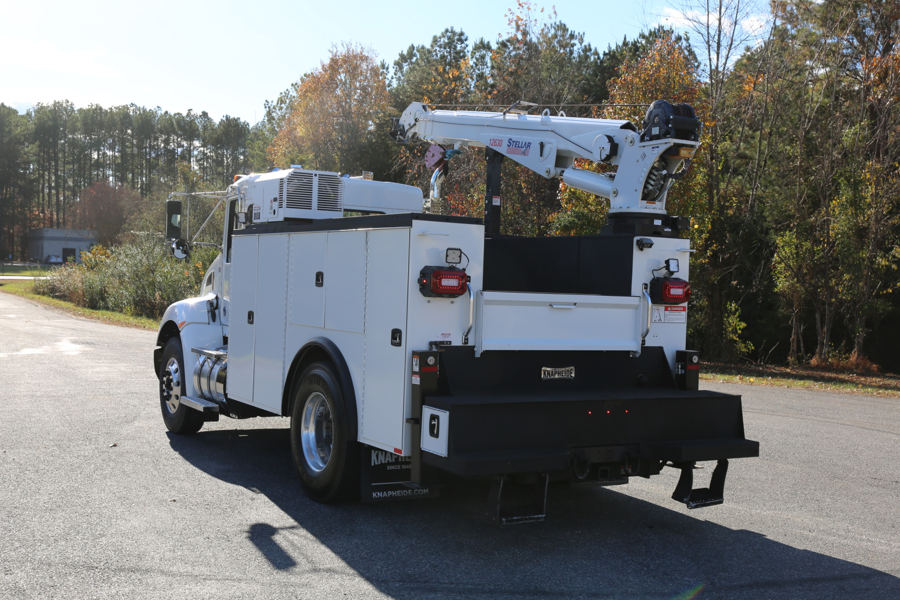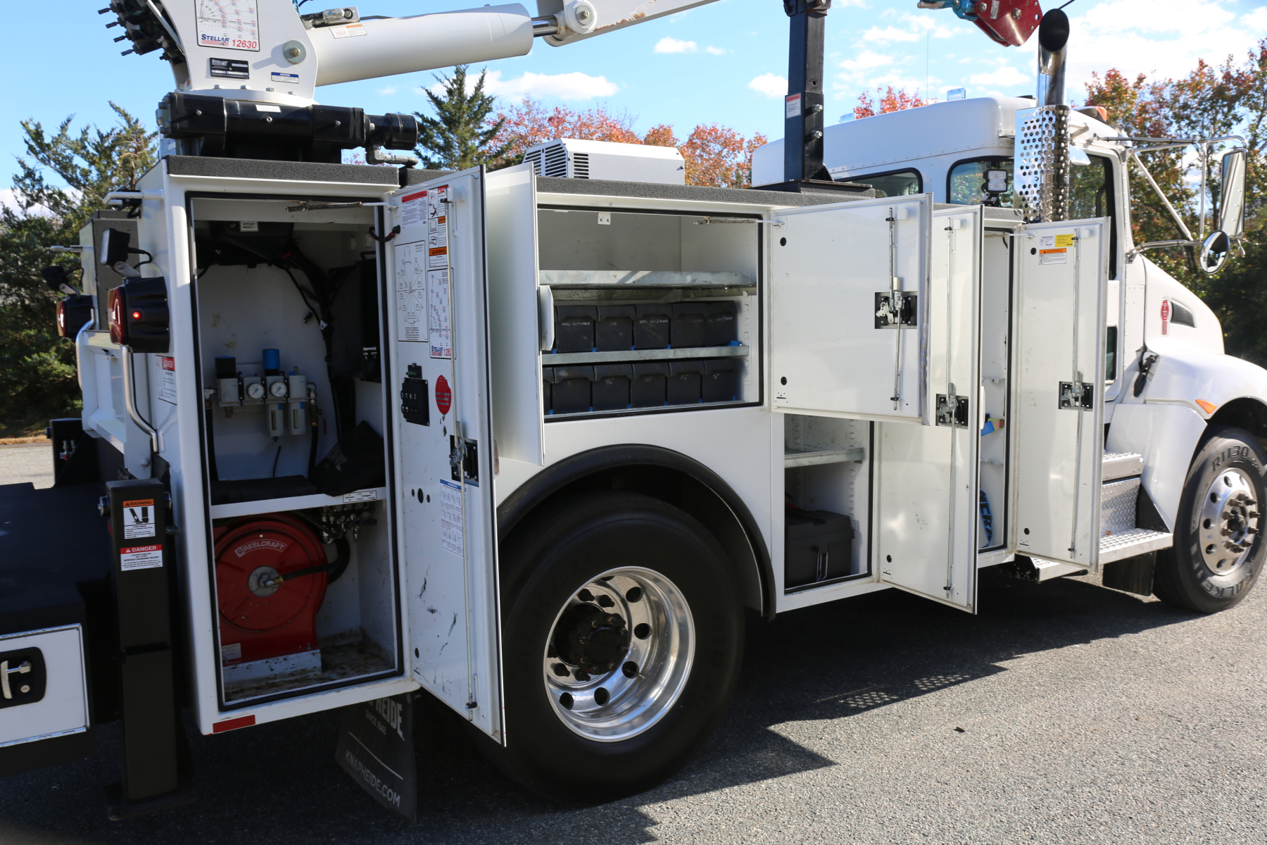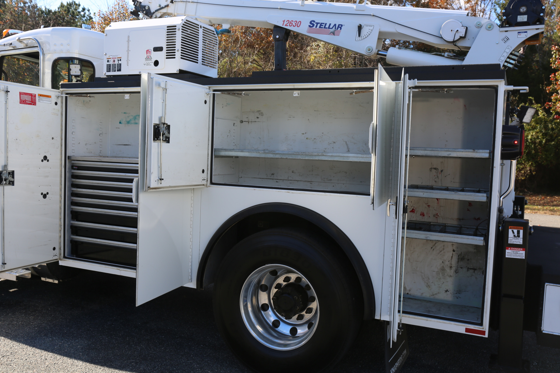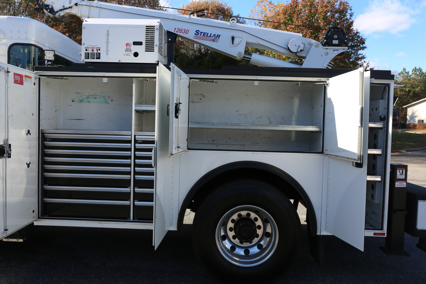 Equipped with an 11′ Knapheide mechanics body, a Stellar 12630 crane, a Boss BA440 hydraulic compressor, two sets of CTech drawers, hydraulic outriggers, and a full set of bolt drawers. All of the equipment works as it should.
