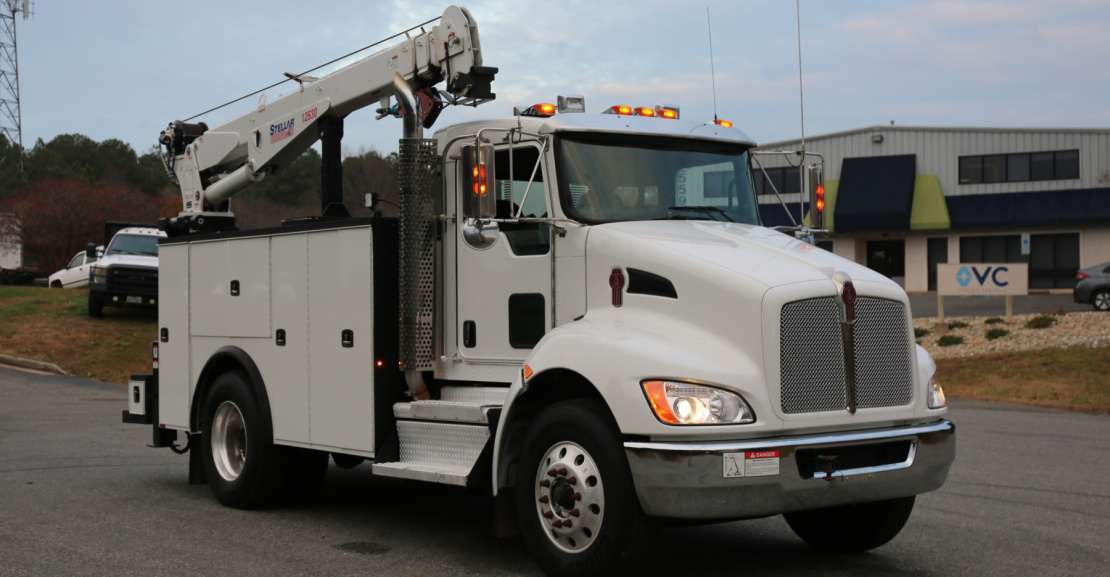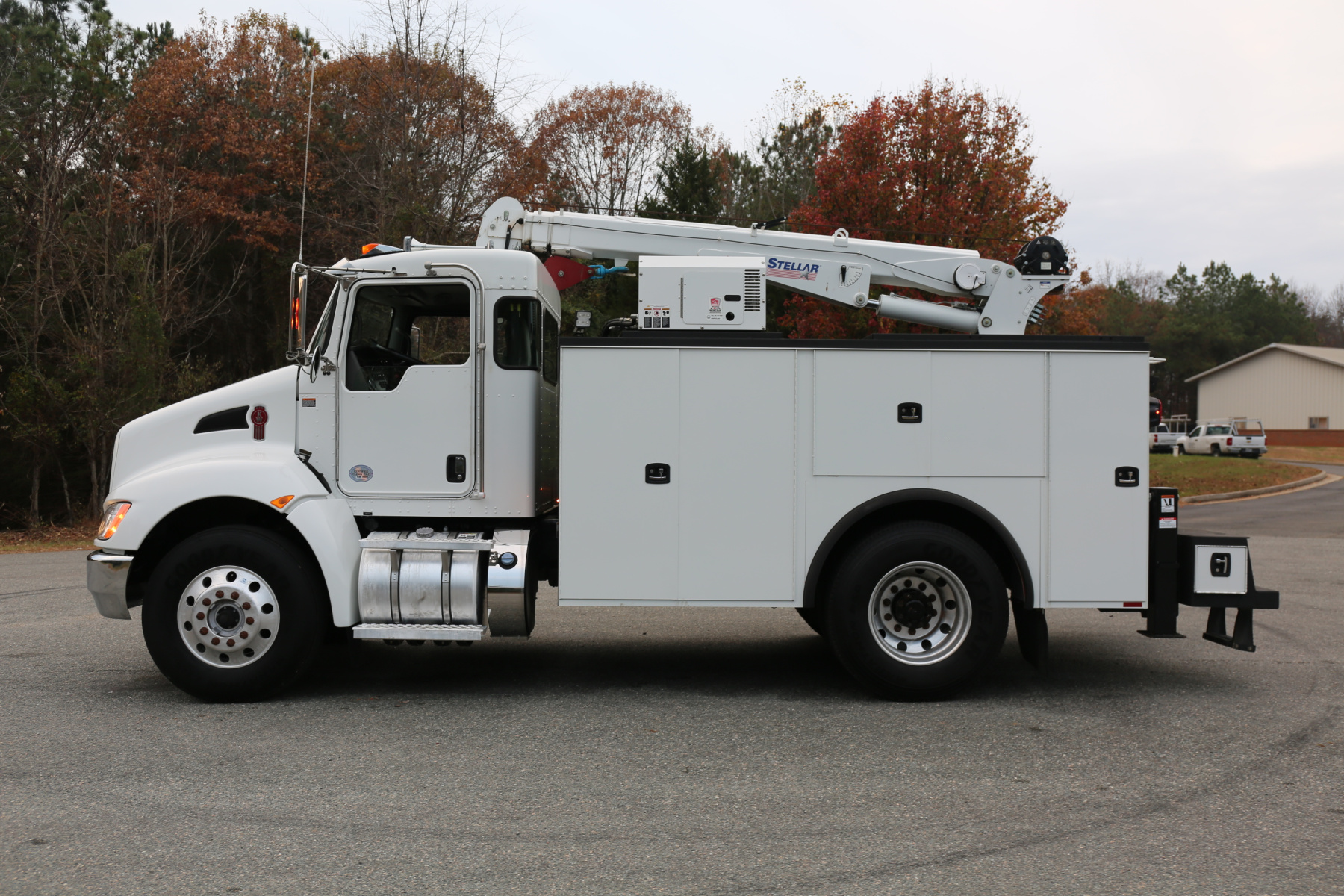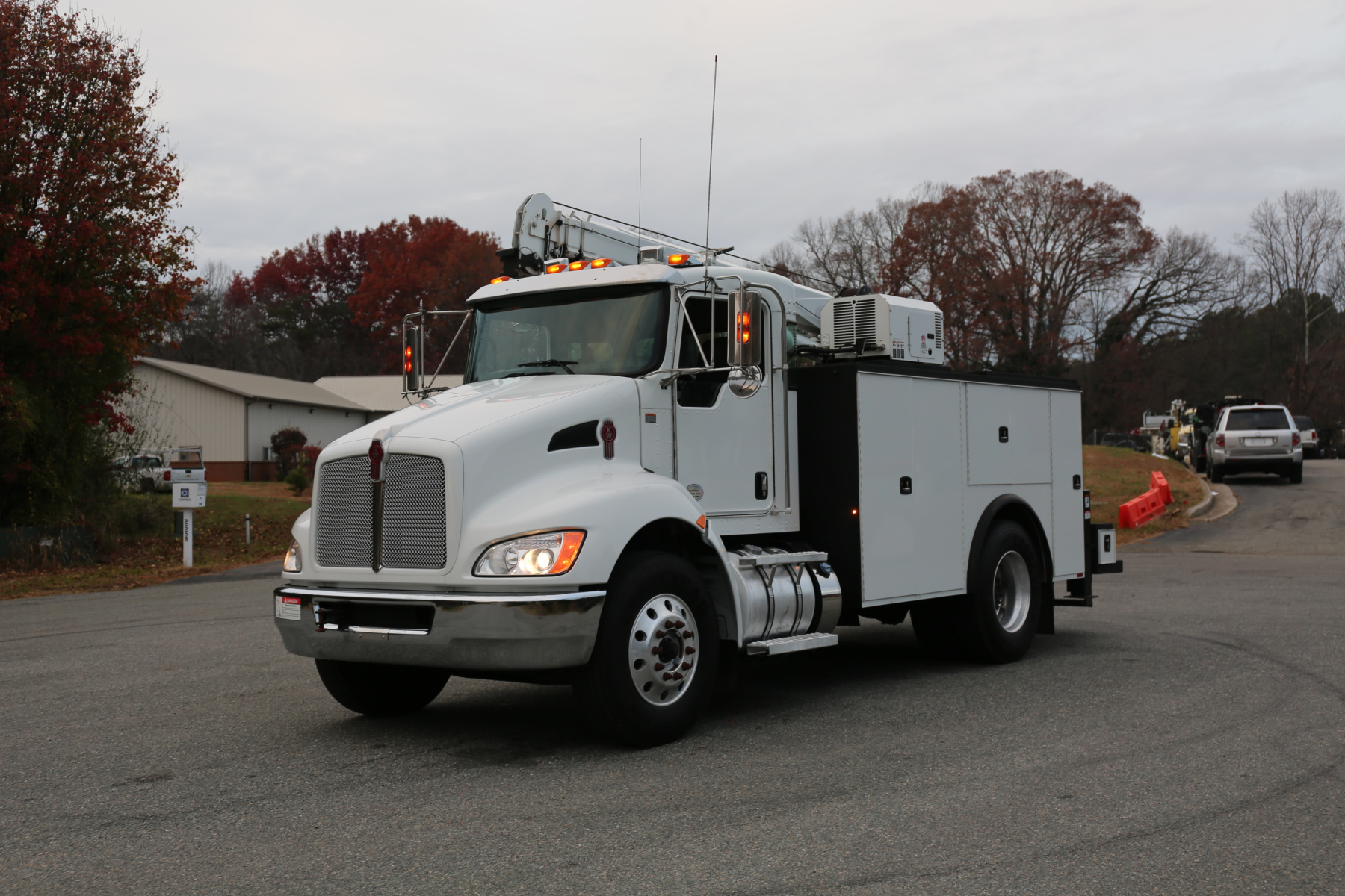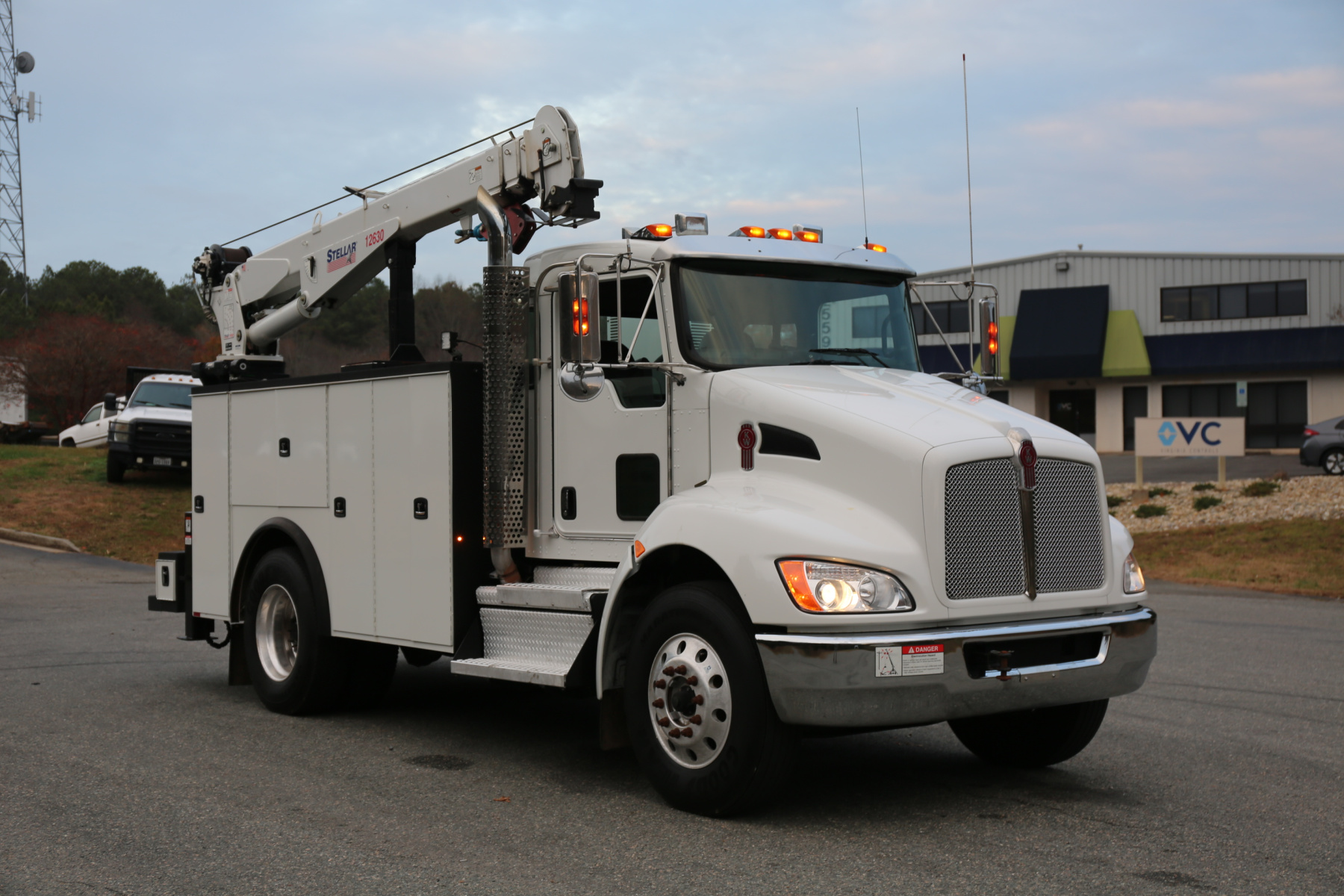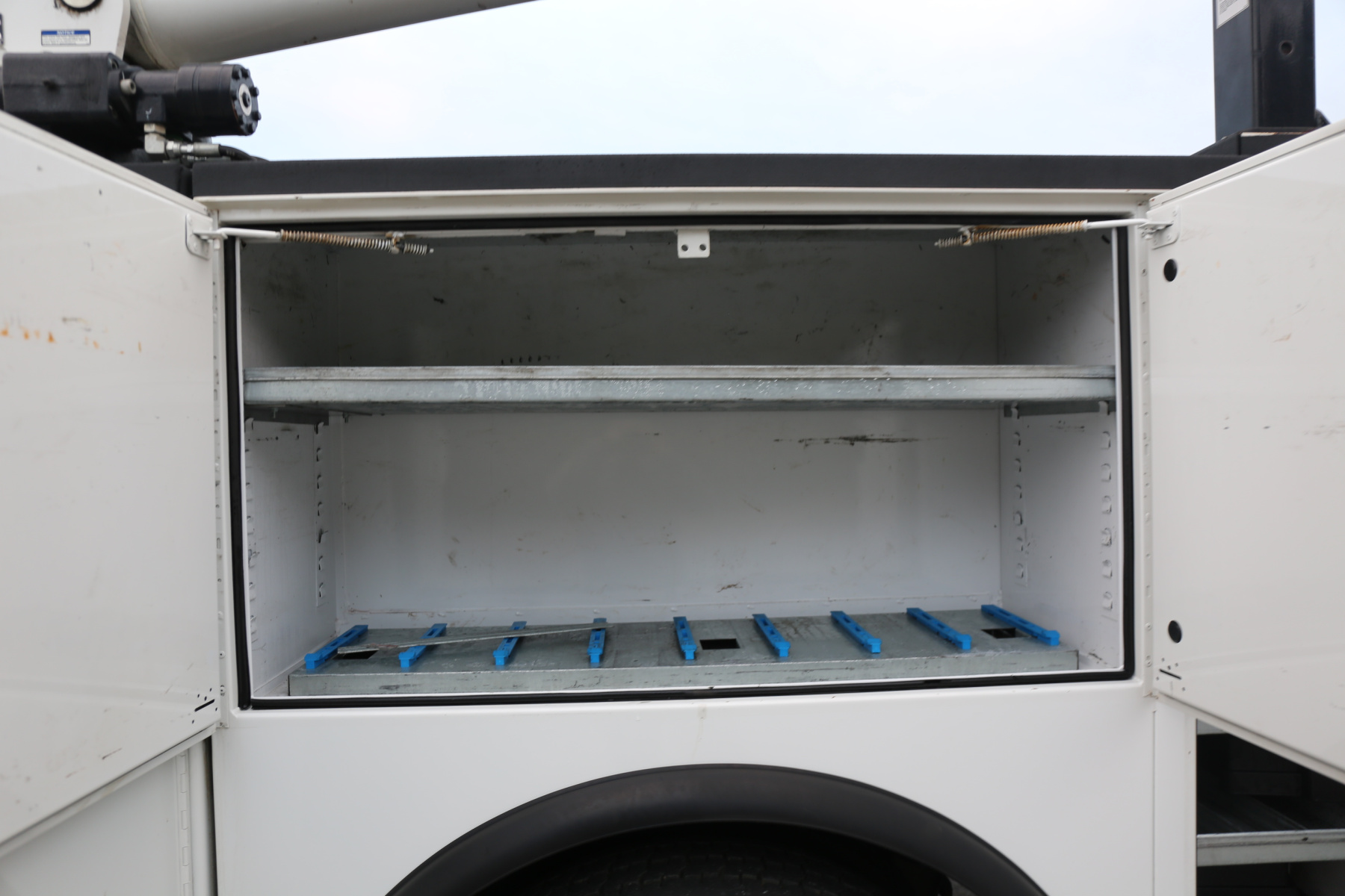 Equipped with an 11′ Knapheide service body, a Stellar 12630 crane, a Boss BA440 hydraulic compressor, hydraulic outriggers, and two sets of CTech drawers. All of the equipment works as it should.