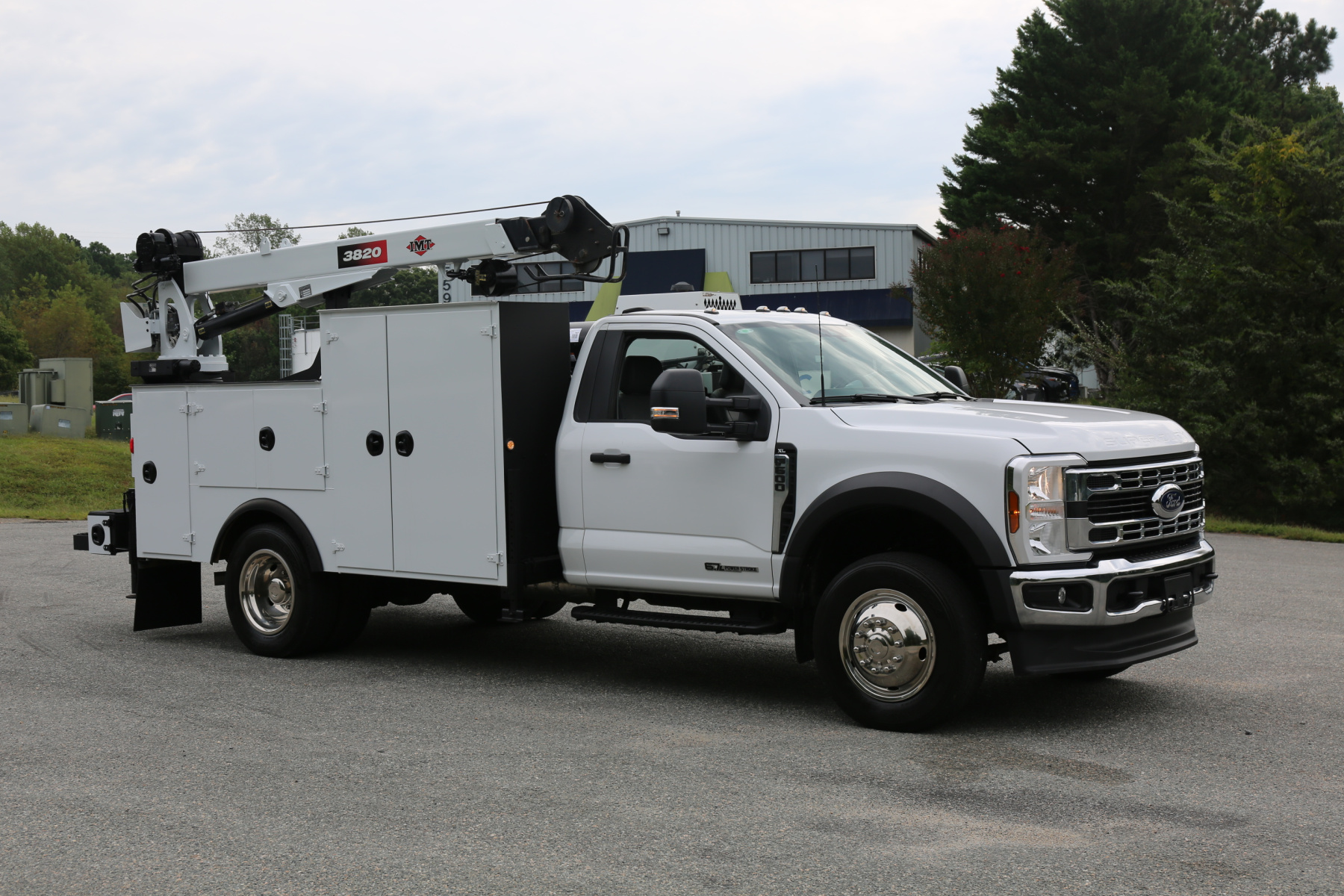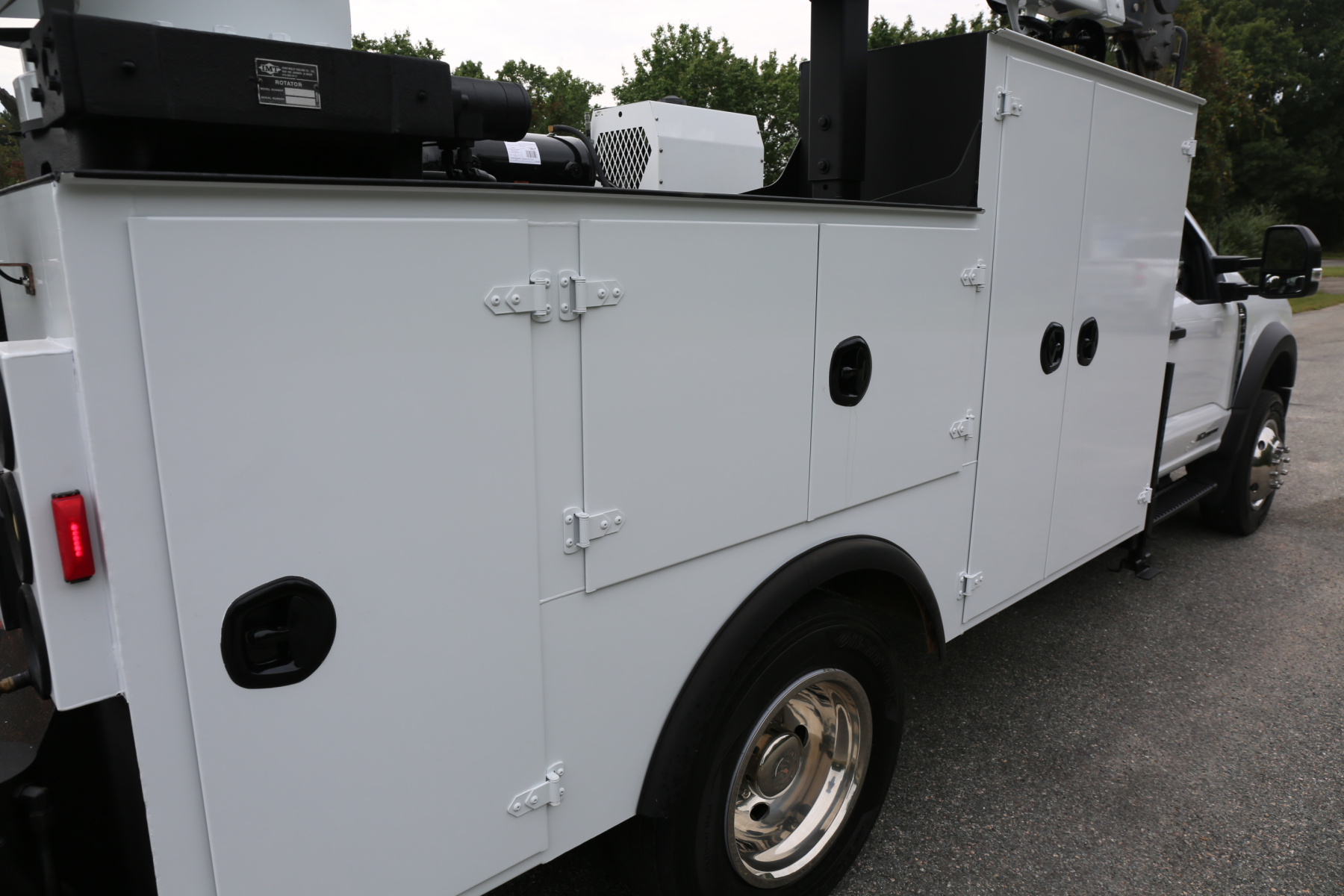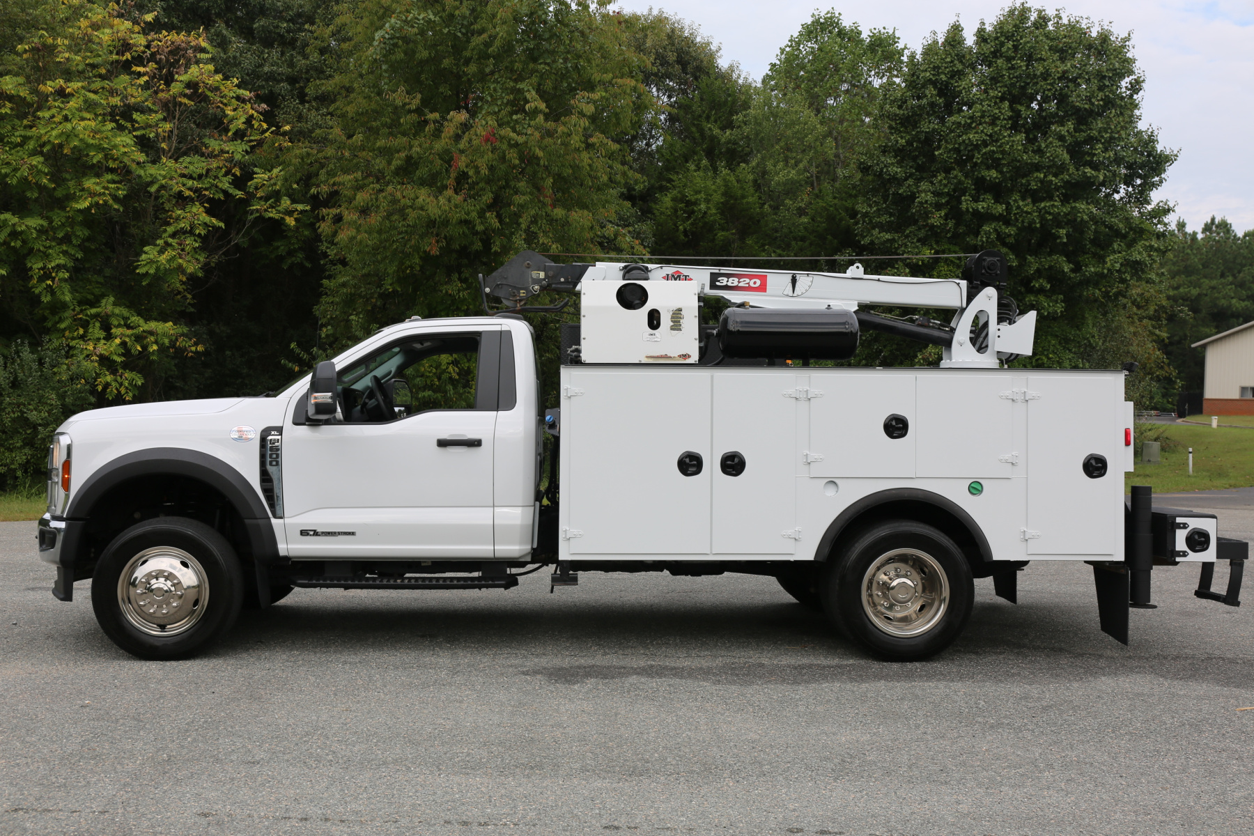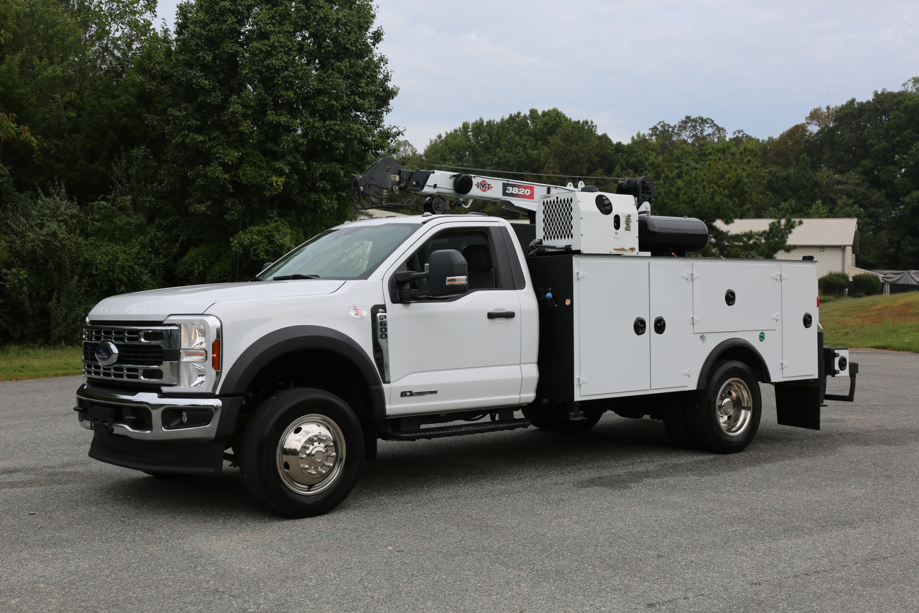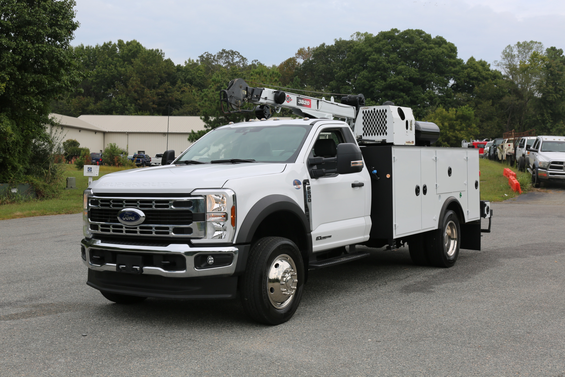 Thanks for taking the time to check out this 1 owner 2024 Ford F600, coming to us out of North Carolina. Powered by a 6.7 powerstroke diesel mated to the Ford ten speed automatic transmission, and equipped with 4×4 four wheel drive. Showing 4,541 miles and 174 total engine hours at the time of this writing – this truck still has much of it’s manufacturer warranty remaining.