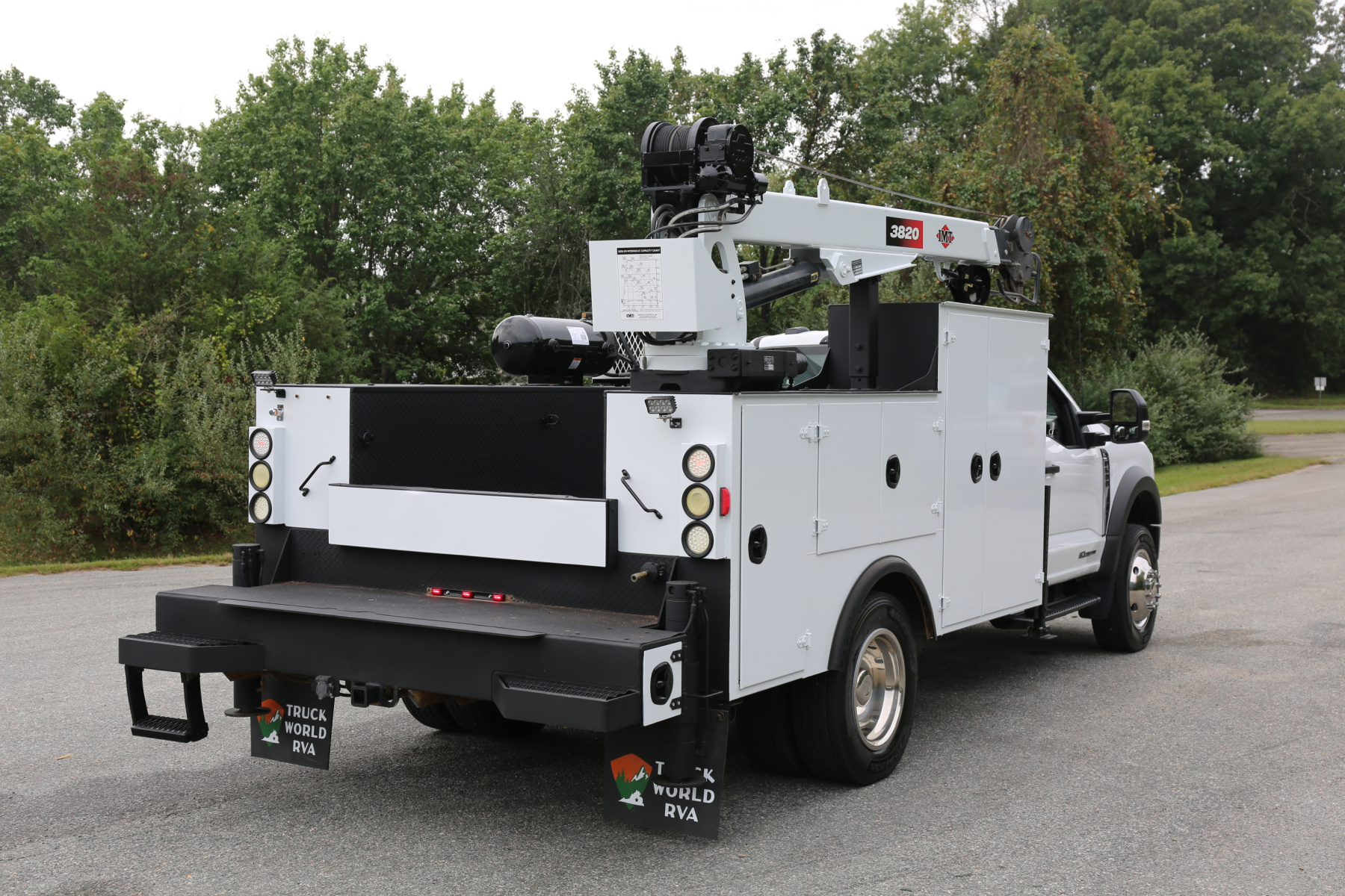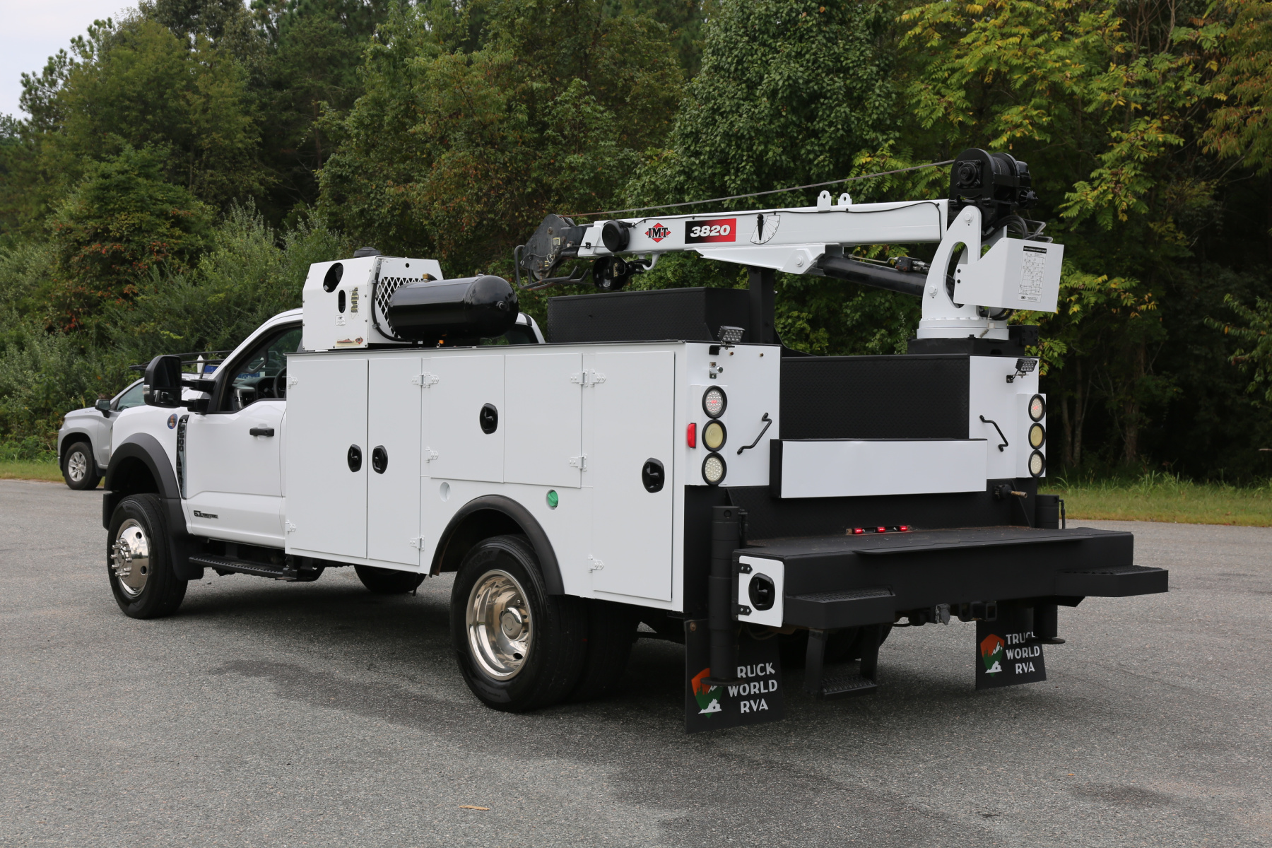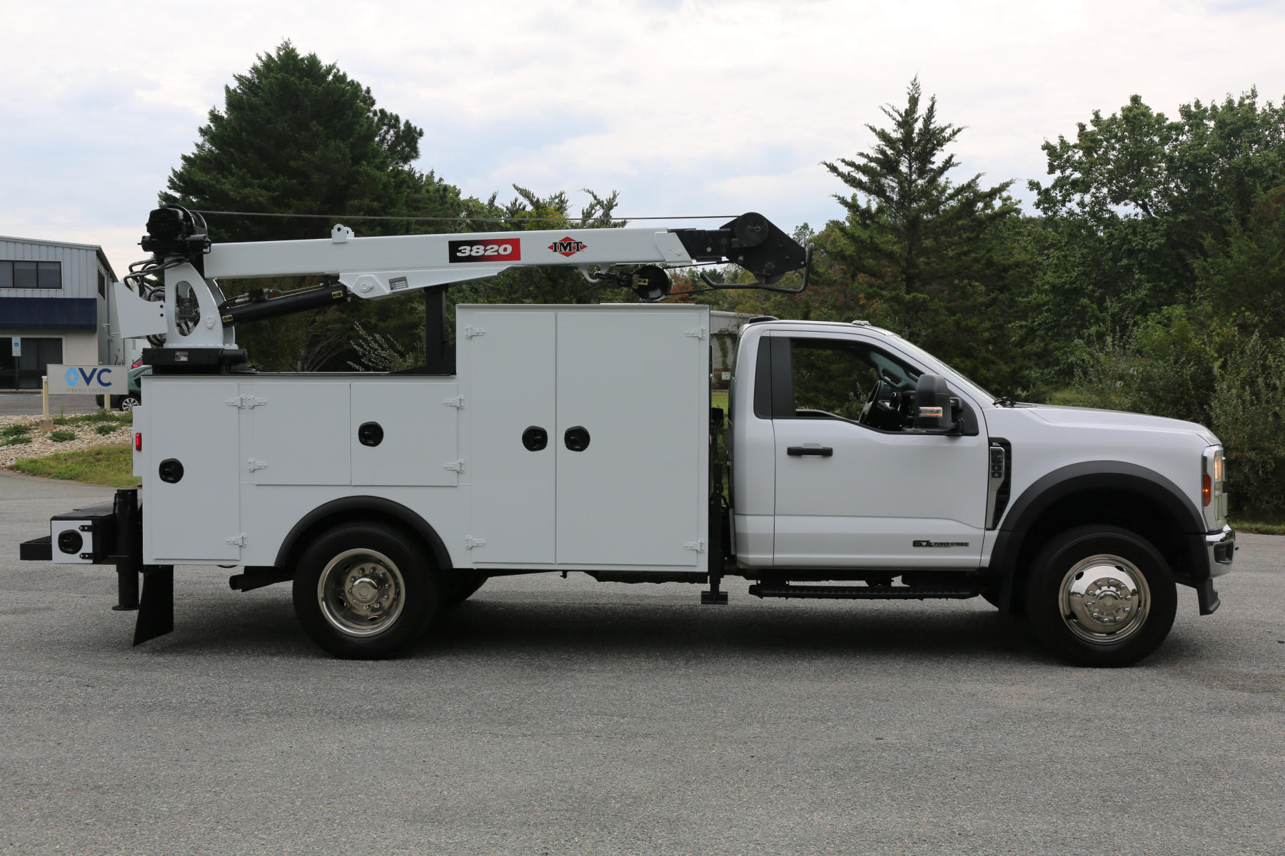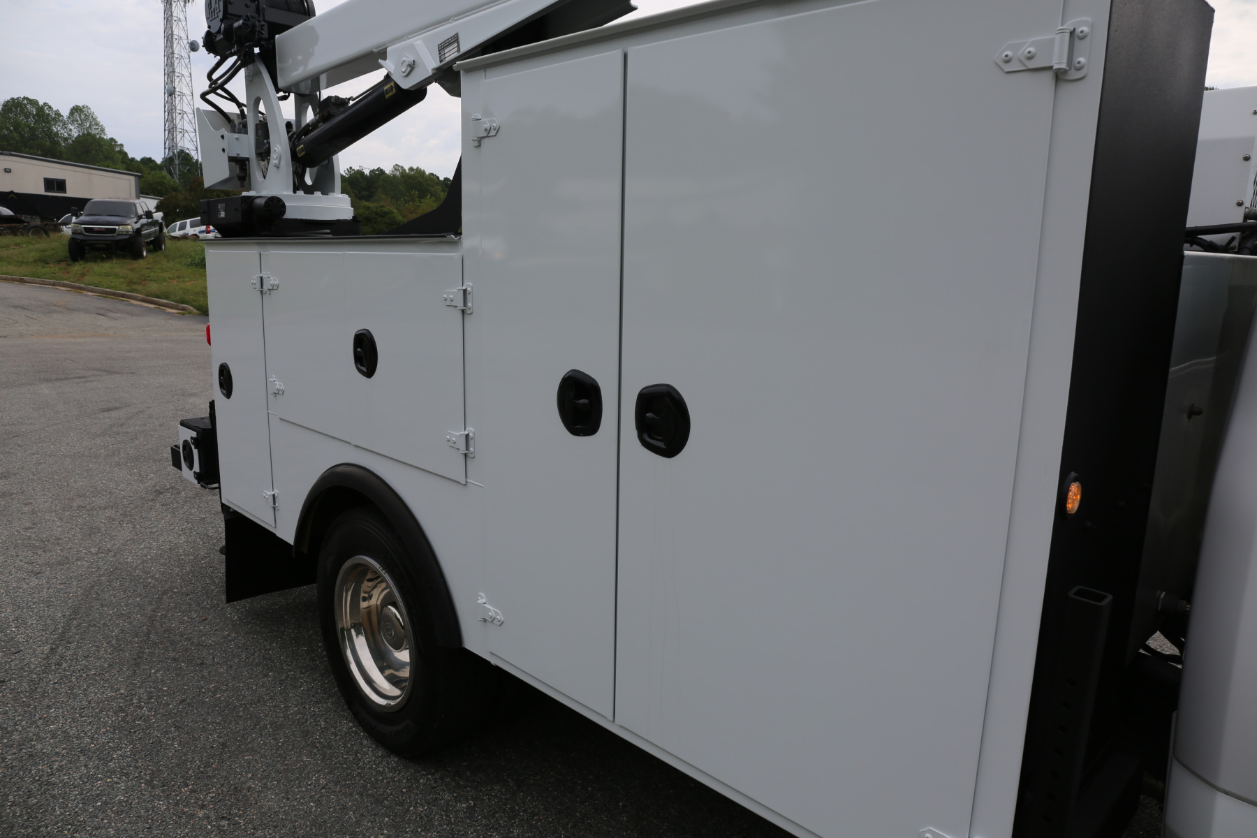 Equipped with an IMT Dominator 11′ service body, a 7500# capacity 21′ IMT crane (run off a wireless remote), hydraulic outriggers, and a hydraulic compressor. All of the equipment works as it should. No rust in the bed.