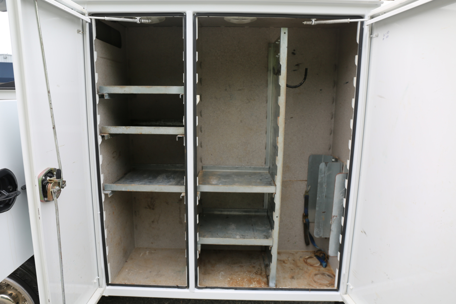 The D1 compartment has a set of American Eagle drawers, eight total. One shelf in the D2 compartment. One shelf over the driver wheel well. Two shelves in the driver rear compartment.