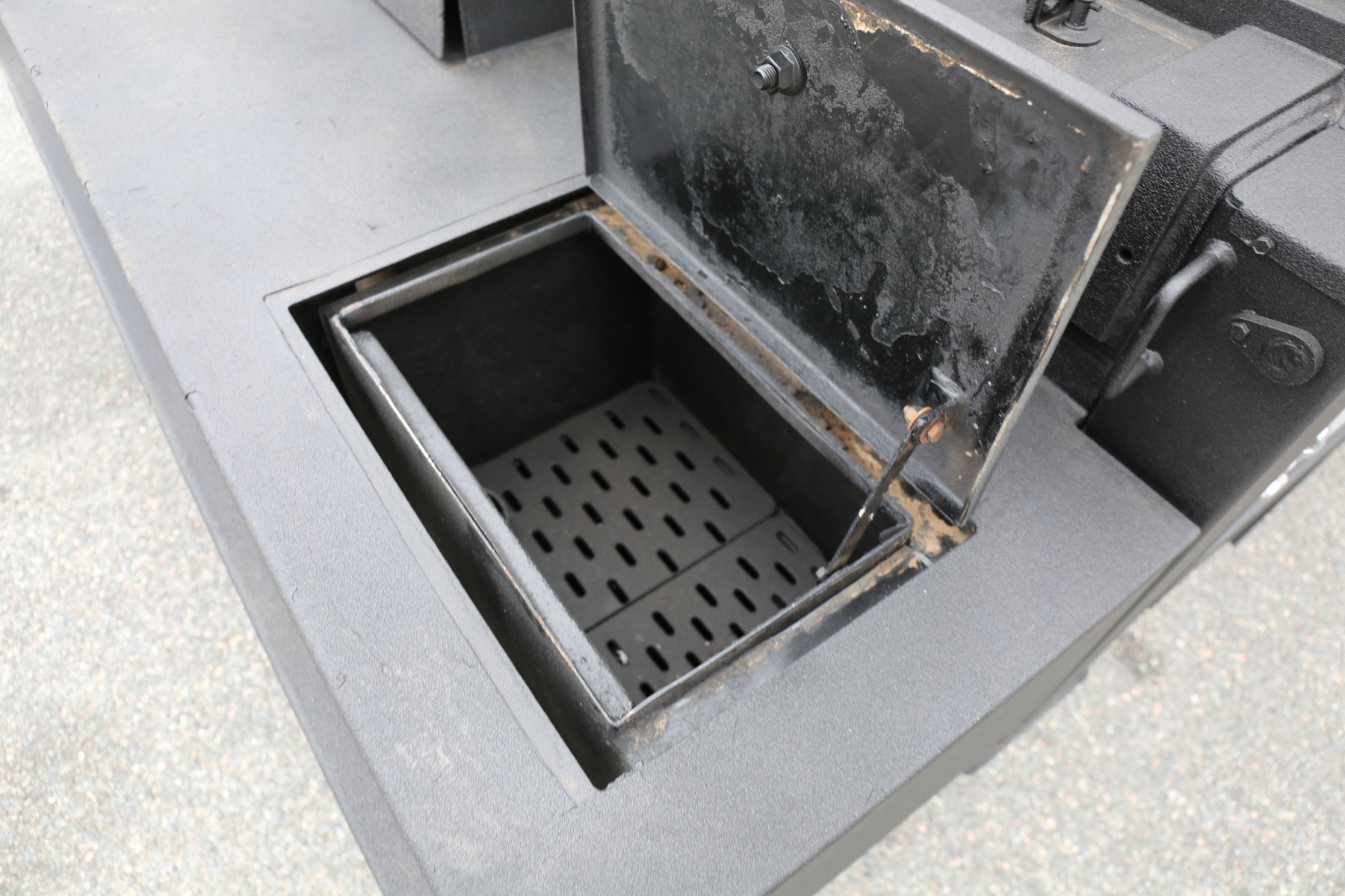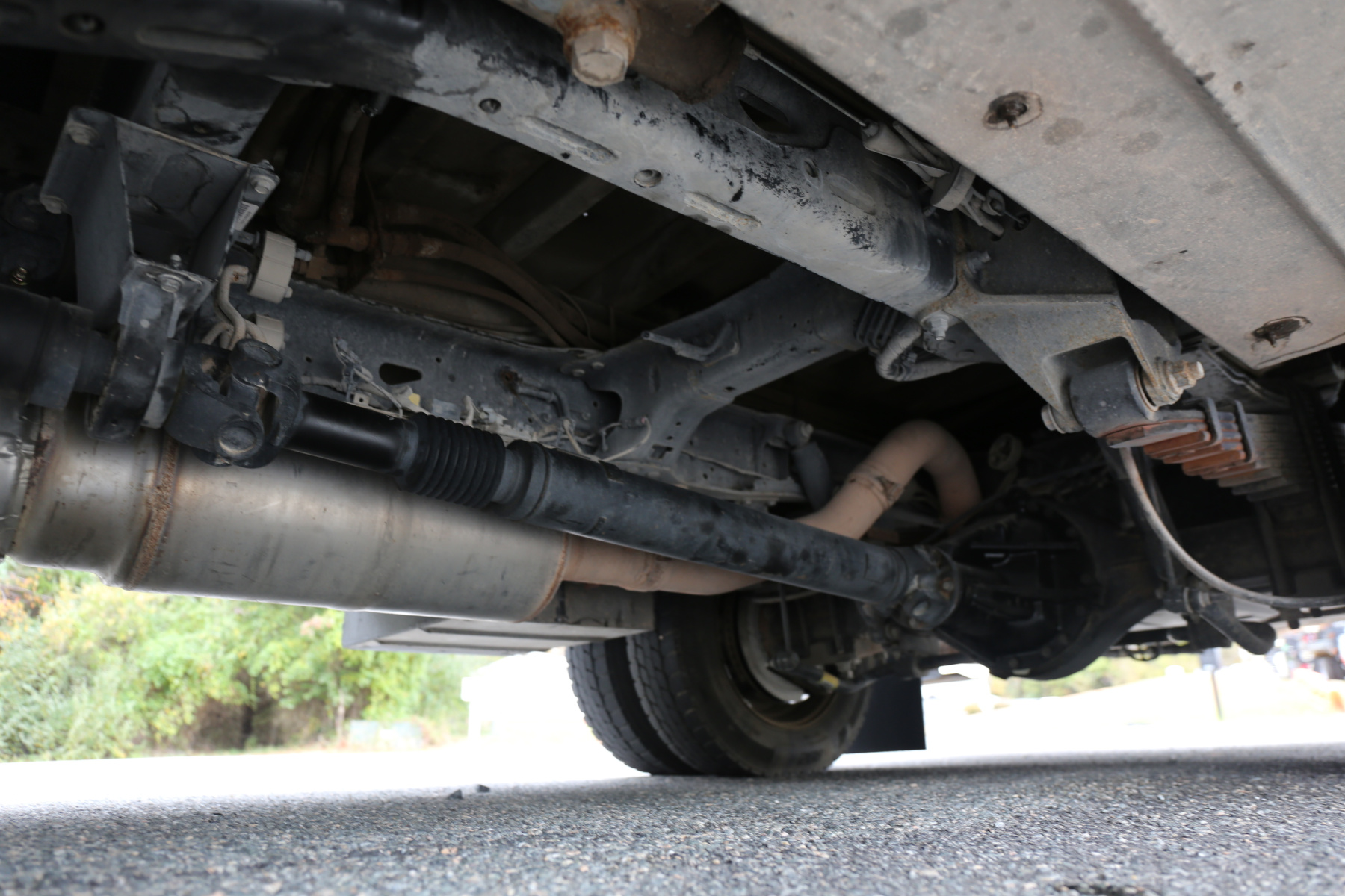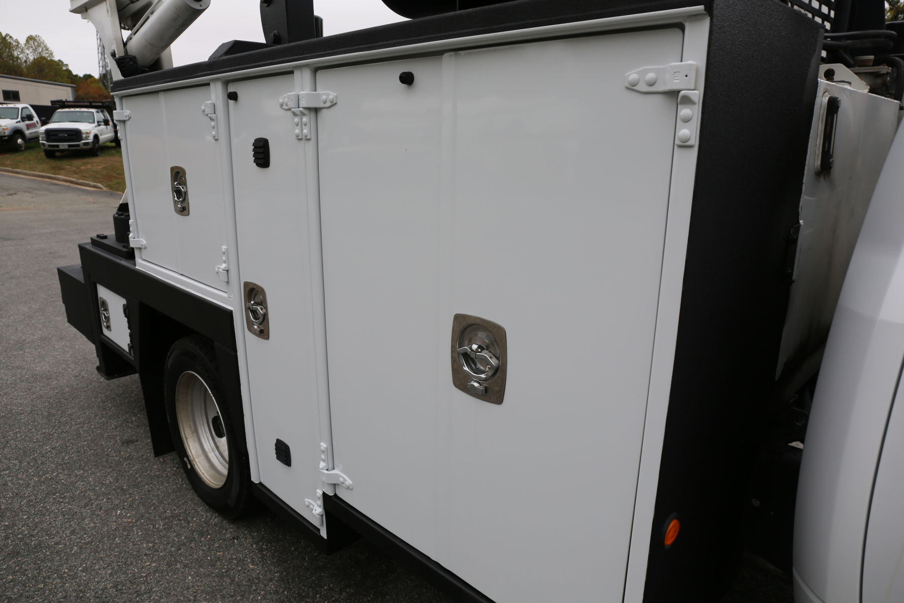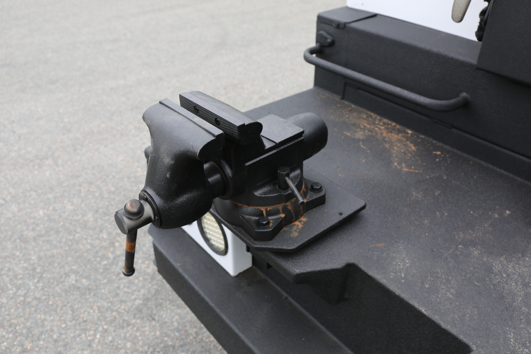 Work bench rear bumper with outrigger controls, and manual override controls for the crane. Working vise. Waste oil tank is located inside of the bumper. E track inside of the bed.