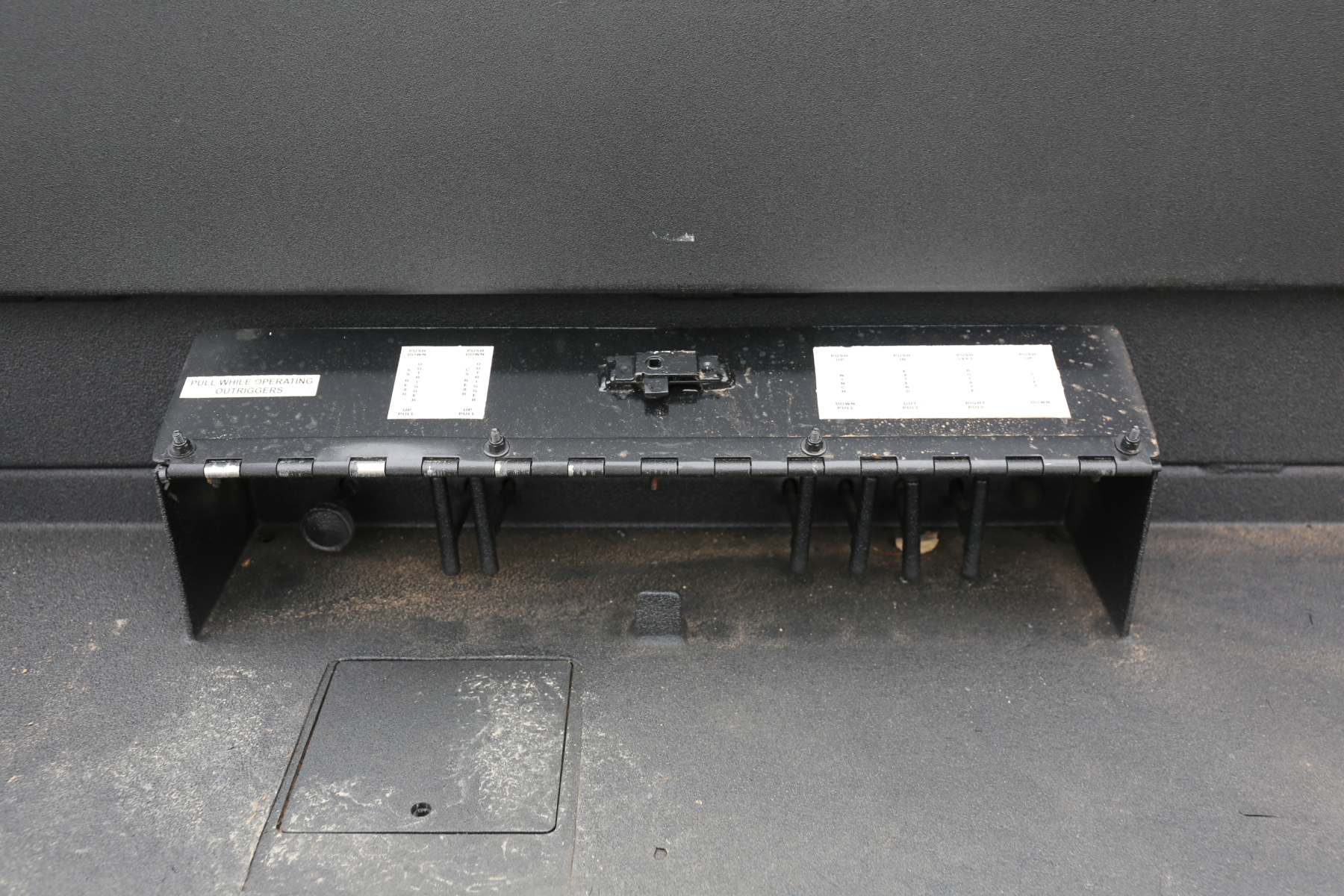 The D1 compartment has two shelves, and is ventilated. The D2 compartment has a set of seven Maintainer drawers, and the body control panel for the lighting and compressor. One shelf over the driver wheel well. Another set of five shelves in the driver rear compartment, as well as a Hannay hose reel.