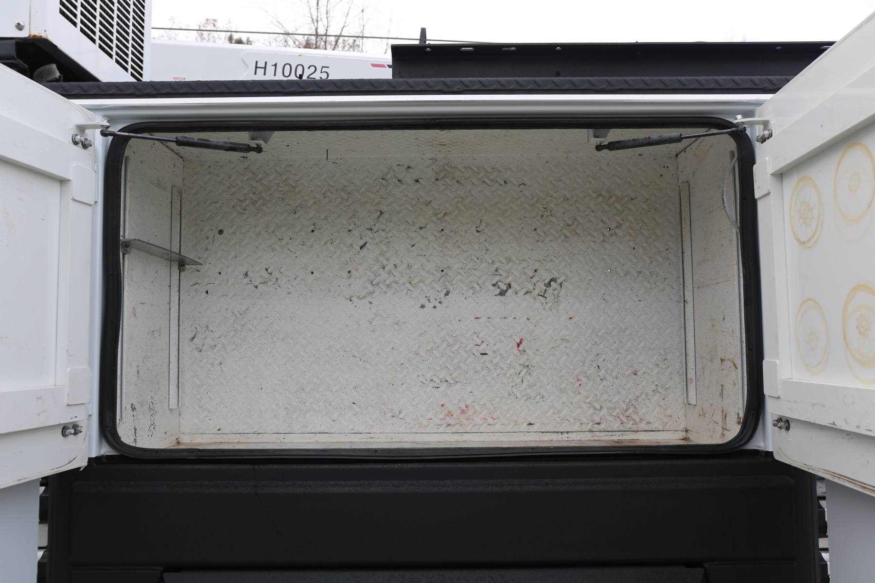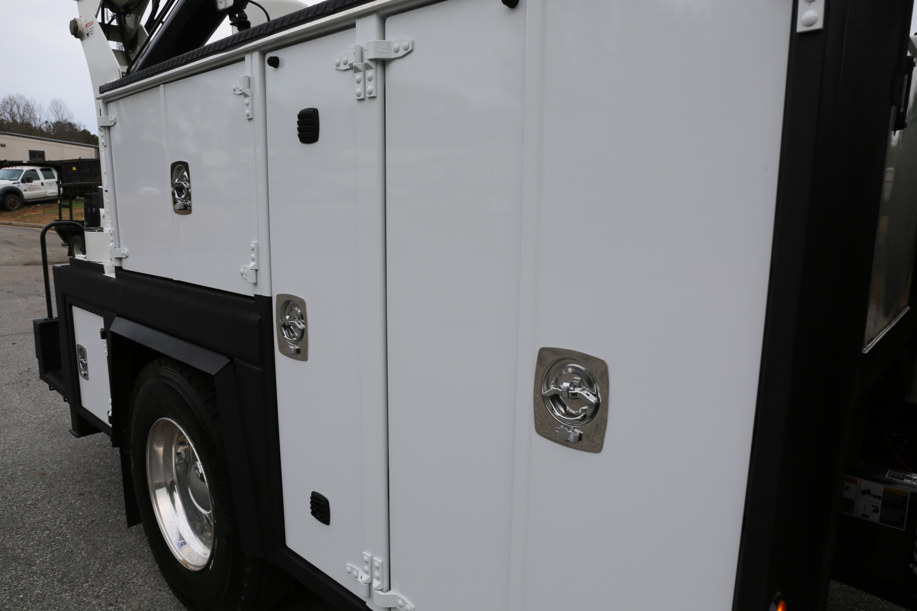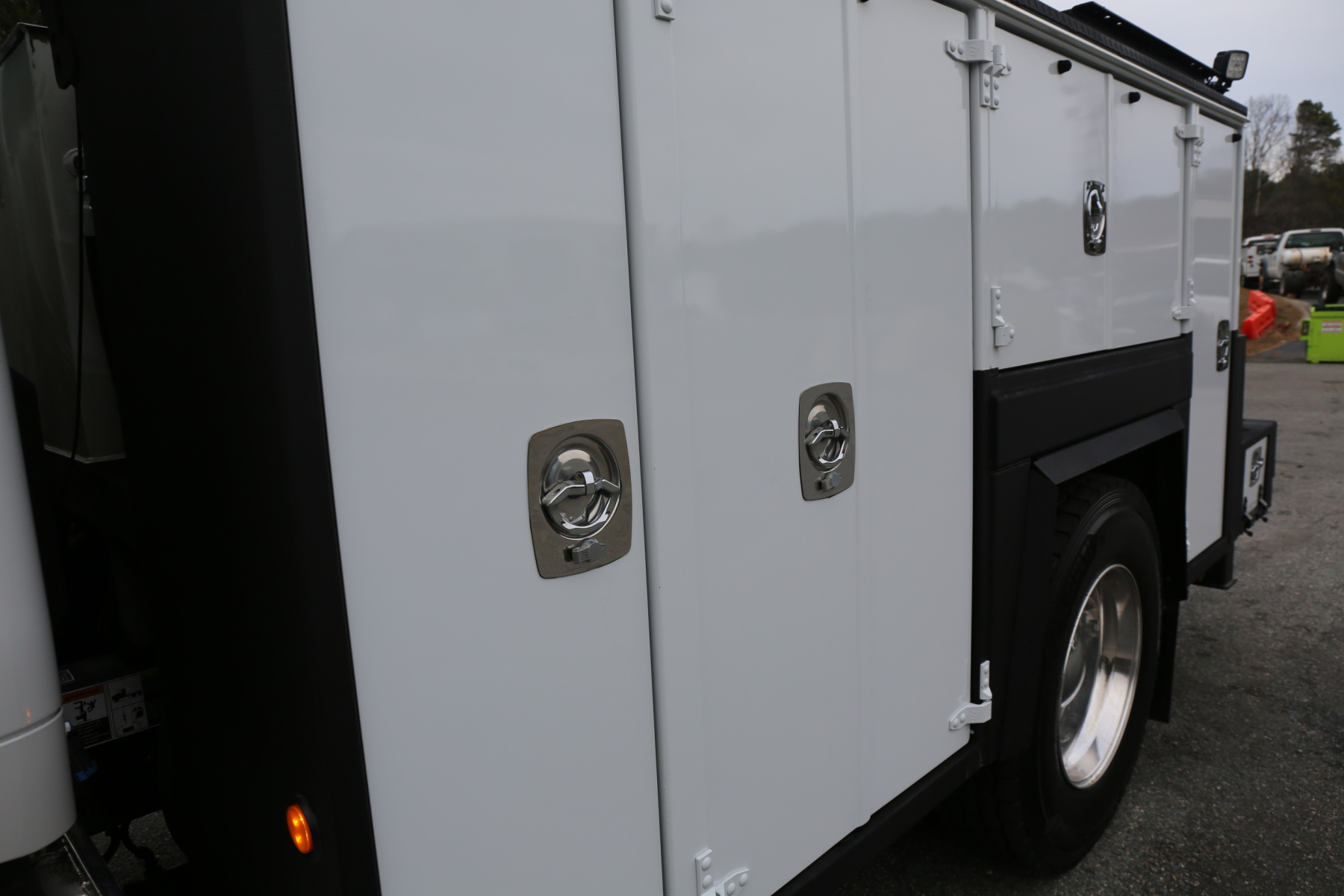 The bed is rust free, and was just mounted by us. Originally came out of the southeast. All of the doors close, latch, and lock as they should. Interior compartment lighting throughout, as well as exterior work lighting. Little to no signs of use on the exterior of the body – shows like new – the insides of the bins show use but overall are in good shape.