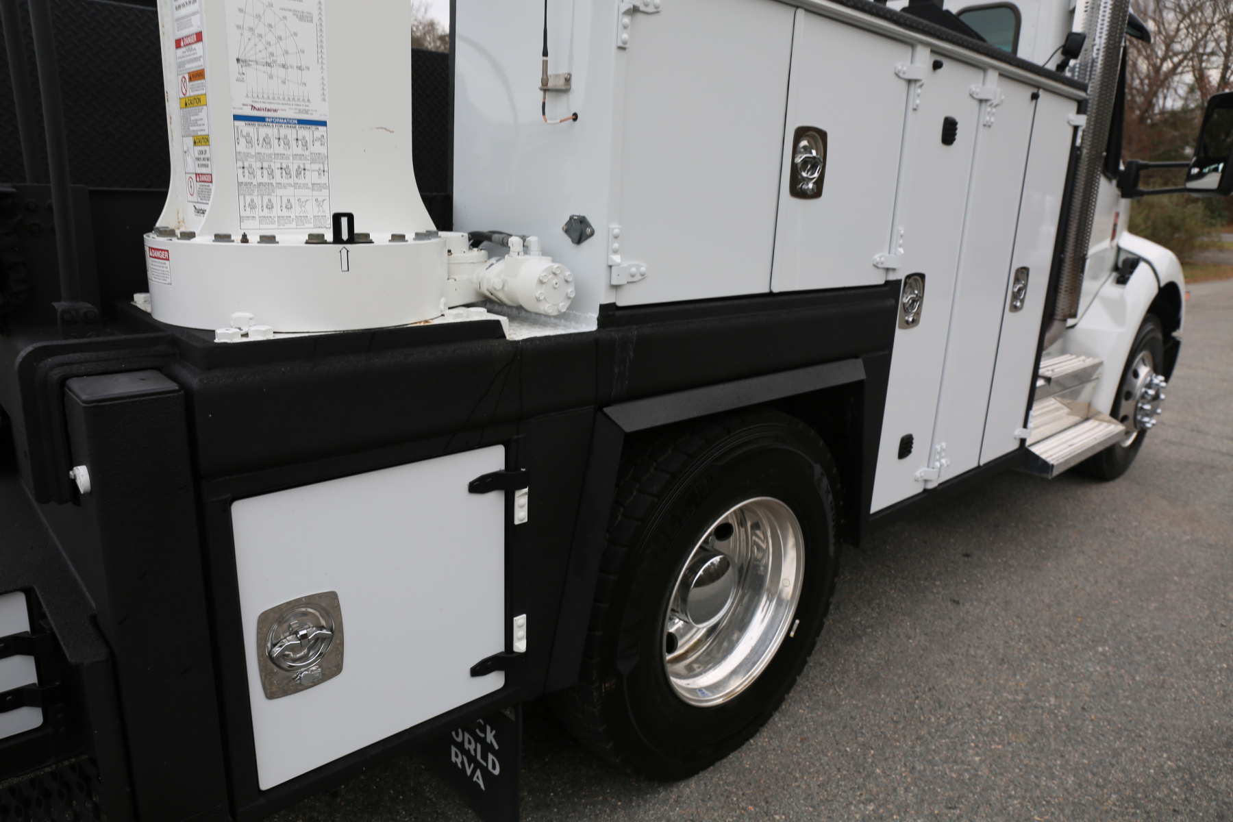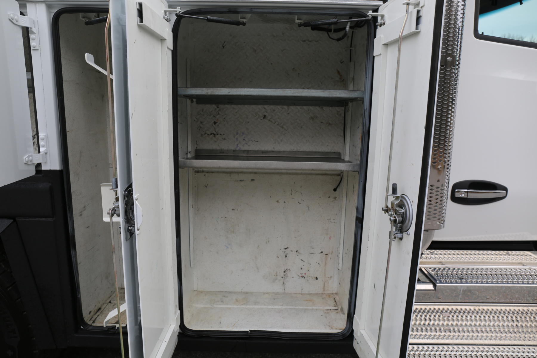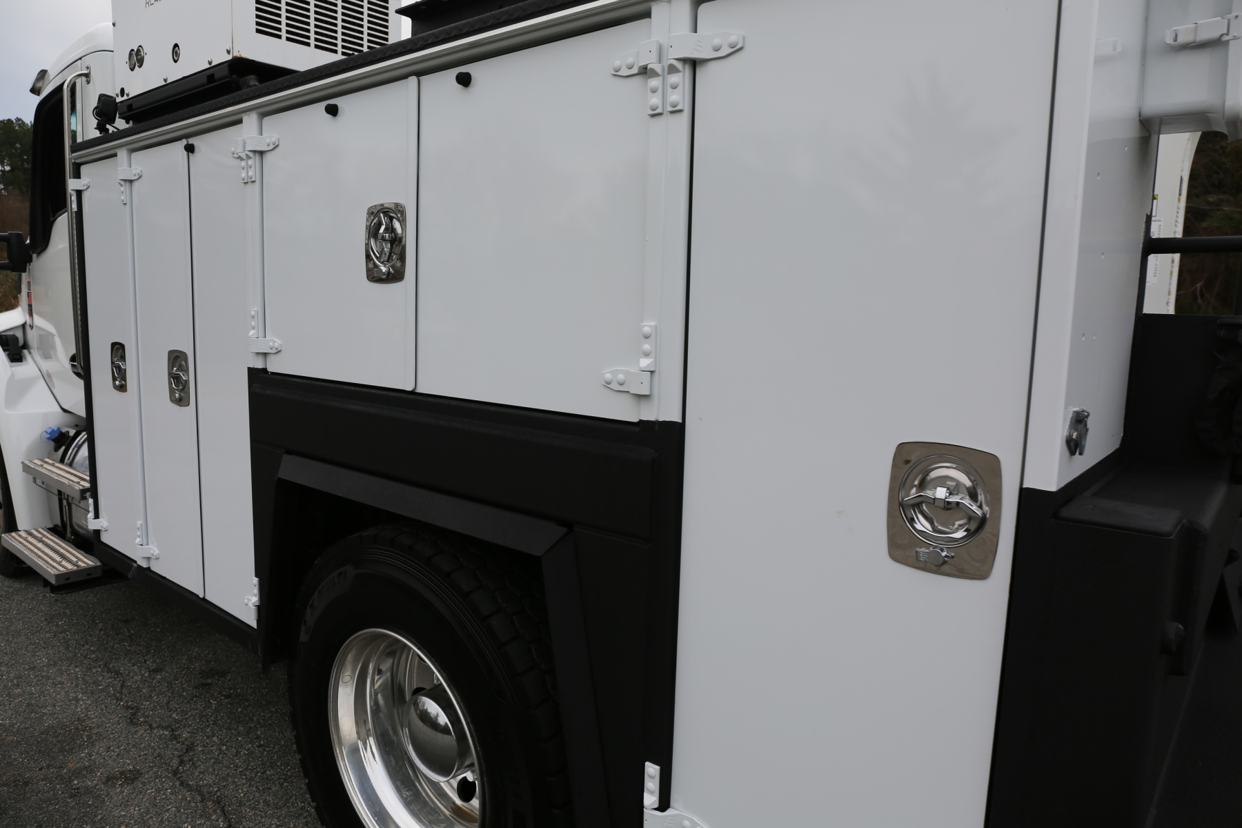 The bed is rust free, and was just mounted by us. Originally came out of the southeast. All of the doors close, latch, and lock as they should. Interior compartment lighting throughout, as well as exterior work lighting. Little to no signs of use on the exterior of the body – shows like new – the insides of the bins show use but overall are in good shape.