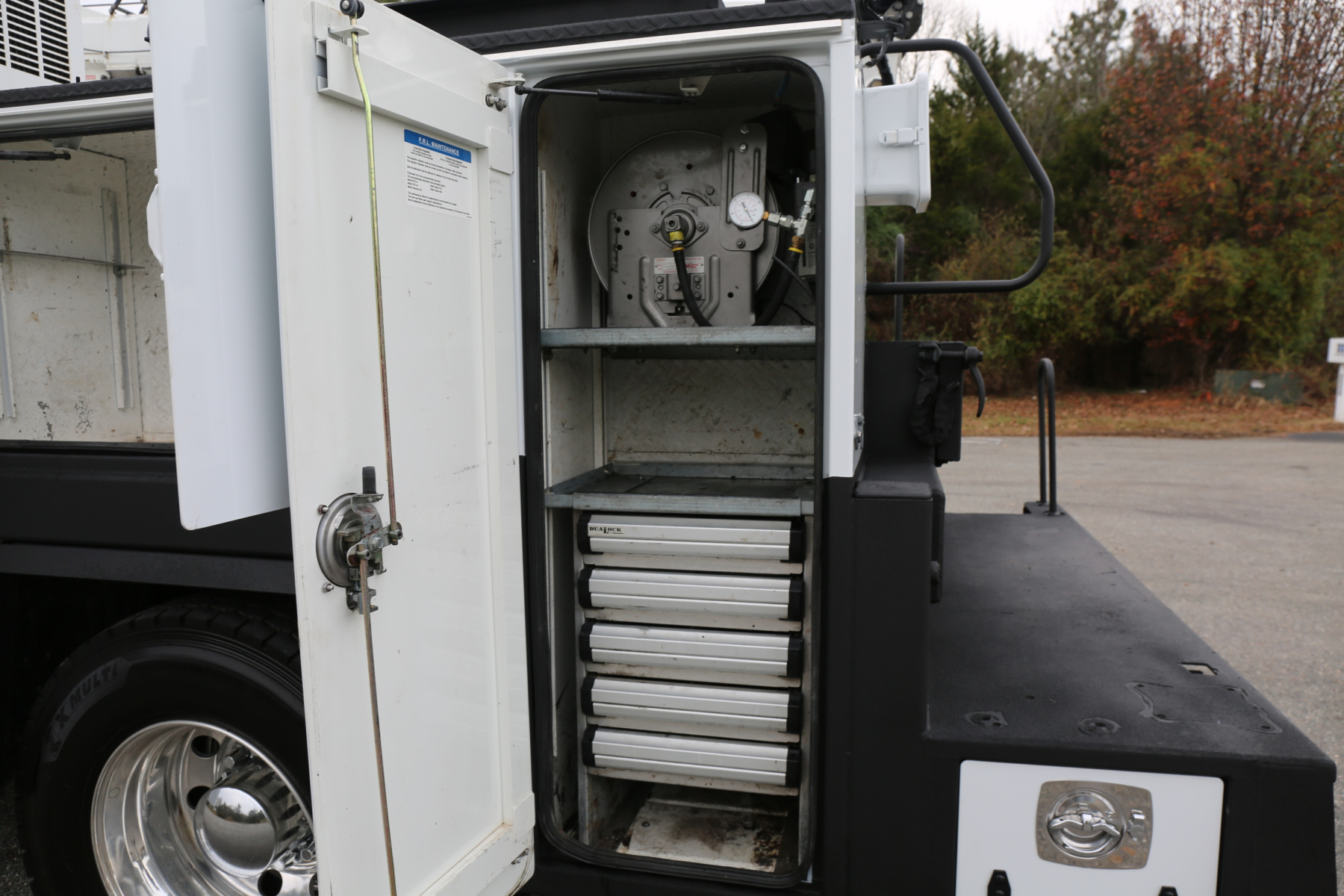 This is a chassis we purchased new and upfitted here. New PTO and pump just installed with the bed.