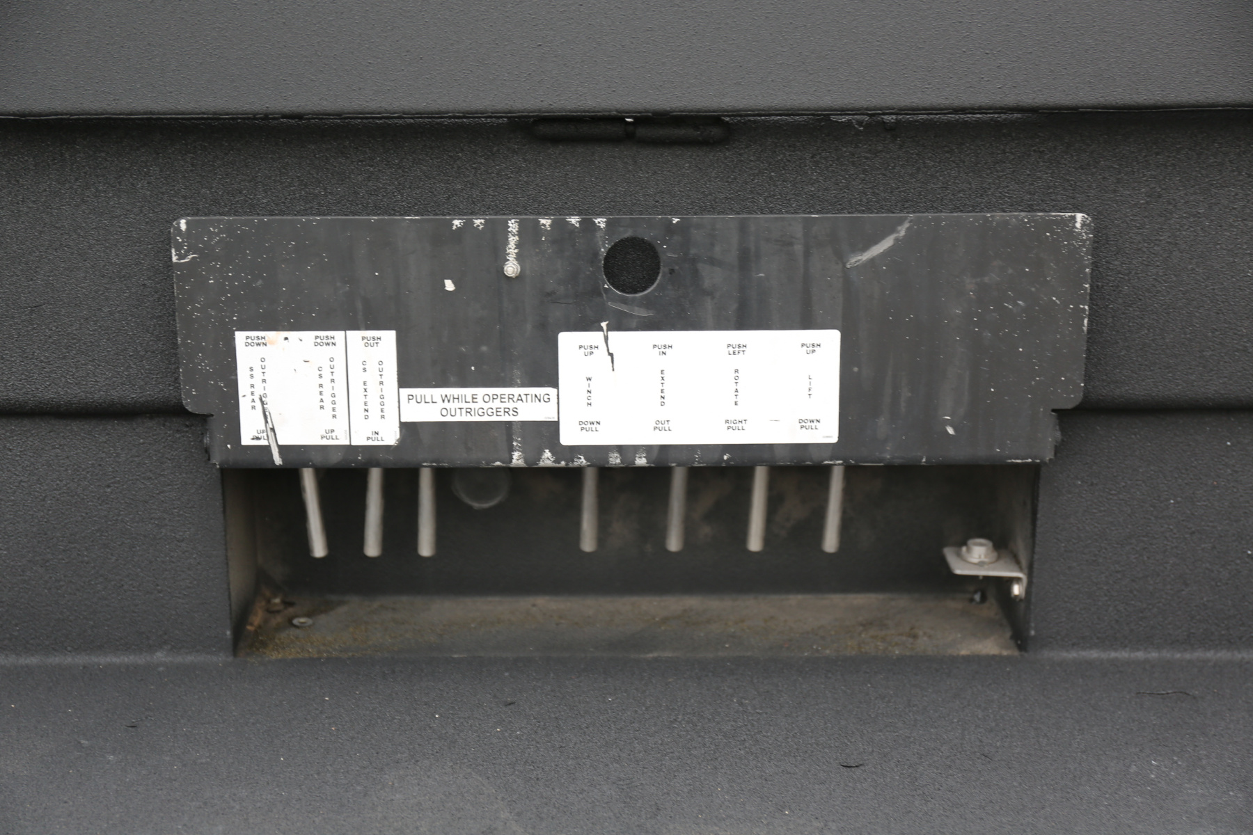 The crane compartment houses the factory receiver and remote, and has a small amount of storage space left over. One shelf over the passenger wheel well. The P2 compartment is set up for torch bottles, with racks and hangers. The P1 compartment has two sets of shelving.